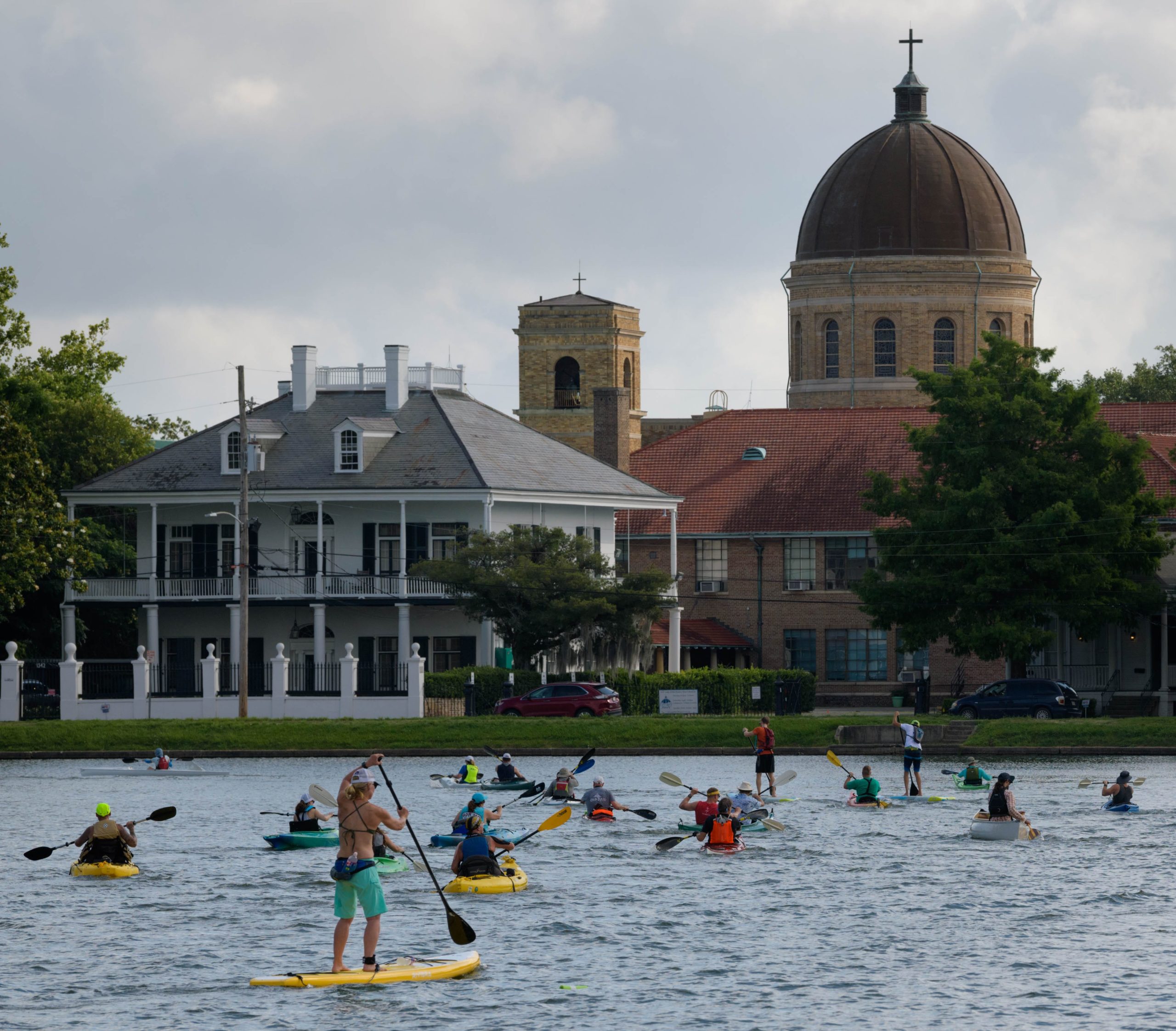 The paddle battle starts on Bayou St. John during the Mid-City Bayou Boogaloo in New Orleans, La. Saturday, May 18, 2019. Described as a mini-Jazz Fest the now three day festival features New Orleans music, art, cuisine and culture. The event was created in 2006 to reinvigorate the Mid City neighborhood after Hurricane Katrina. Photo by Matthew Hinton