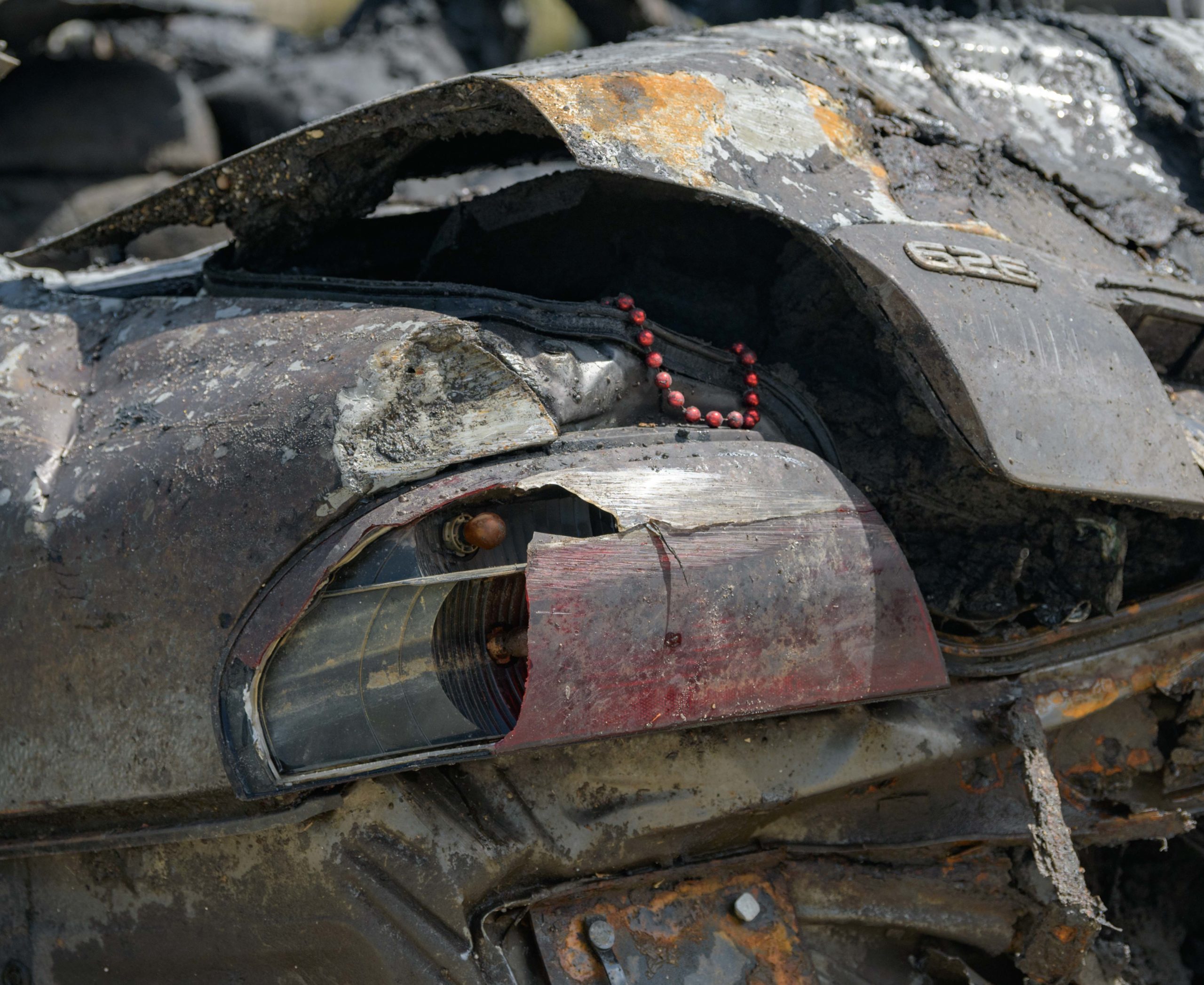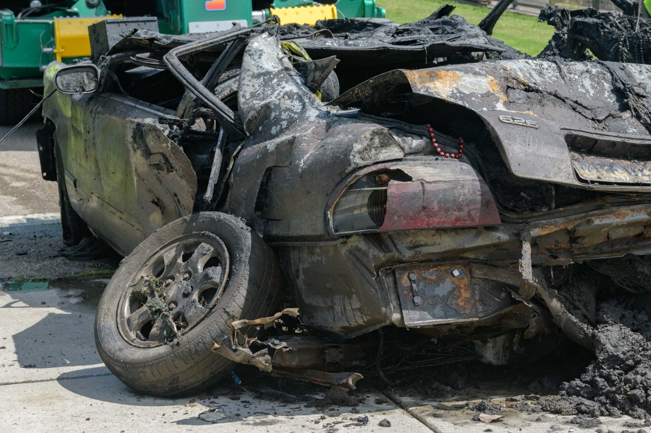 A Mazada 626 car with a 2007 Louisiana brake tag and Mardi Gras beads coming from the trunk is removed from deep inside the Lafitte Canal that drains flood and other water from Mid-City including the Lafitte Greenway in New Orleans, La. Thursday, Aug. 22, 2019. It is among the largest pieces to pulled from a New Orleans drainage canal by the Sewerage and Water Board. The city has suffered a few 100-year flooding events which have been exacerbated by poor drainage in the canals, pumping problems, and clogged catch basins. Photo by Matthew Hinton