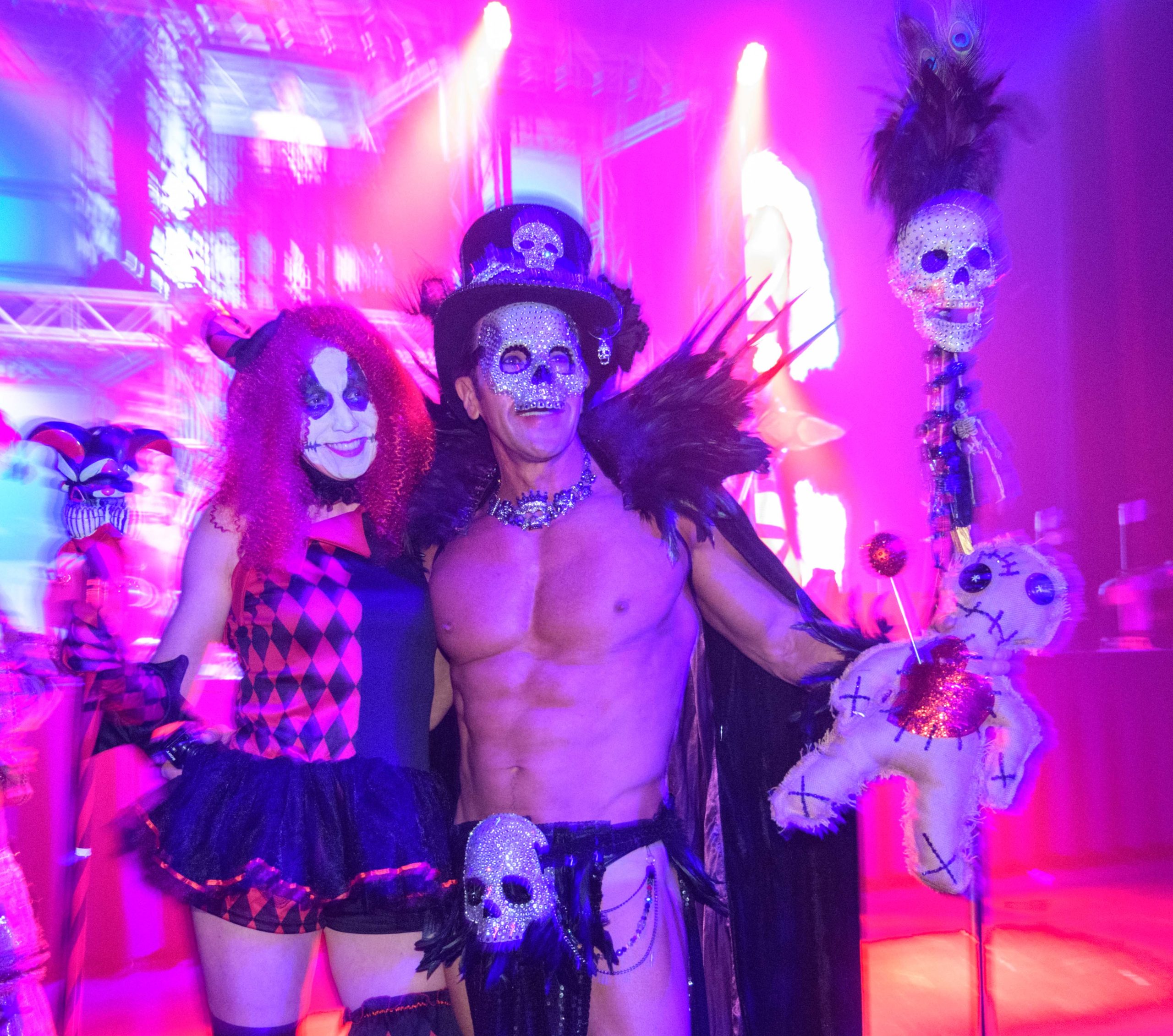 David S. Pumpkins dances with a cupid at Halloween New Orleans 36th anniversary main event and costume contest at the Fillmore in New Orleans, Saturday, October 26, 2019 with the theme Hallowdays. The annual LGBTQ friendly event has raised over $4.6 million since 1987 for Project Lazarus, an assisted living home for those with HIV/AIDS. HNO is one of the only 100% donation/volunteer event weekends left in the United States and its sole mission of its fundraising is to support Project Lazarus. Photo by Matthew Hinton