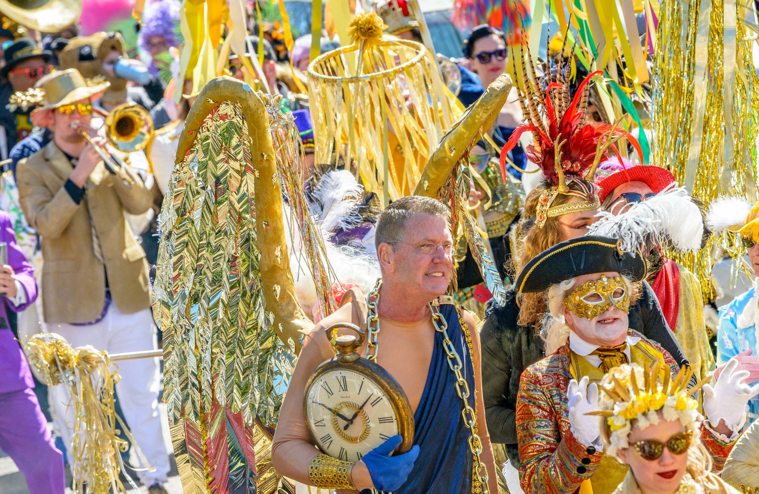 The Society of Saint Anne paraded through the Marigny and Bywater on Mardi Gras morning as the walking group celebrated its 50th anniversary from its founding in 1969.