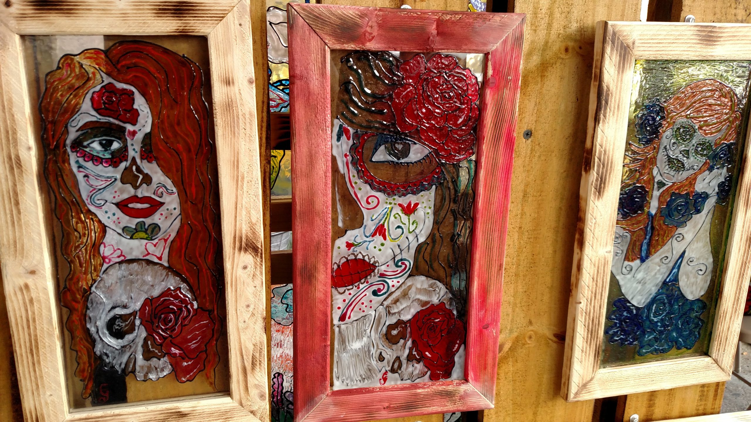 Another special feature of Gretna’s Farmers Market is that it hosts an art walk every second Saturday from September to December and March to May. During the art walk, artists like Connie Groue of Cogo Art Designs come to the market to show off and sell their best pieces. To create her art, Groue, who’s from Marrero, uses locally bought tempered glass as a canvas to hand paint her artwork onto while her husband, Pat Groue, makes wood frames for every one of her works.