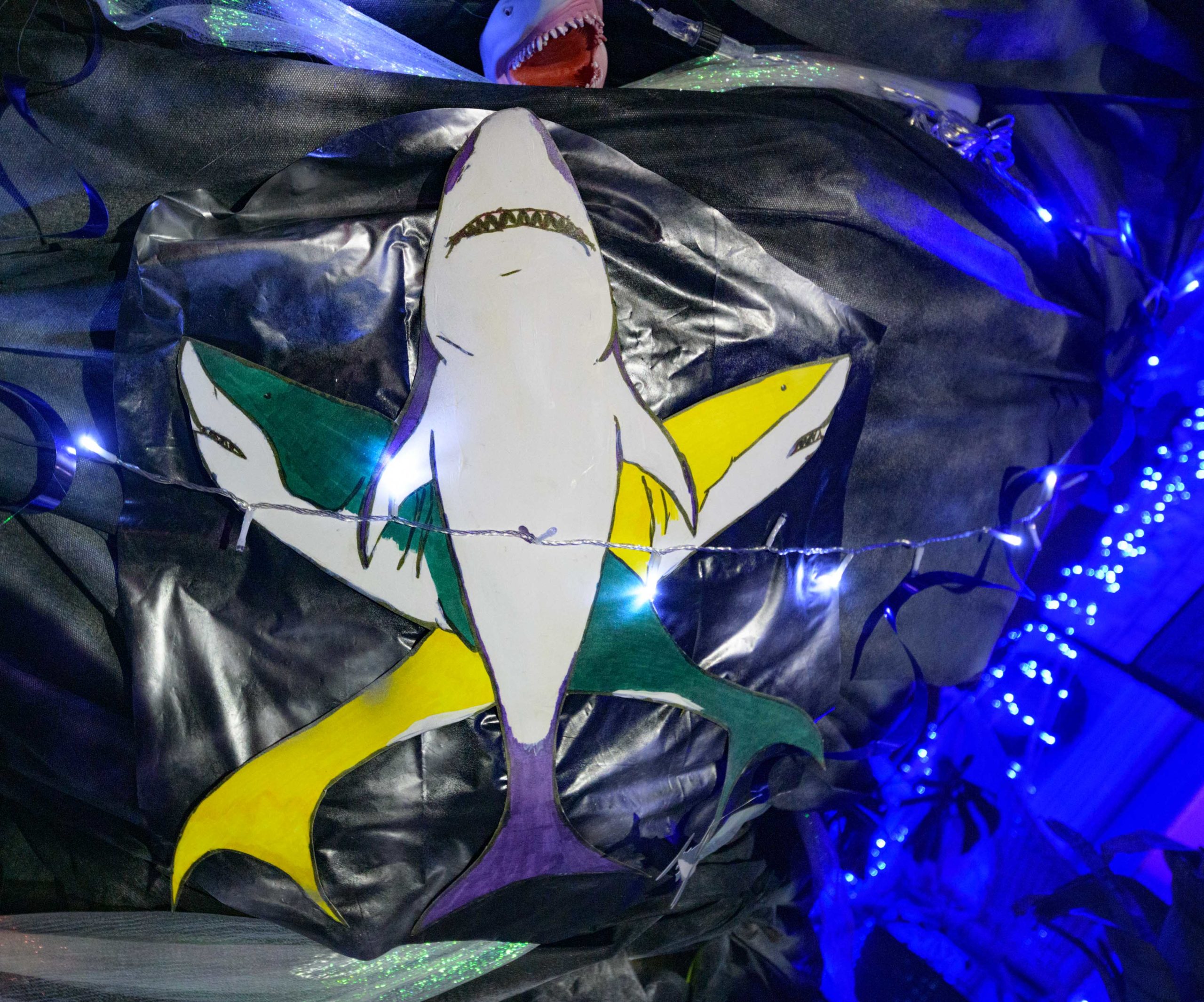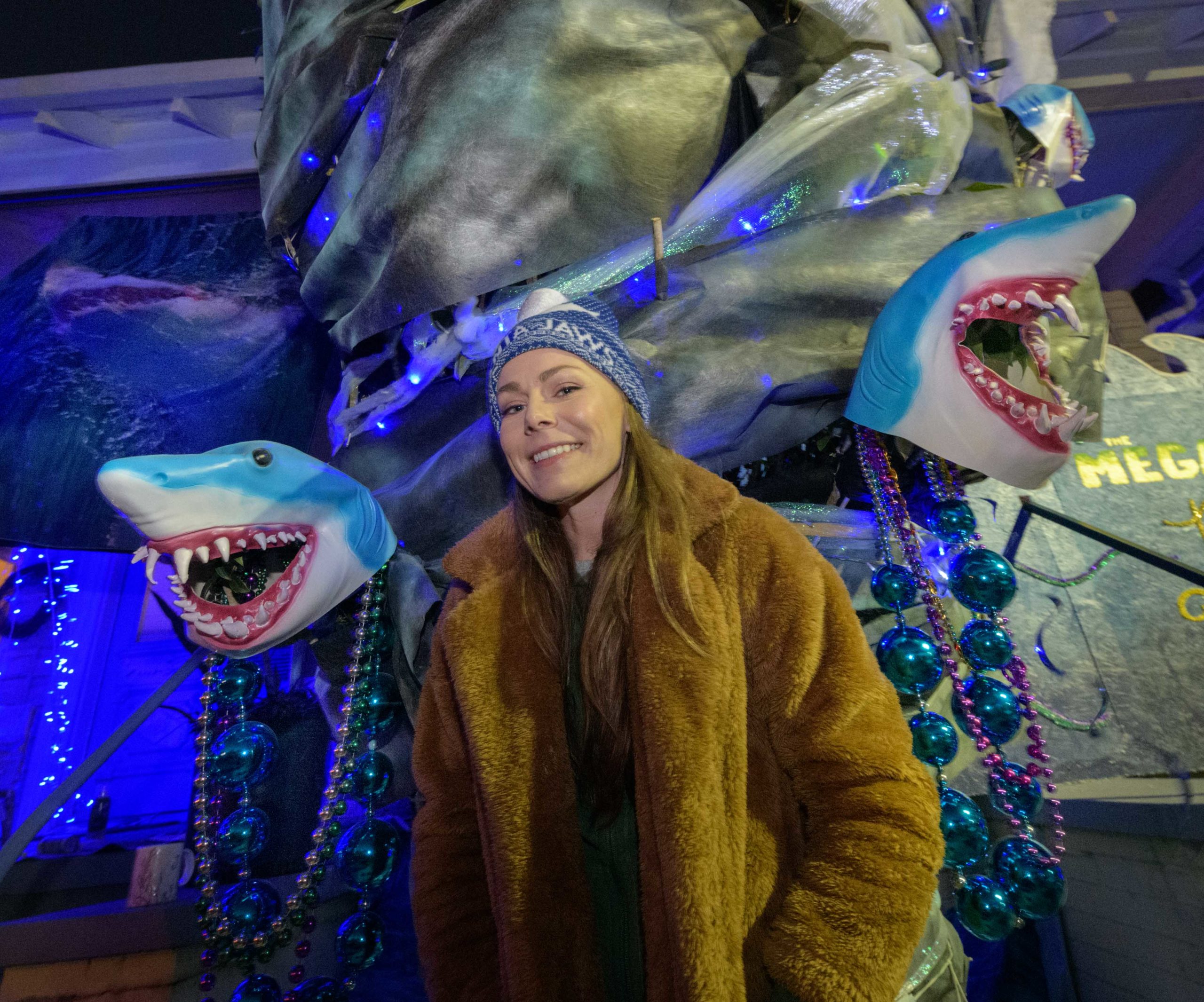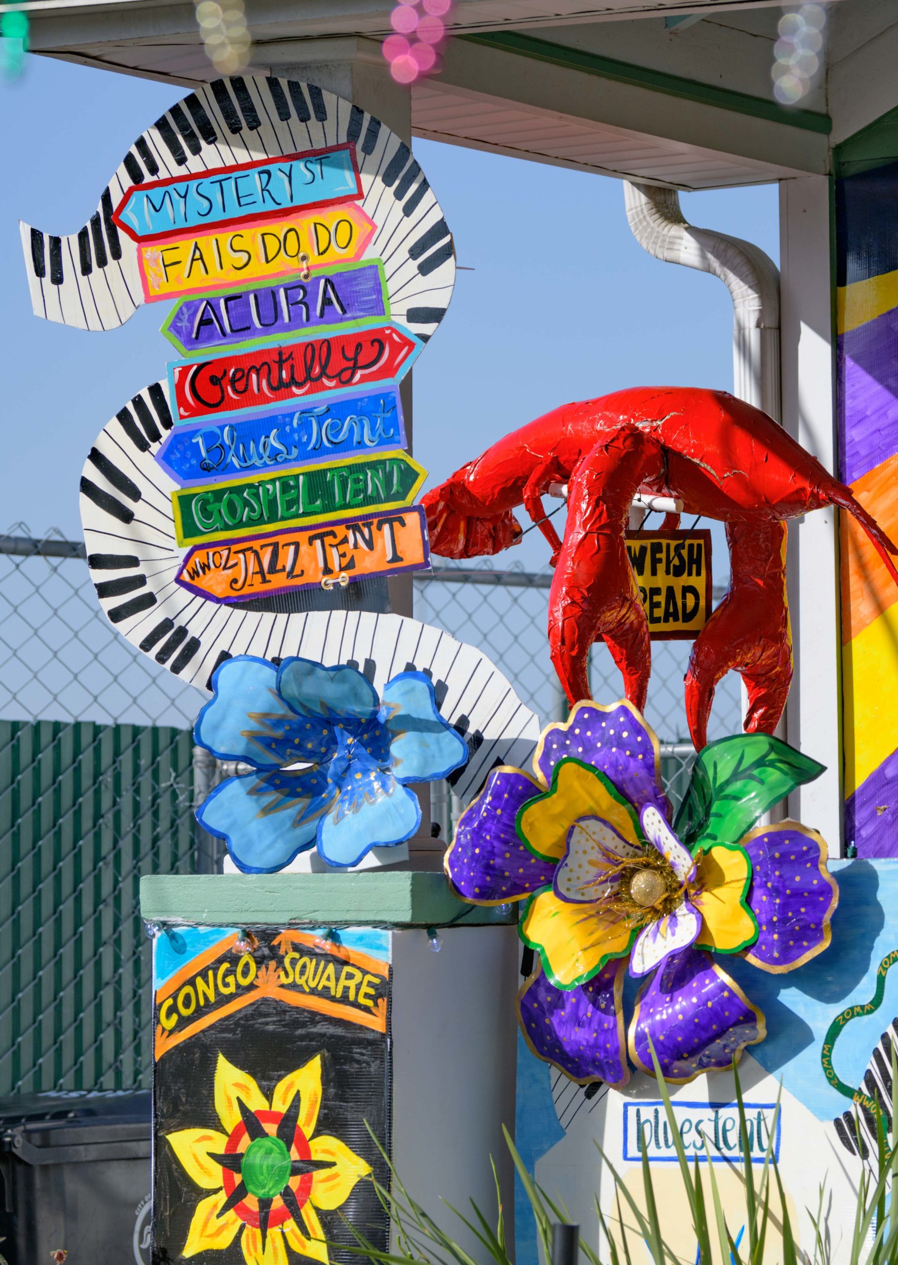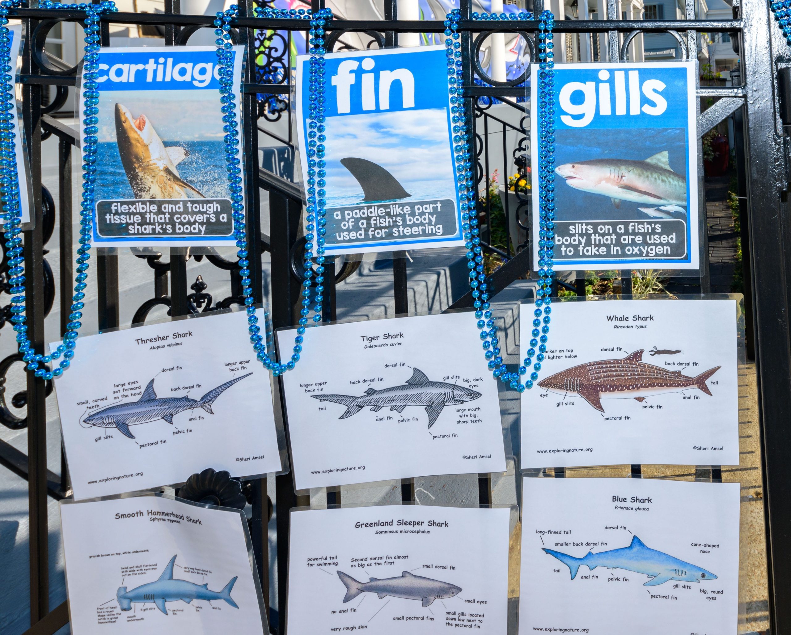 Sharks have been spotted in this pool, but as long as you stay six feet away, you can pick up some free beads and learn some interesting shark facts from the Krewe of Science House at 727 First Street in the Irish Channel. Elizabeth Carter started posting different science topics on her fence during the pandemic including information about COVID-19 and other themes about different animals that live in Louisiana. Carter is an LSU law professor who previously worked in vaccine development after attaining a degree in biology. The Irish Channel neighborhood has chosen Channel Surfing for their theme in the Krewe of House Floats. The Krewe of House Floats is an initiative to decorate homes during the Carnival season because of the cancellation and postponement of parades and gatherings for #MardiGras2021 due to COVID-19 pandemic. Before the pandemic, Carter took part in the satirical Krewe of Tucks parade. Keeping with the channel surfing theme Carter and her husband Adam Swensek chose “Shark Week”. She also has coloring books and toys for kids in the neighborhood along with Mardi Gras beads. The #PorchFloat decorations were created by Crescent City Artists, LLC. #CrescentCityArtists states that they are the first Black-owned Mardi Gras float service providers in Louisiana and are led by a New Orleans husband and wife duo Rene and Inez Pierre. Live everyday like it’s Shark Week. Photo by Matthew Hinton