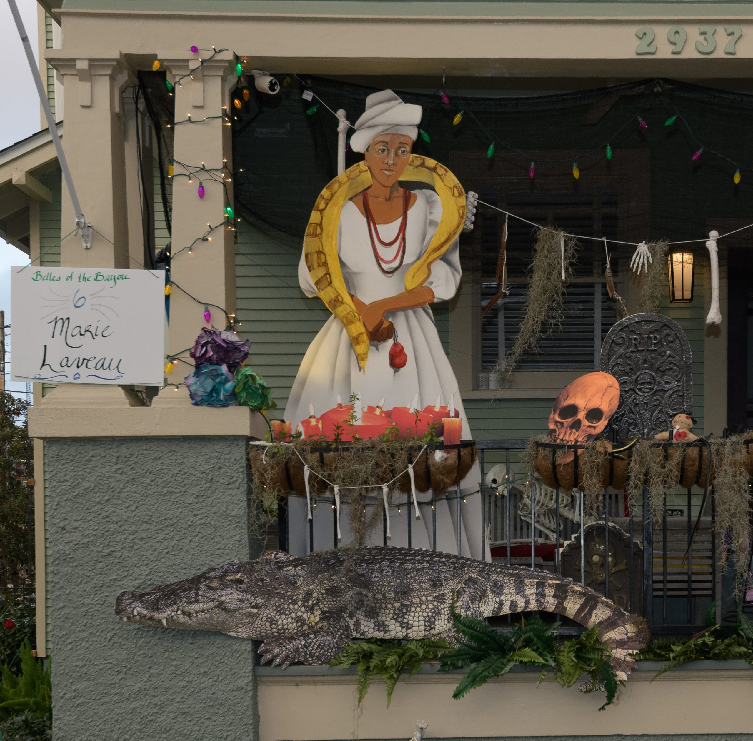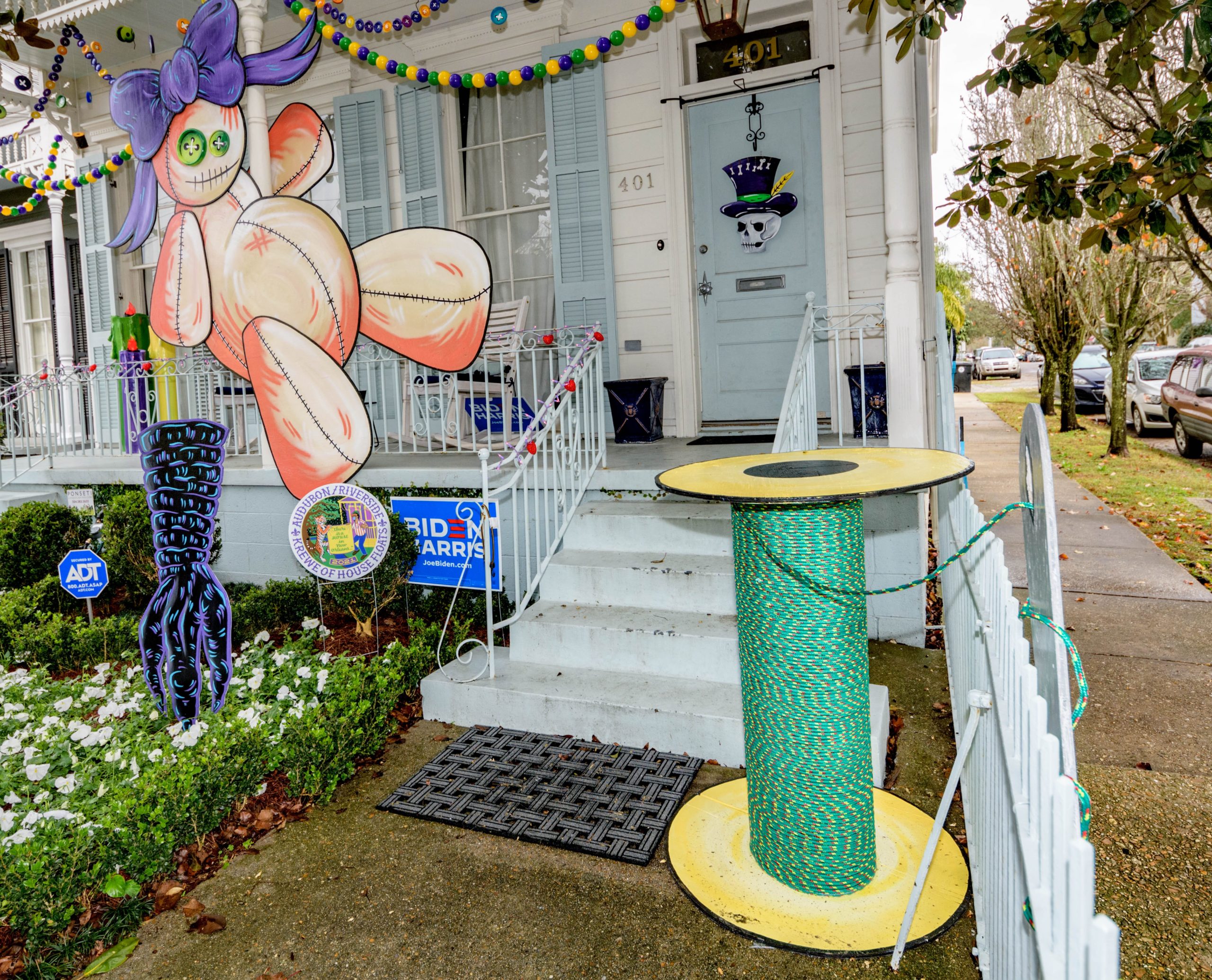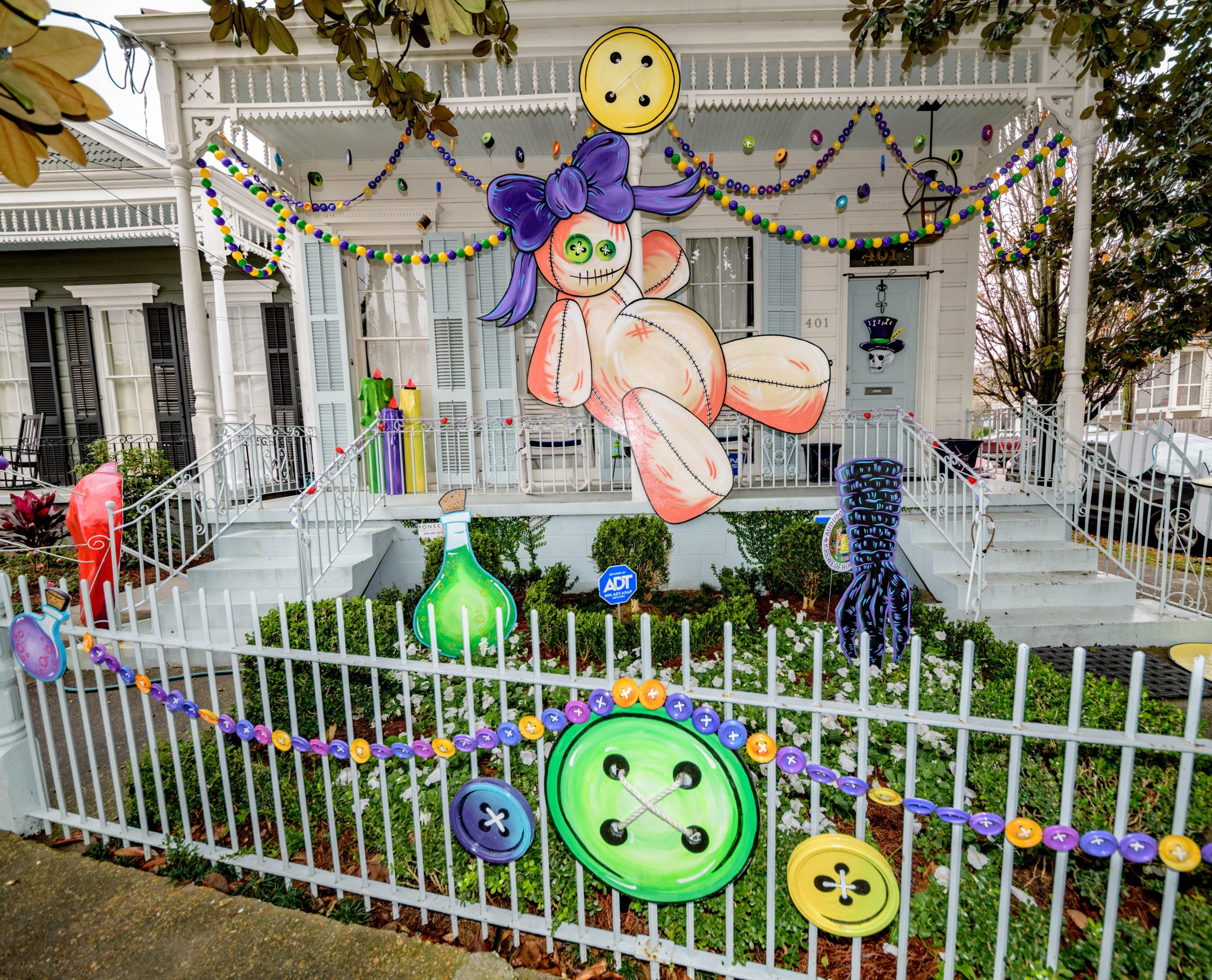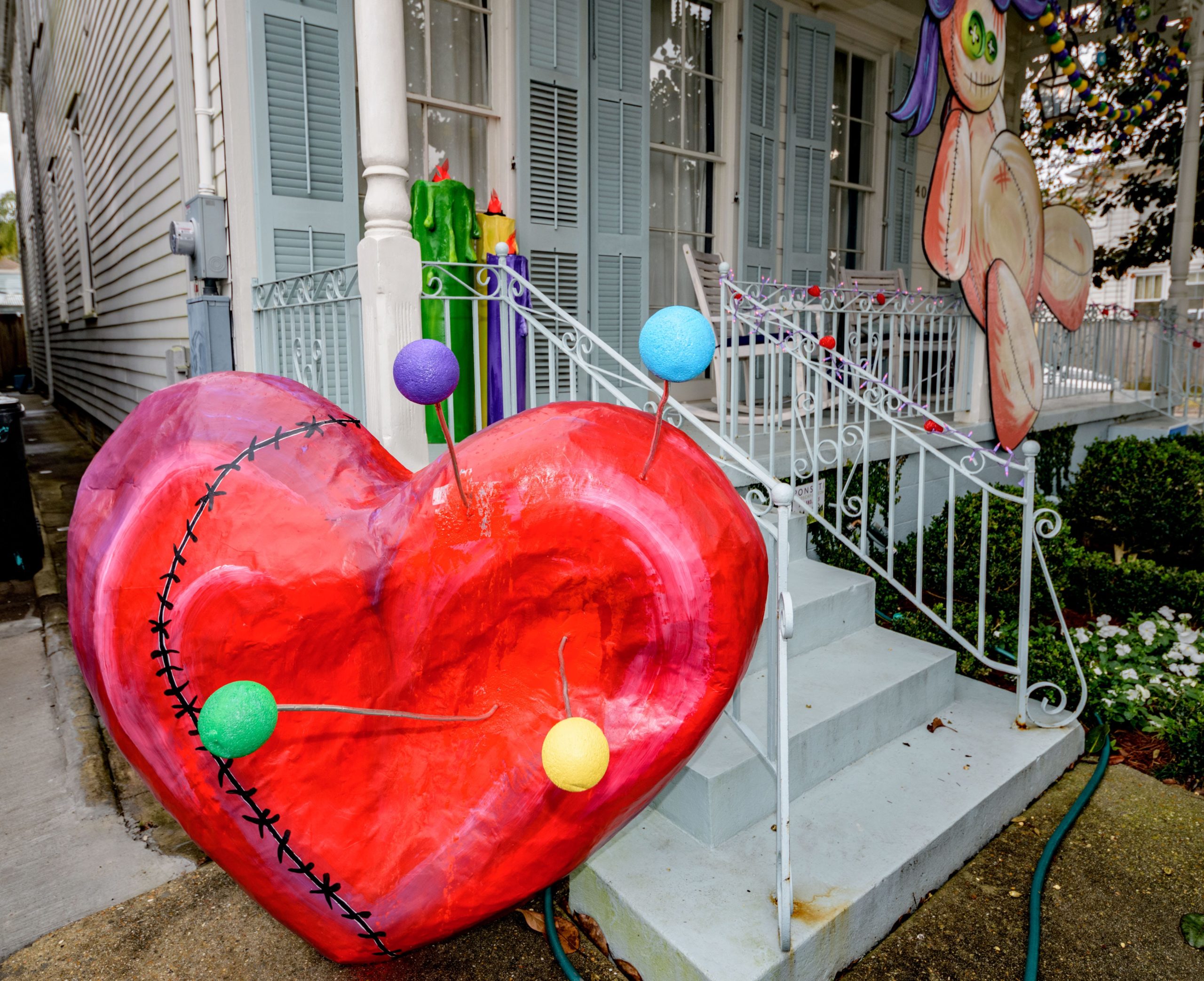 Nothing mends a broken heart like sticking a needle or two into a Voodoo doll like this Krewe du Voodoo house on 401 Octavia created by artists Chandra Leming, @chandarchandar, and Rikki Fabra, @fabracations_17. The Krewe du Voodoo is part of the Audubon / Riverside sub-krewe of the Krewe of House Floats. The Krewe of House Floats is an initiative to decorate homes during the Carnival season because of the cancellation and postponement of parades and gatherings for #MardiGras2021 due to COVID-19 pandemic. Photo by Matthew Hinton
