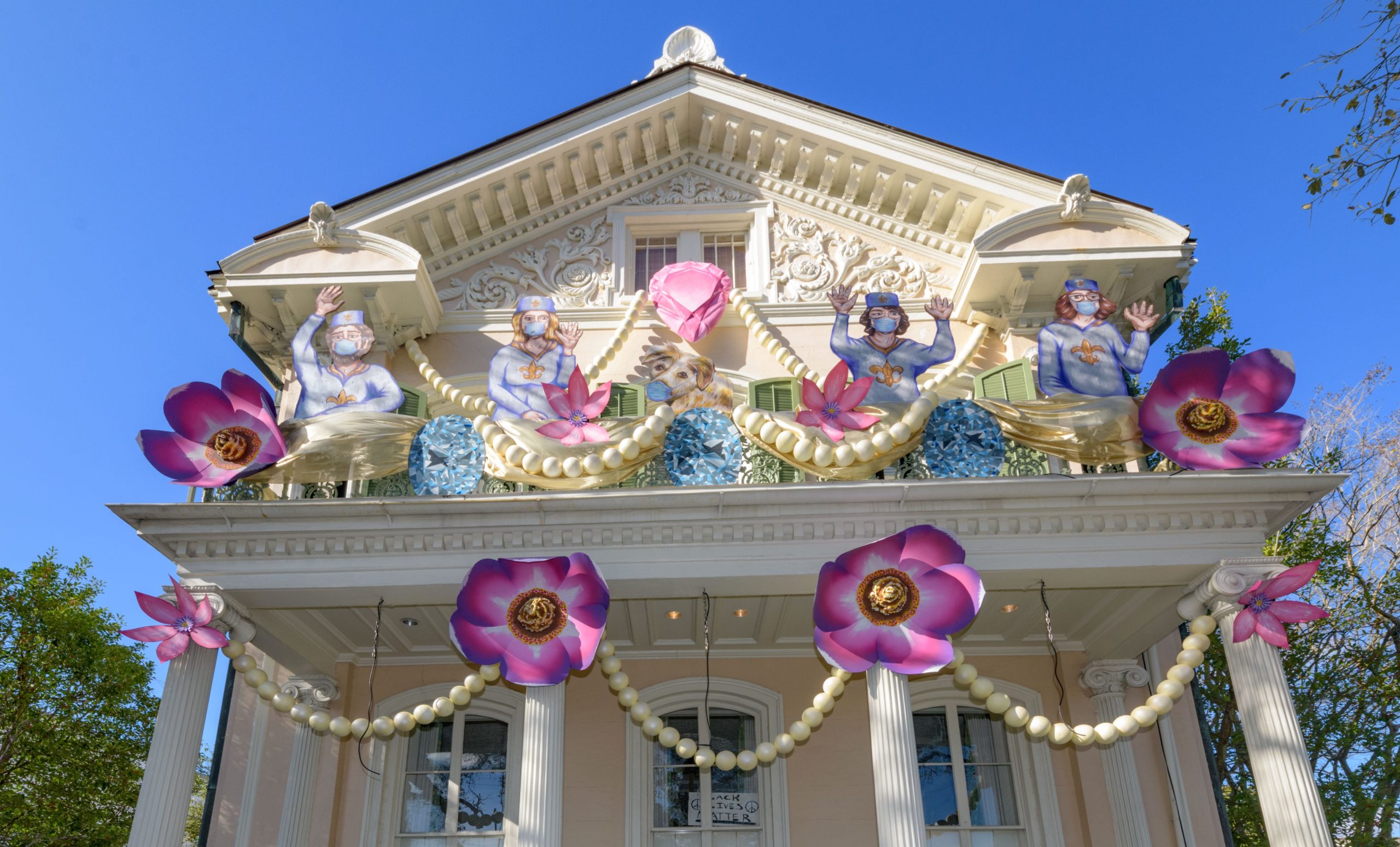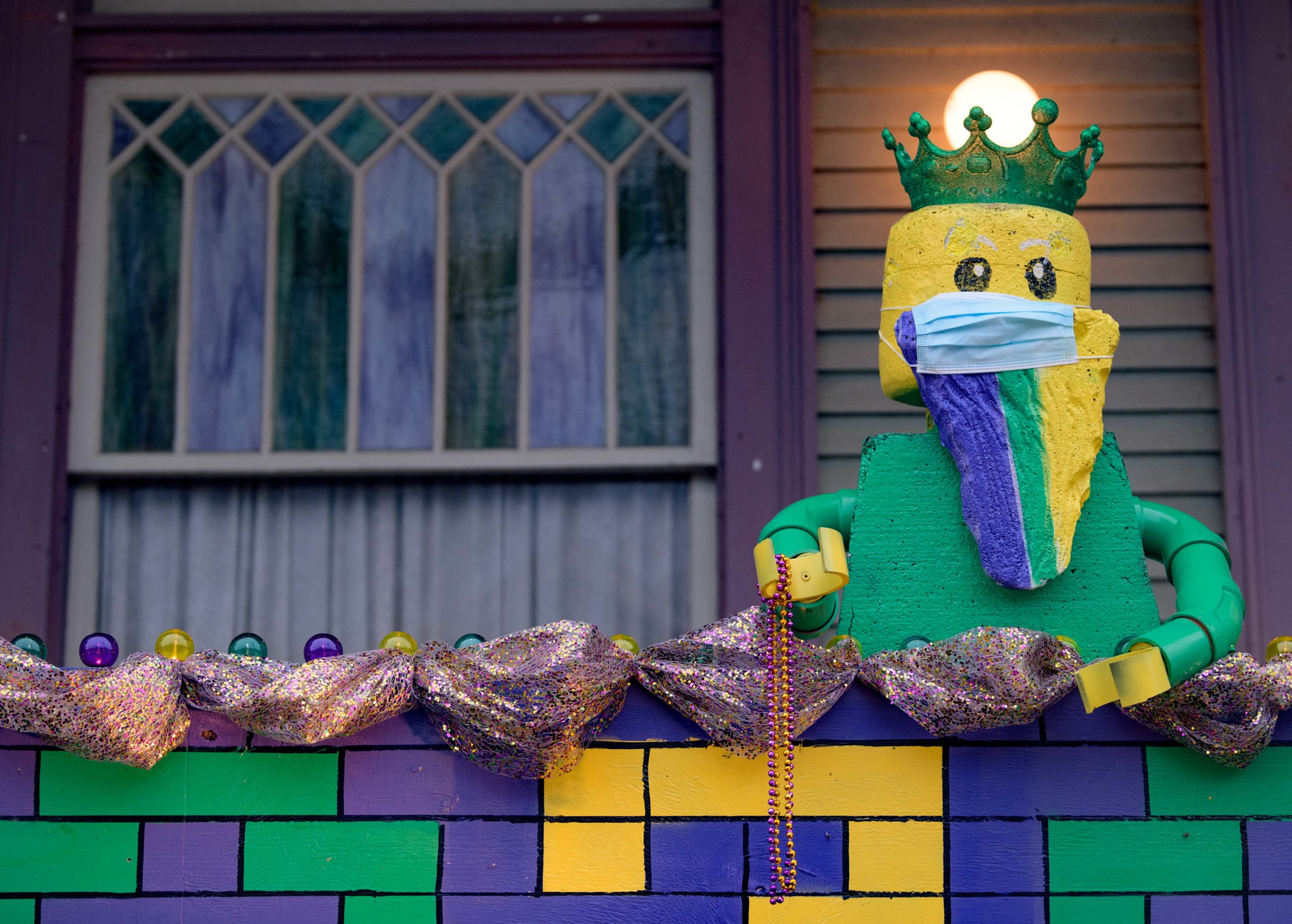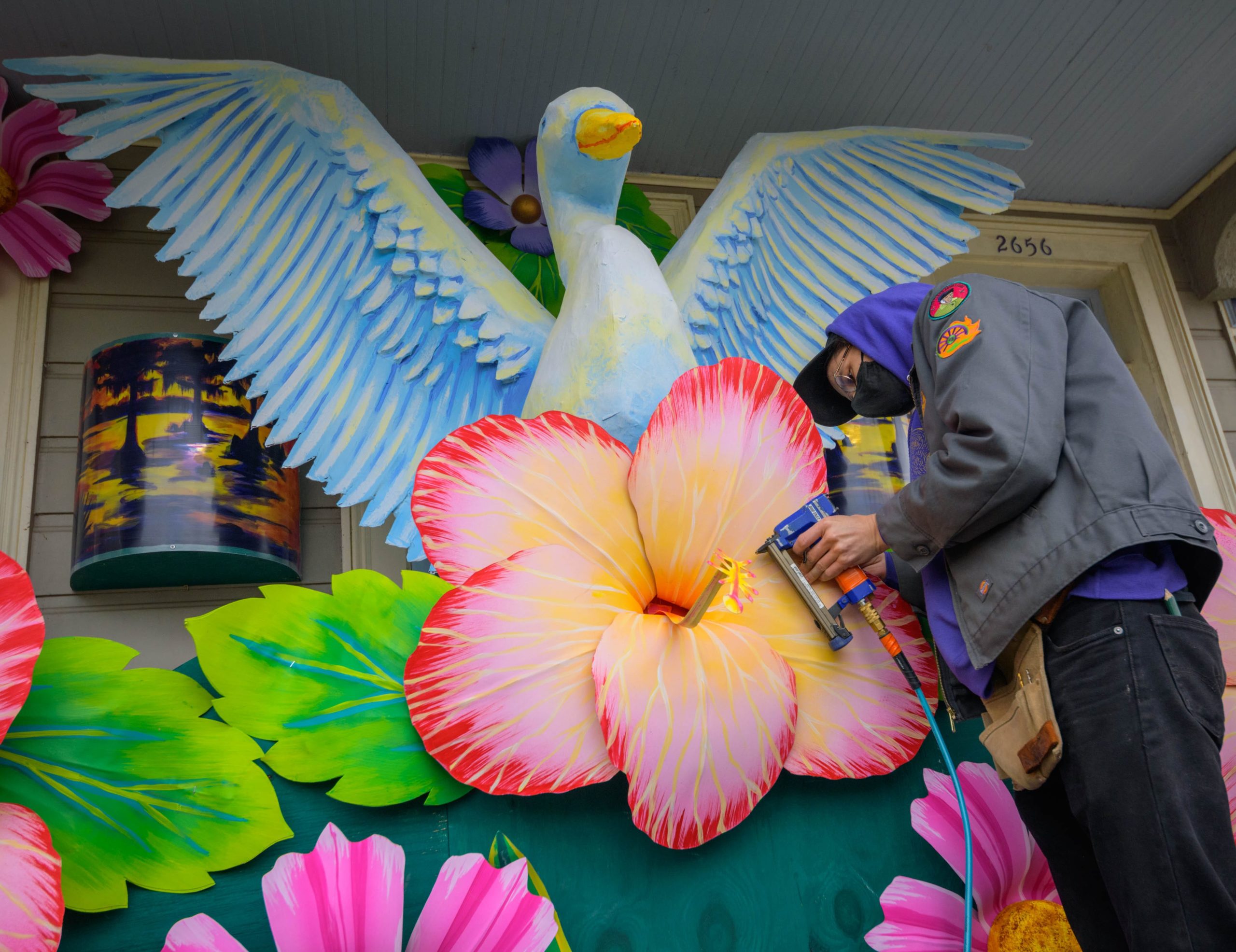 The Krewe of House Floats is an initiative to decorate homes during the Carnival season because of the cancellation and postponement of parades and gatherings for Mardi Gras 2021 due to the COVID-19 pandemic. Throughout the cities floats have popped up often using out-of-work Mardi Gras artists from Stronghold Studios, Crescent City Artists, LLC, Kern Studios and artists working with the Krewe of Red Beans’ “Hire A Mardi Gras Artist,” initiative. All photos by Matthew Hinton