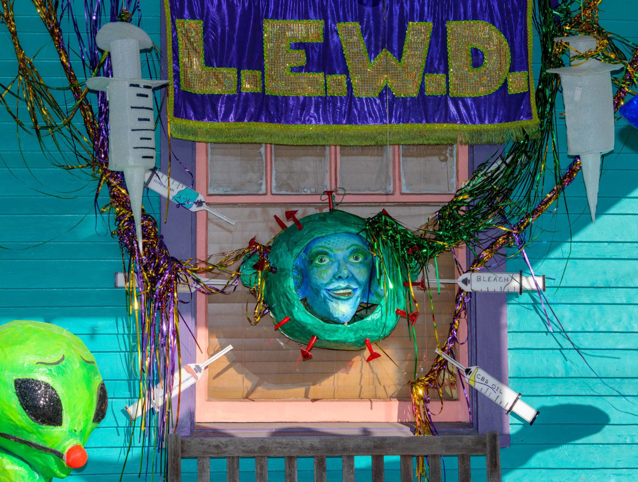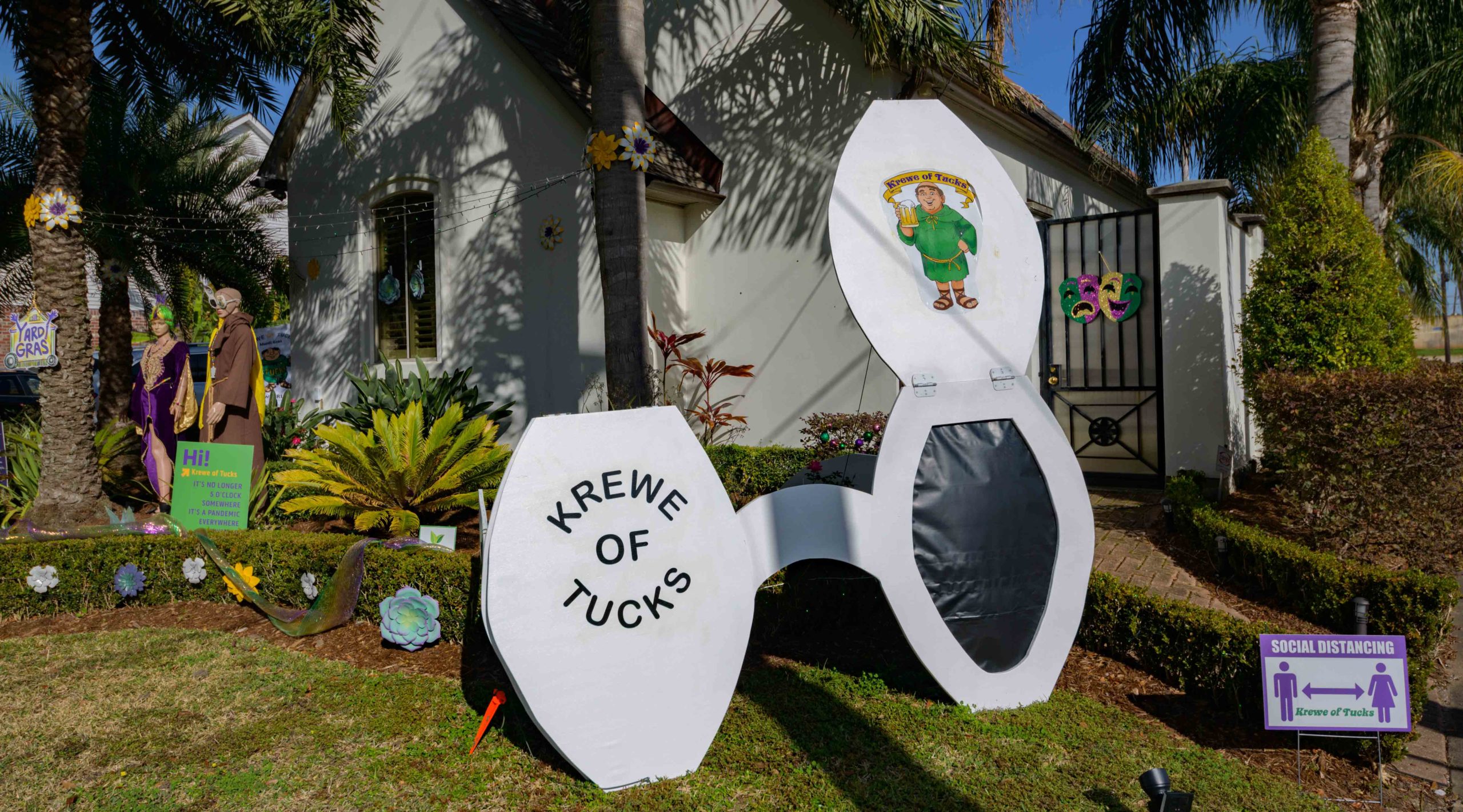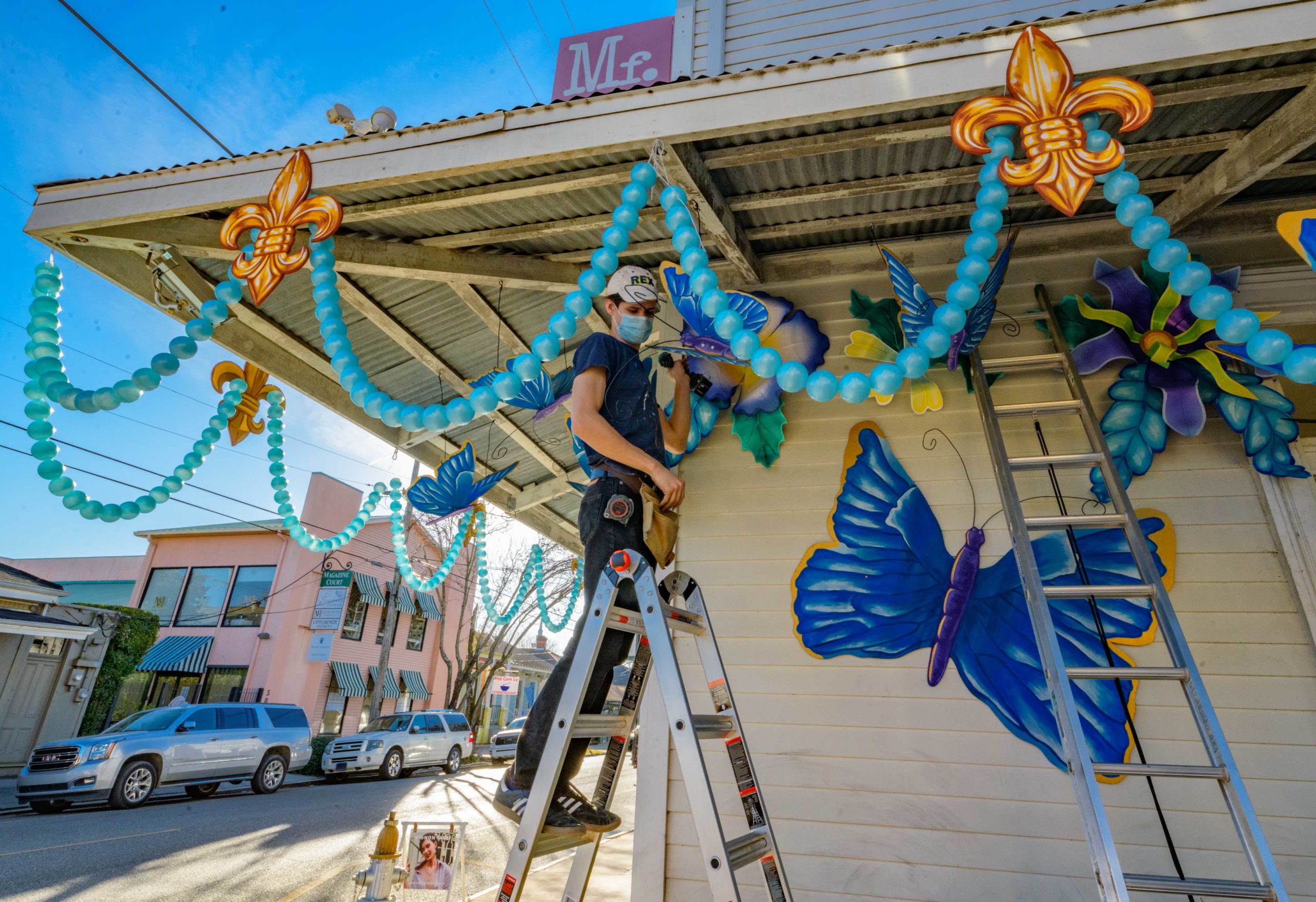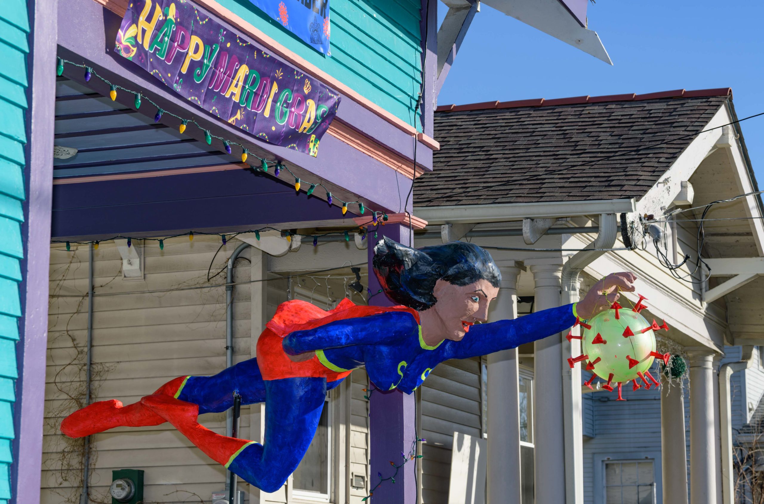 The Krewe of House Floats is an initiative to decorate homes during the Carnival season because of the cancellation and postponement of parades and gatherings for Mardi Gras 2021 due to the COVID-19 pandemic. Throughout the cities floats have popped up often using out-of-work Mardi Gras artists from Stronghold Studios, Crescent City Artists, LLC, Kern Studios and artists working with the Krewe of Red Beans’ “Hire A Mardi Gras Artist,” initiative. All photos by Matthew Hinton