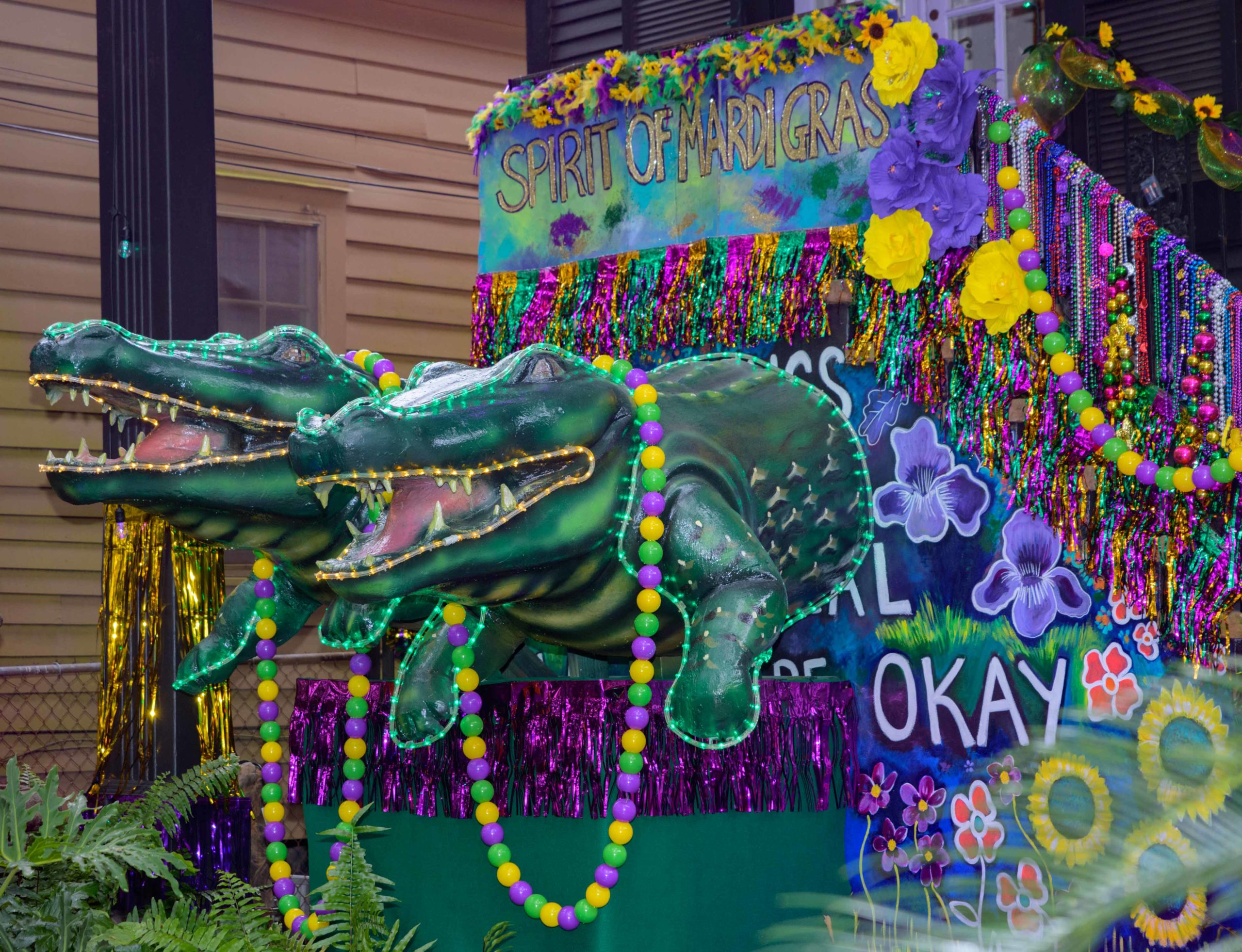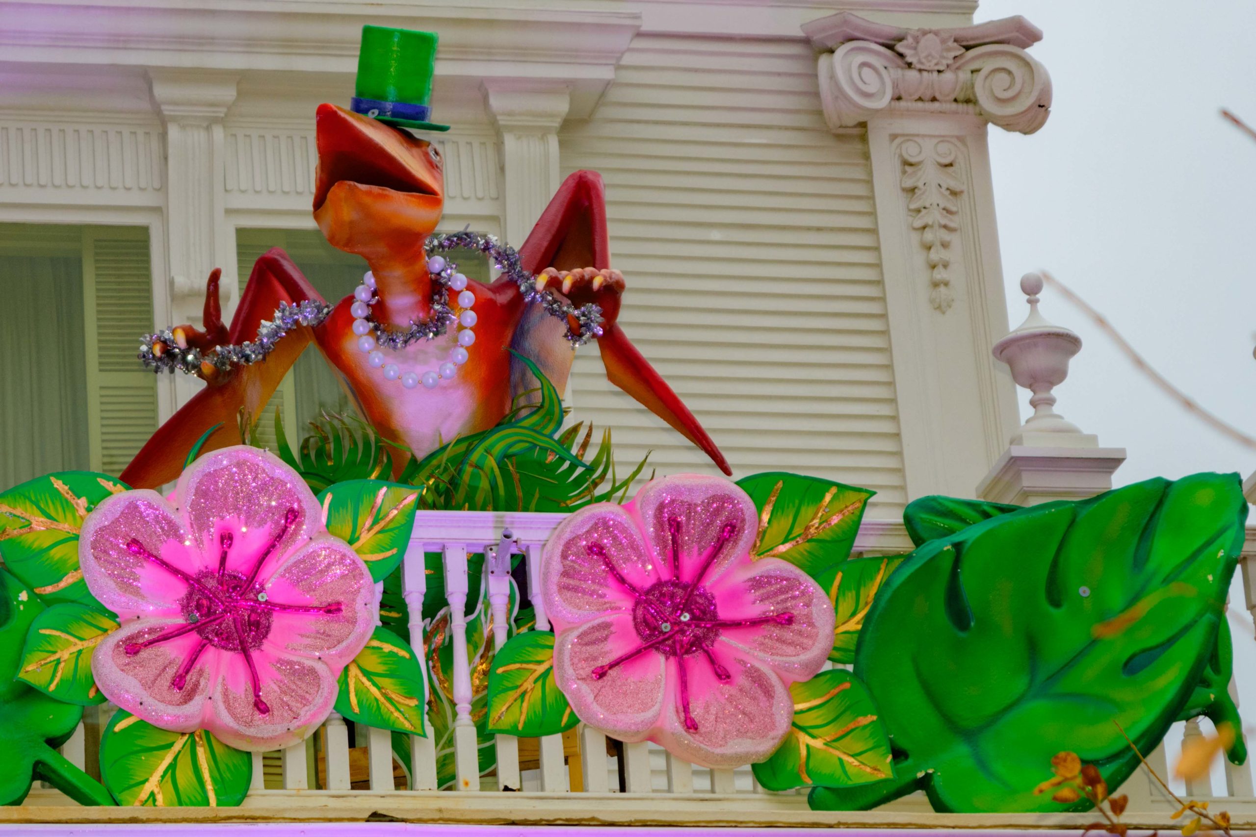 Well what else would you find on Flamingo Street in New Orleans, but a Flamingo House Float? The decorations at Lakeshore home were created by Crescent City Artists, LLC. Photo by Matthew Hinton