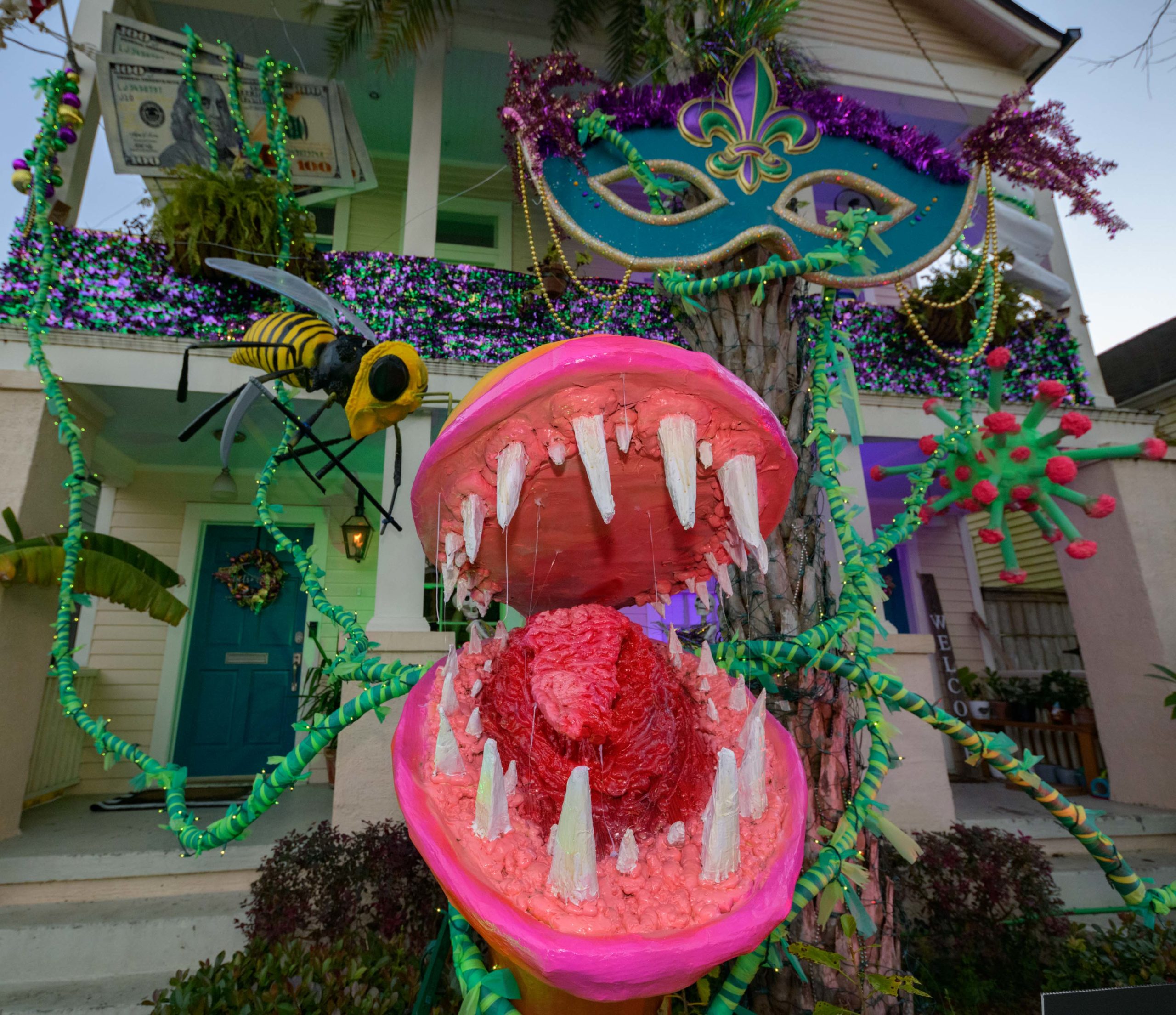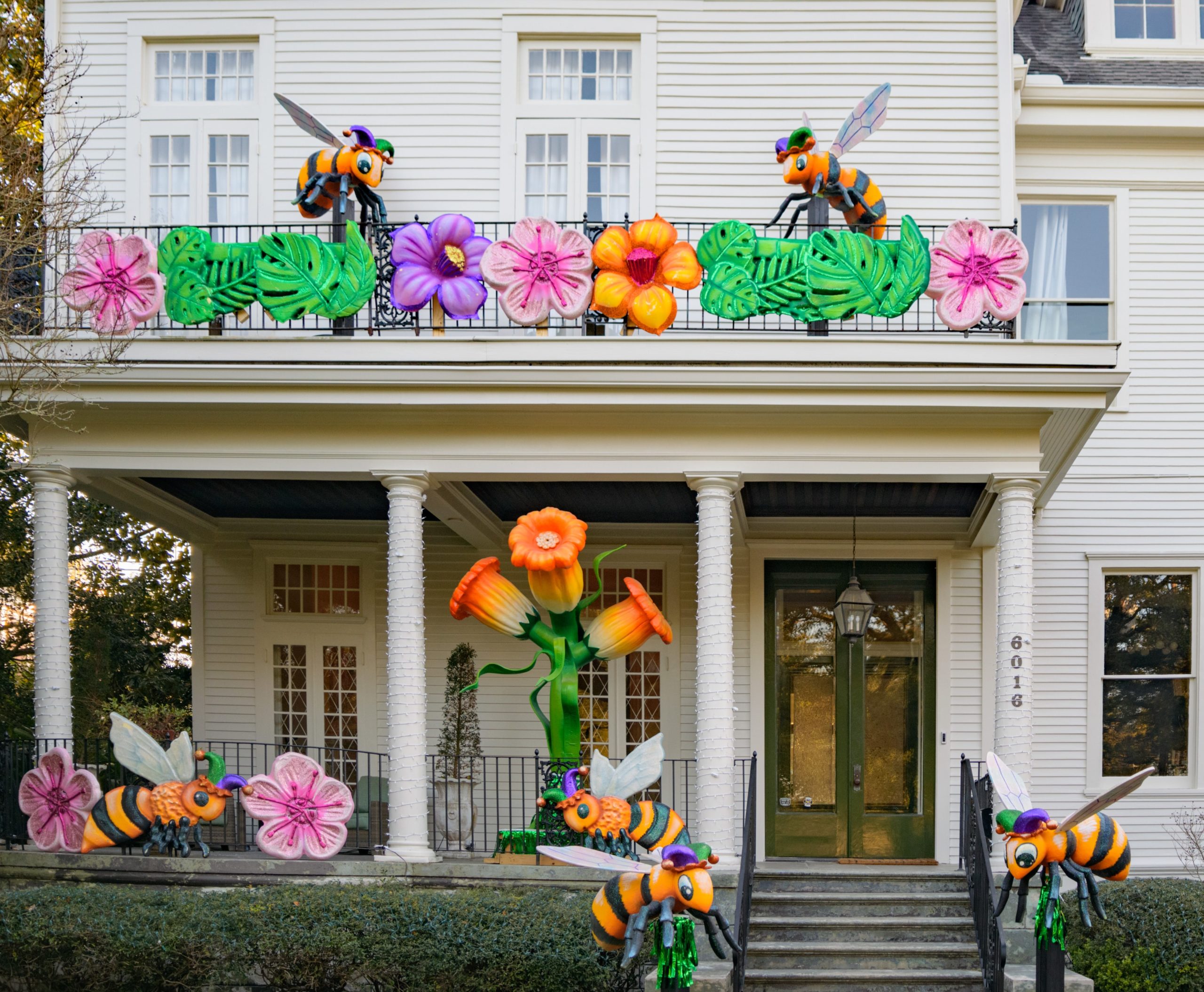 Mardi Gras Bees fly around flowers at 6016 St. Charles Ave. Photo by Matthew Hinton