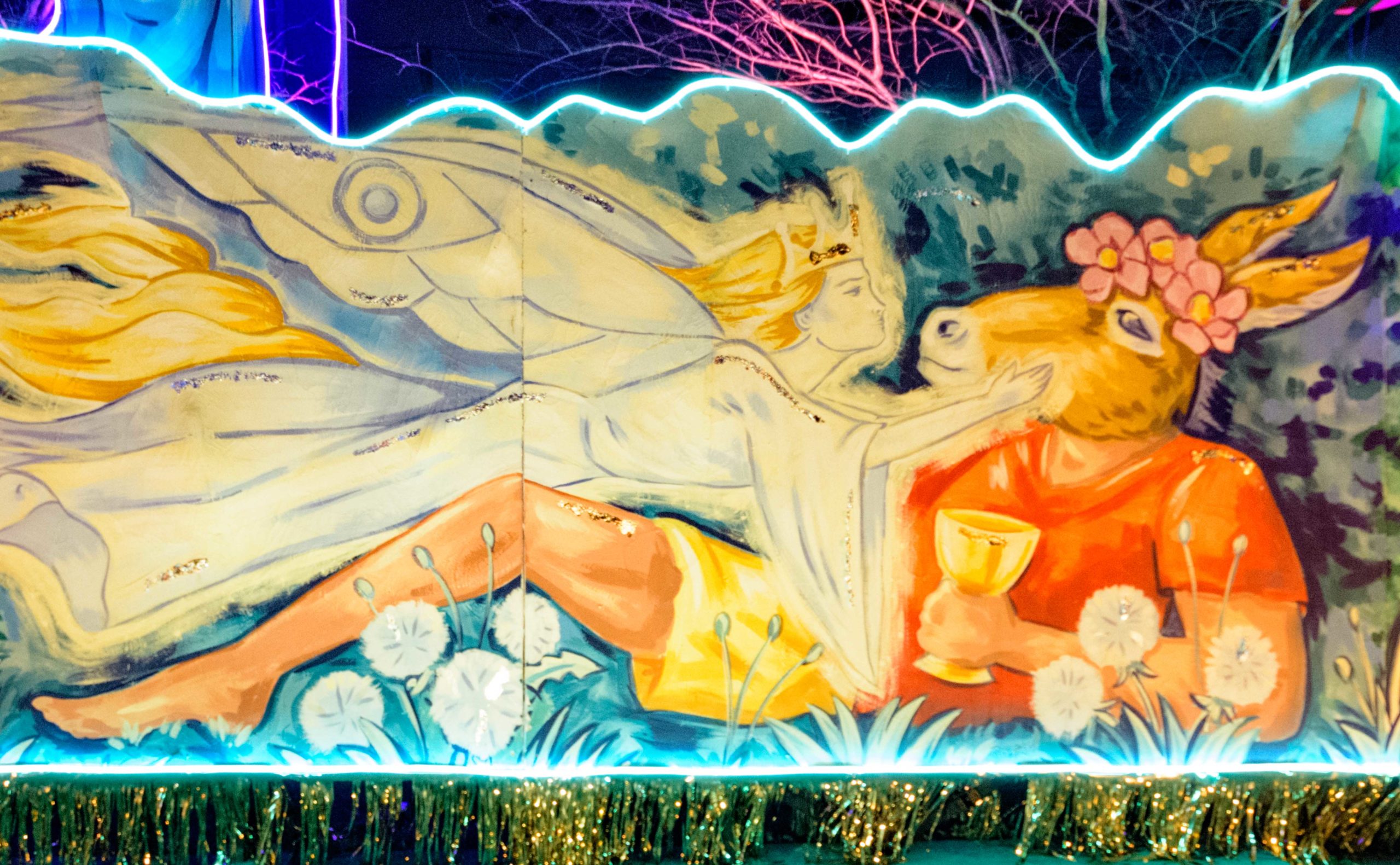 The Iberia Bank on St. Charles Ave. and Louisiana Ave. is an ode to A Midsummer Nights Dream by Shakespeare and was created by Royal Artists for the Krewe of Red Beans Hire a Mardi Gras Artist. Photo by Matthew Hinton