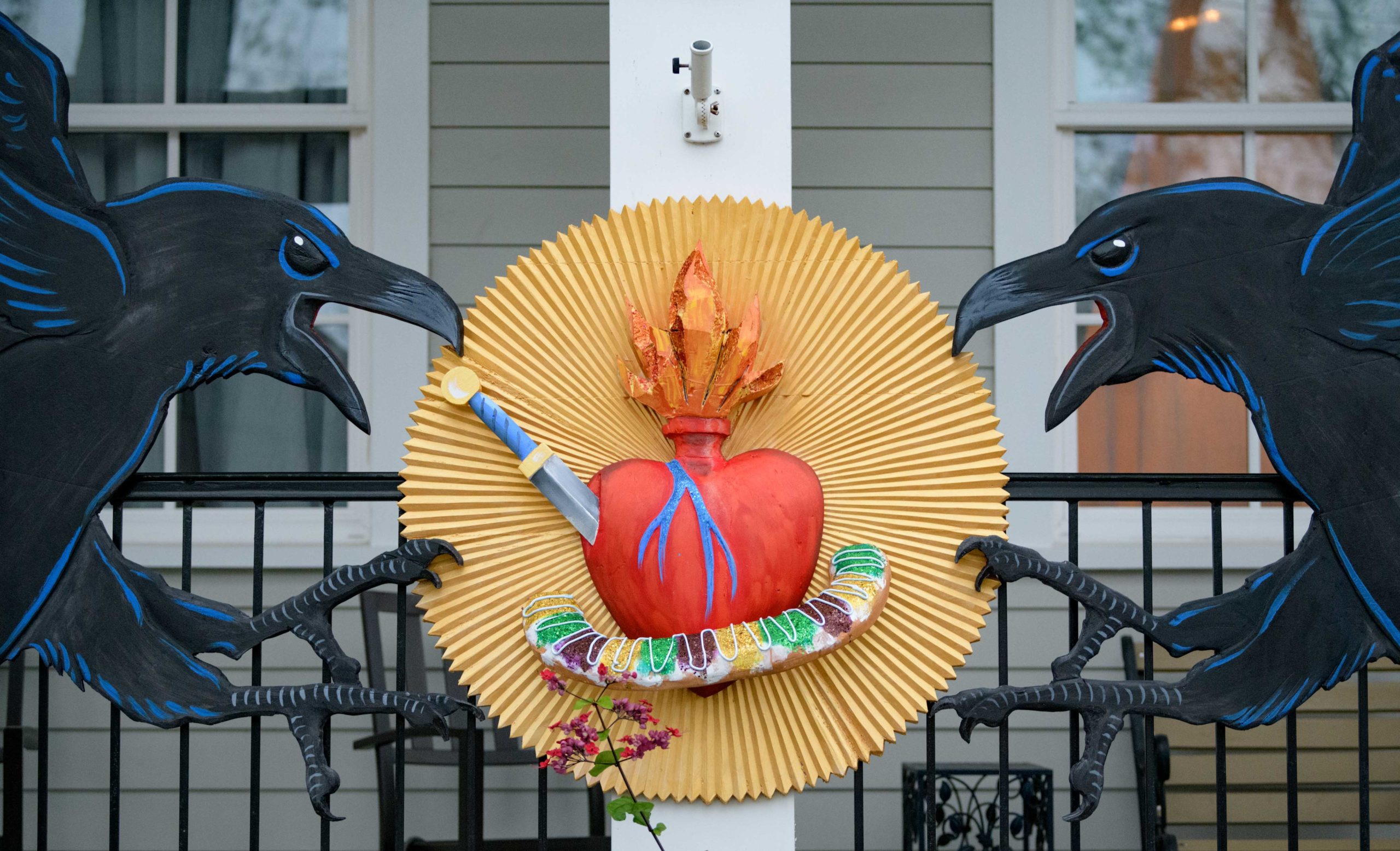 The Krewe of Nevermore on Opelousas Ave. in Algiers features Ravens and what appears to be The Tell-Tale Heart. Photo by Matthew Hinton
