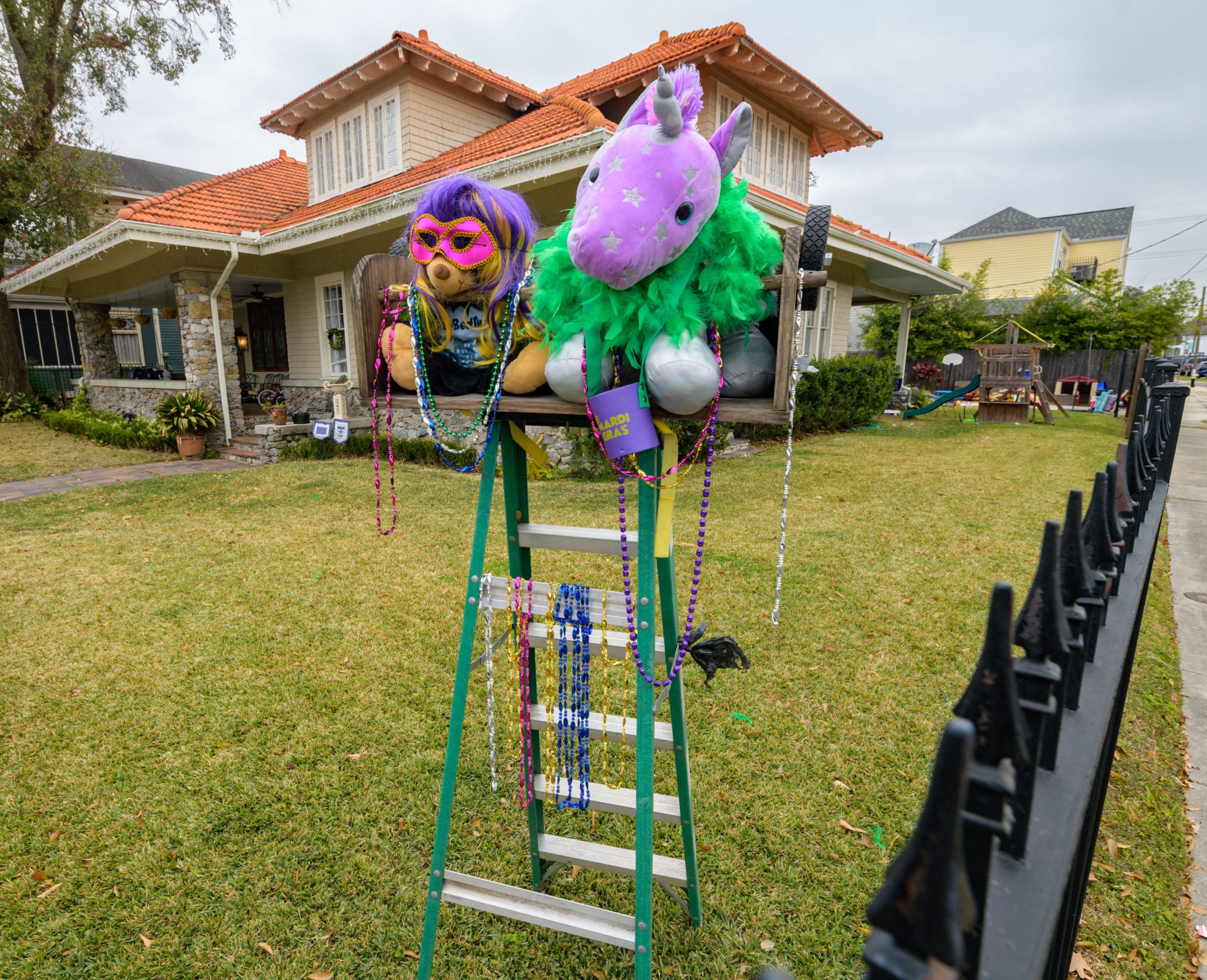 Stuffed animals inhabit a Mardi ladder near the 1800 block of Peniston Street. Photo by Matthew Hinton