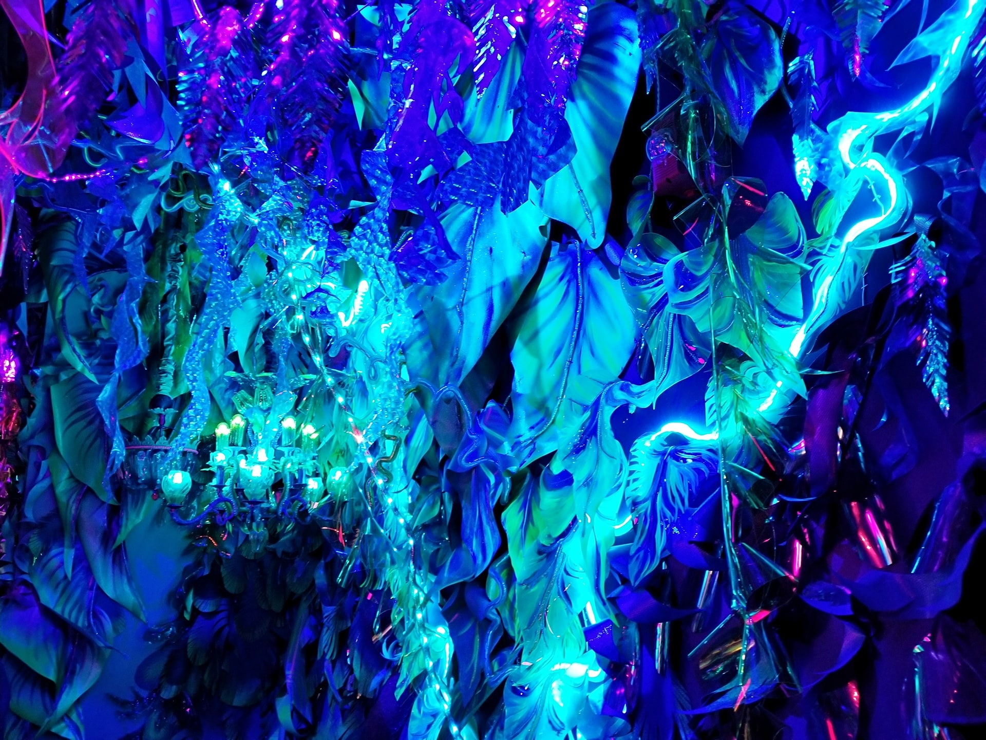 One of my favorite rooms was Bling Bayou by Pompadour Productions. This glittery bayou shines under the moonlight as a sparkly alligator looks on. Look up and see a Spanish moss-covered light that seems to twinkle under the stars. Use your QR code to learn about 9 amazing hiking trails near New Orleans.