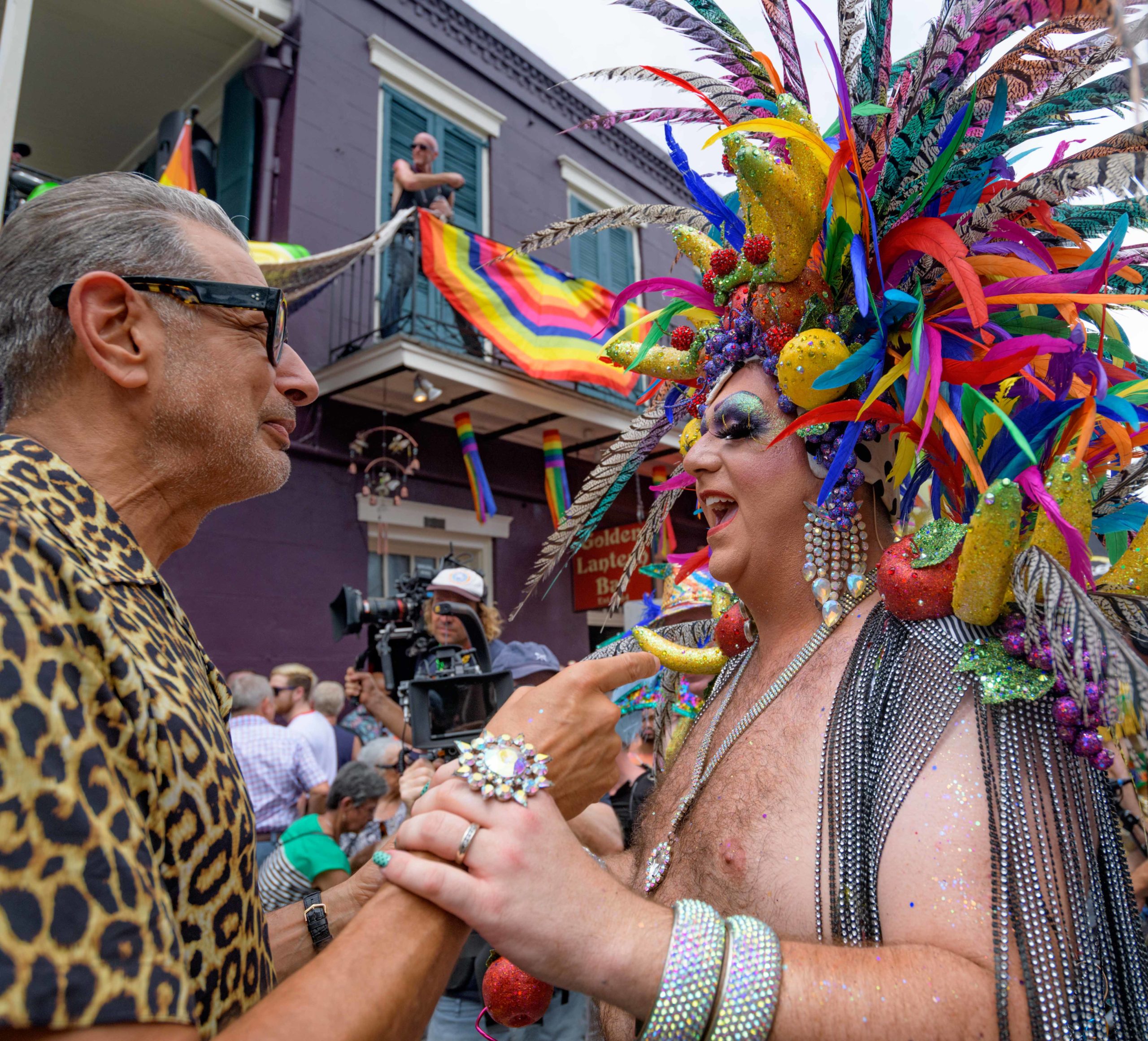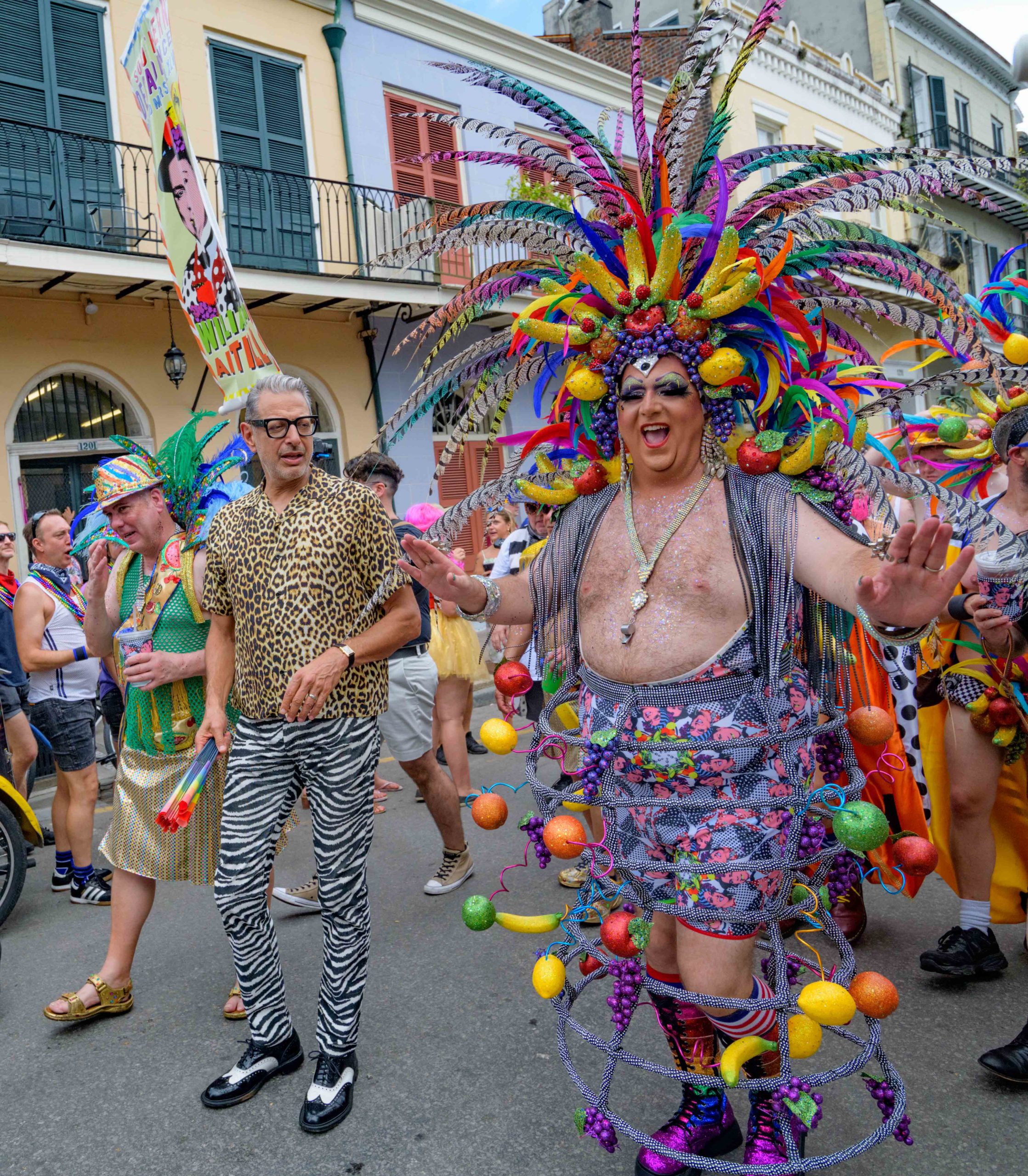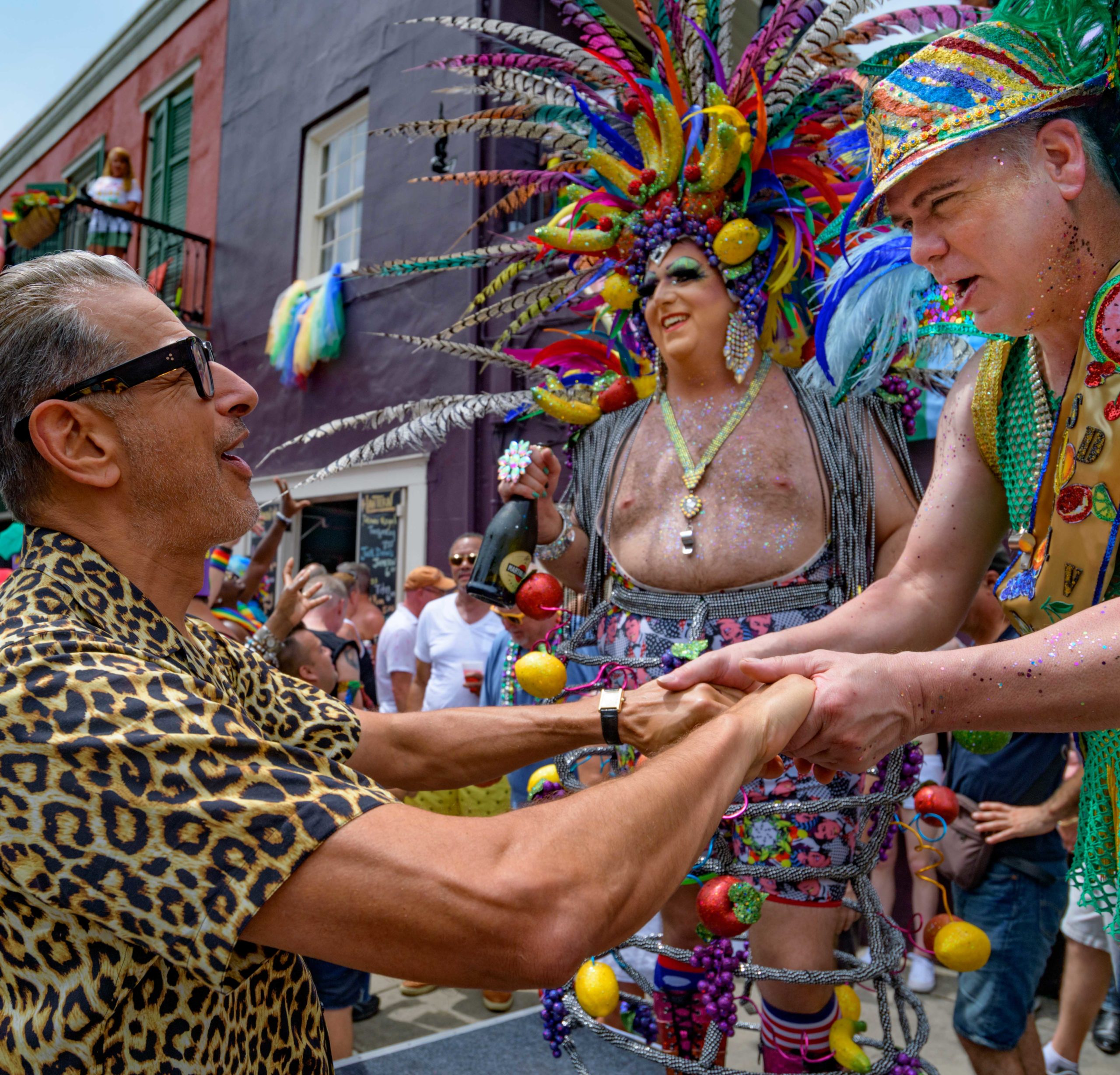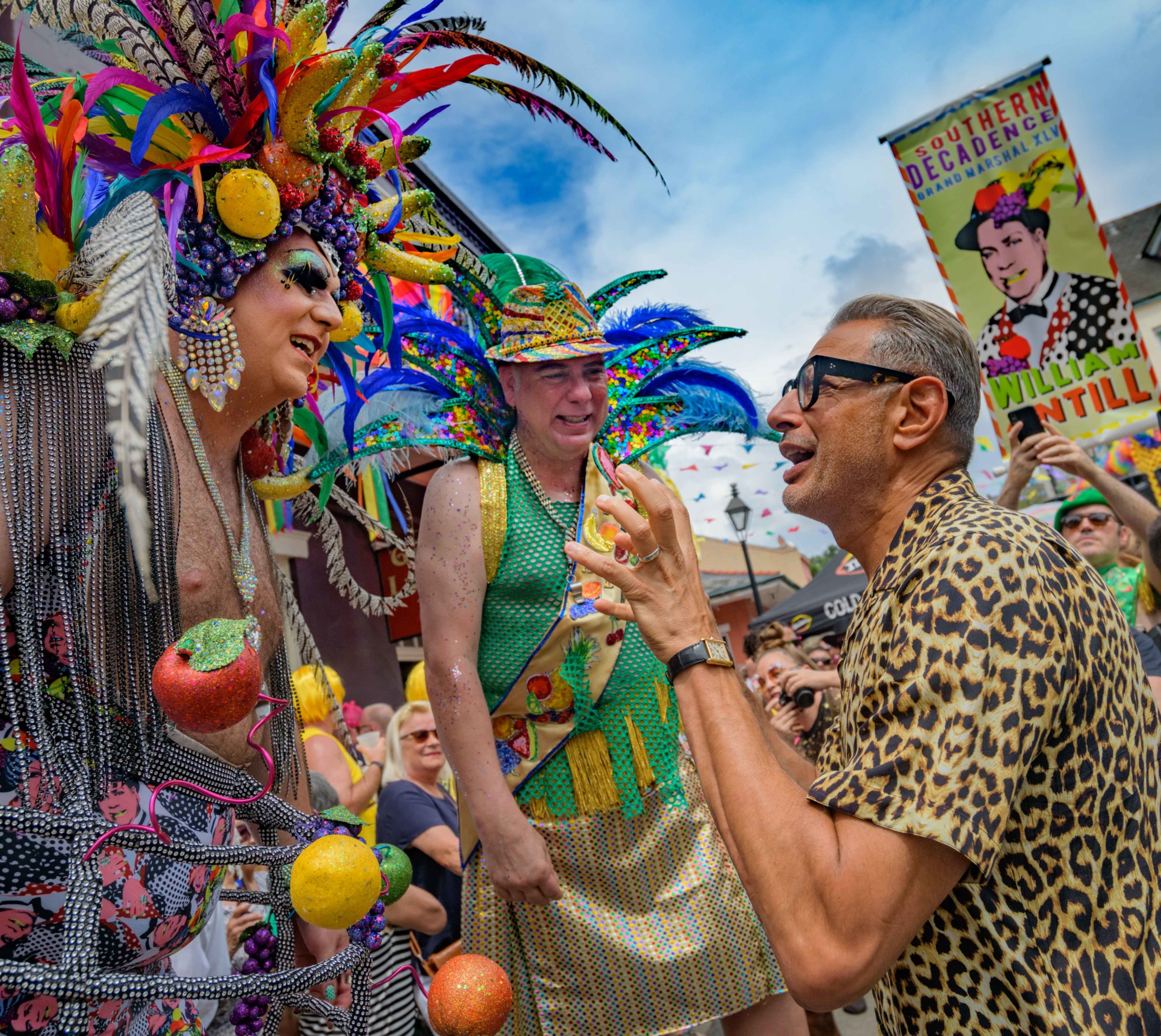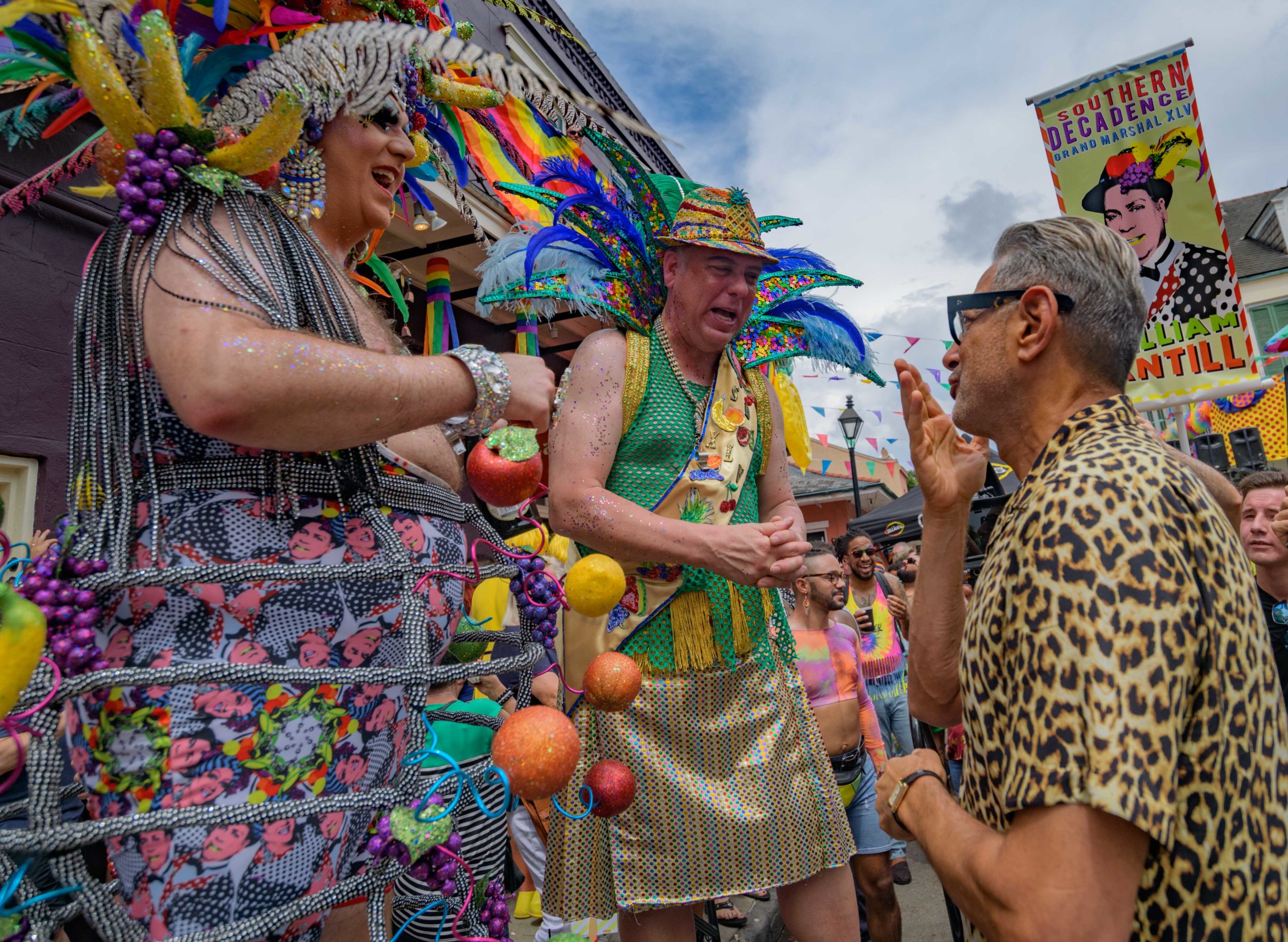 Jeff Goldblum attends the 44th Southern Decadence Walking parade with the 45th Grand Marshals of Southern Decadence XLV, Countess C. Alice and Will Antill, in the French Quarter Sunday, September 1, 2019, during the largest LGBTQ+ event in New Orleans with an estimated 250,000 visitors in 2018 over the Labor Day Weekend. The official colors of this year are polka dots and pinstripes because Grand Marshal Will Antill has color blindness. The theme this is year Fruit Salad: Come Toss A Good Time and the theme song is Push Groove by Instamatic, a mash-up of Salt N’ Pepa’s Push It vs Dee-Lite’s Groove Is In The Heart. The event is part of the 48th Decadence celebration. There was no parade the first year in 1972 when it was just a small house party in Treme, and none during Hurricane Katrina in 2005, Hurricane Gustav in 2008, and Hurricane Isaac in 2012. Photo by Matthew Hinton