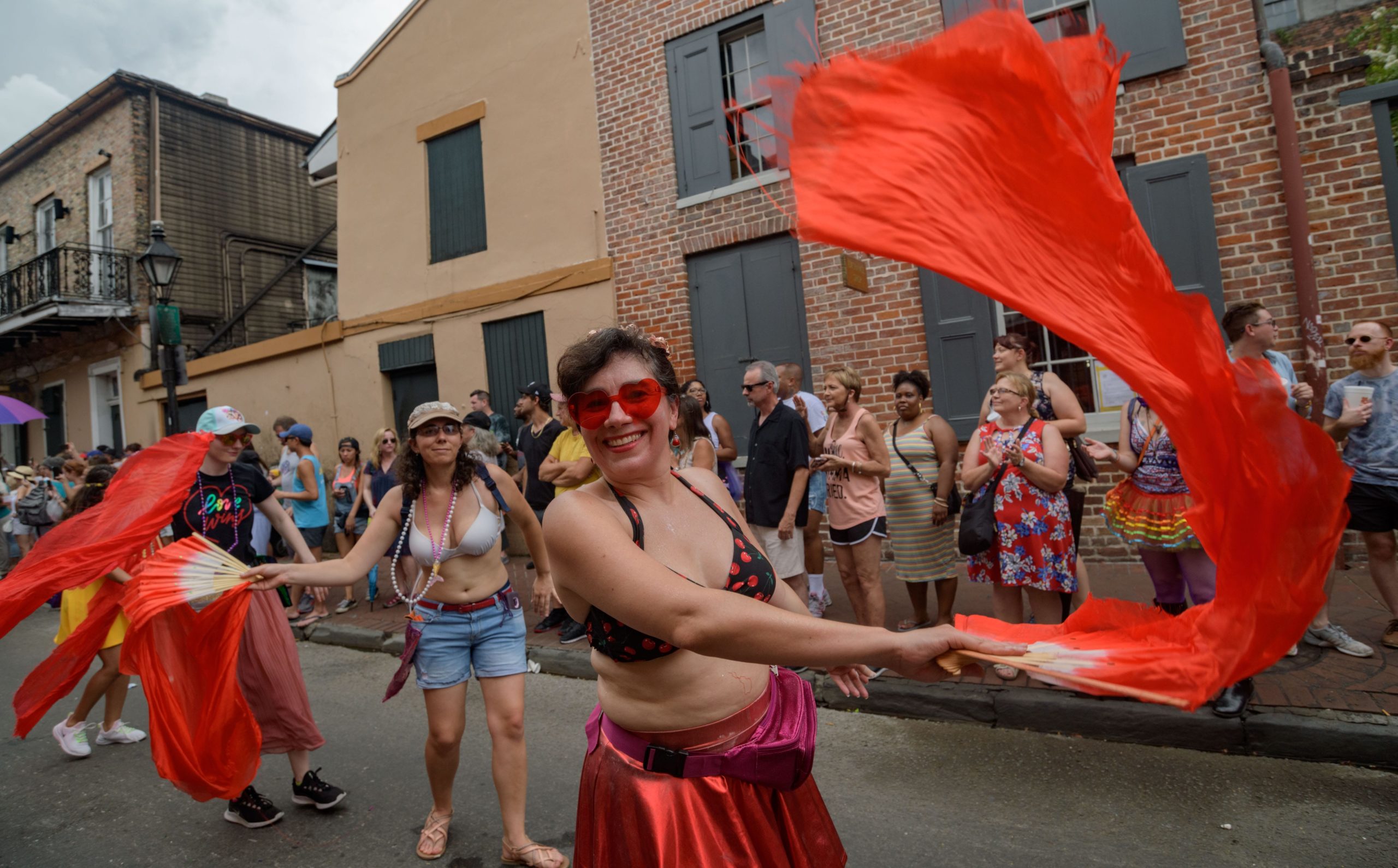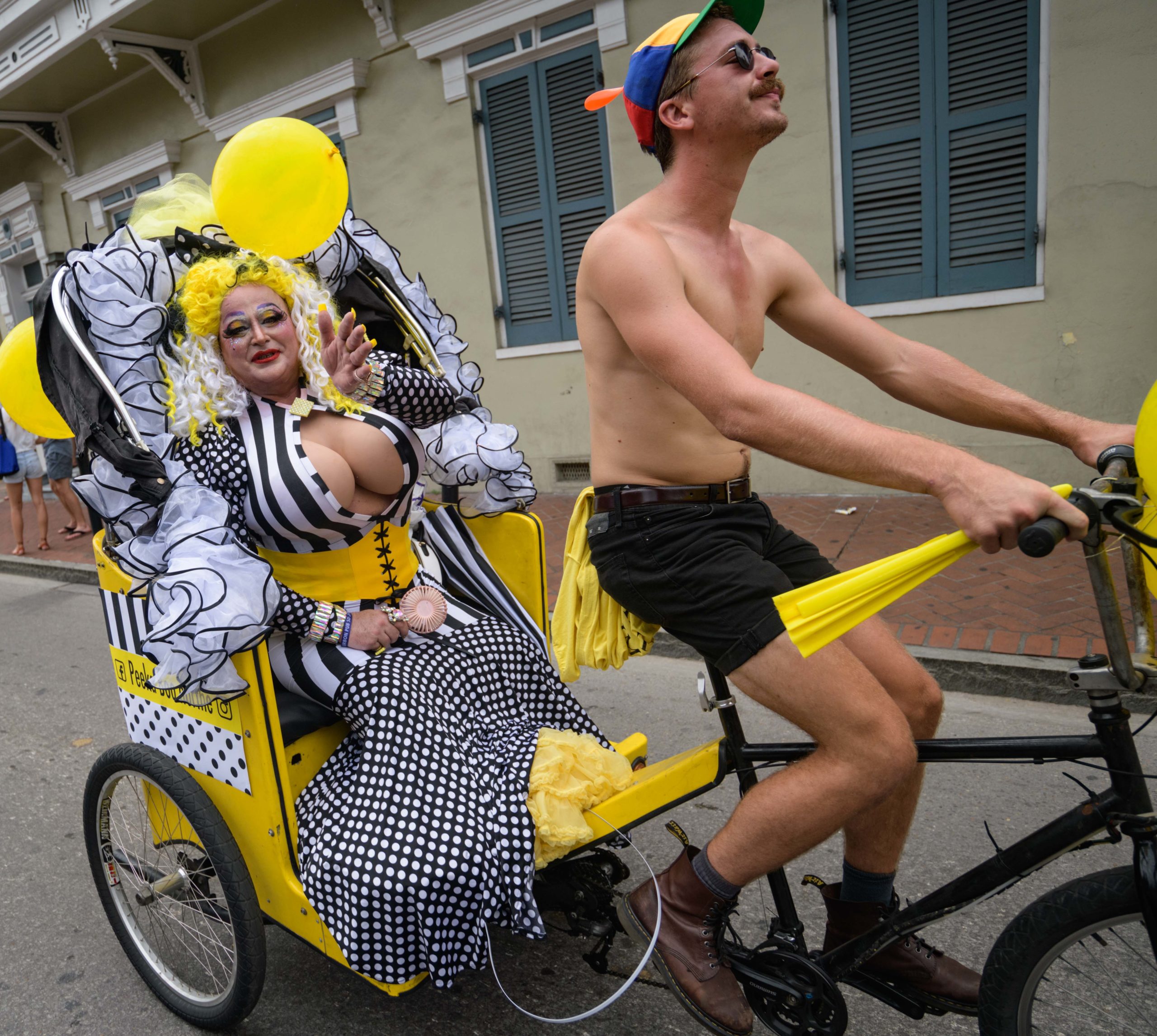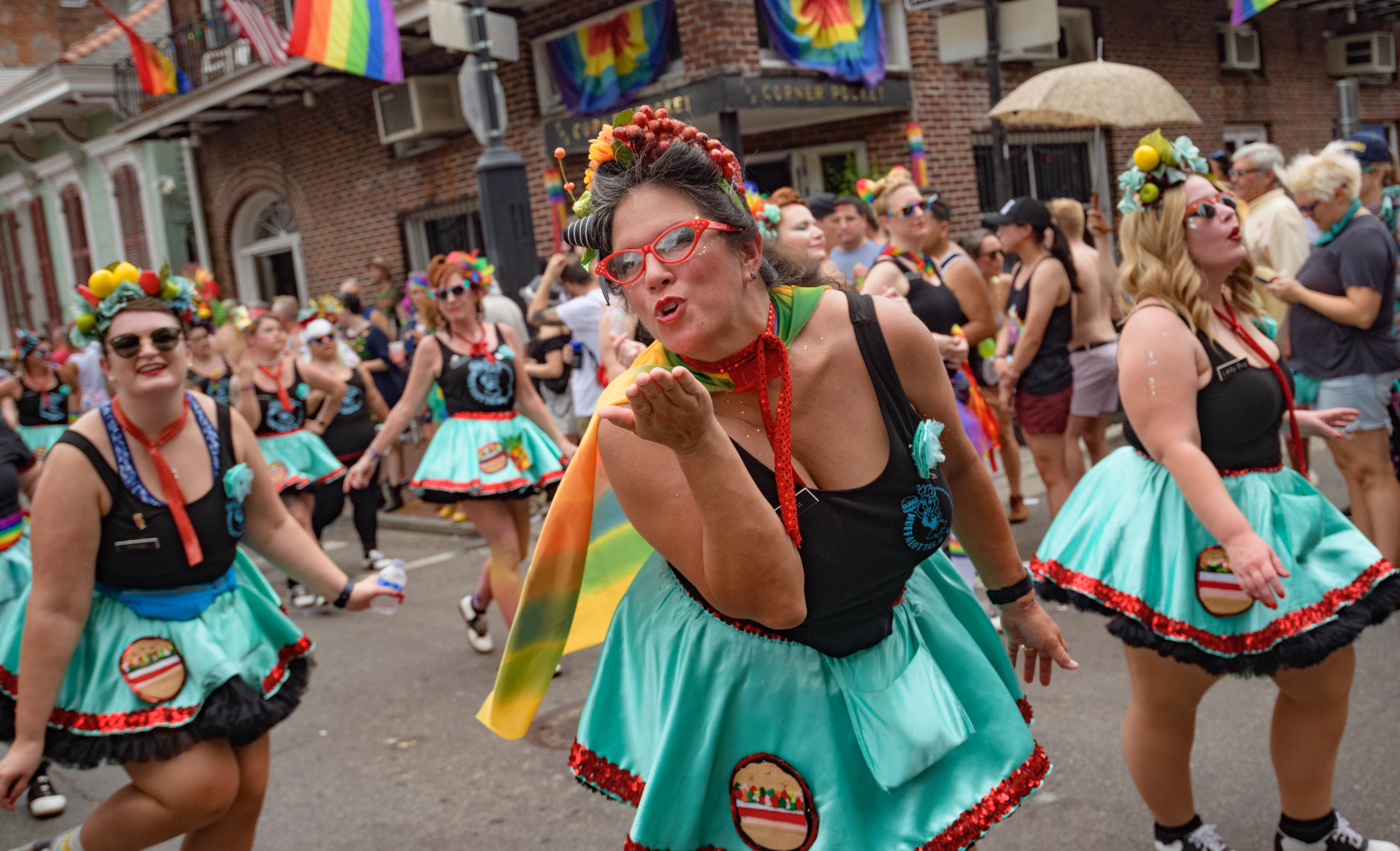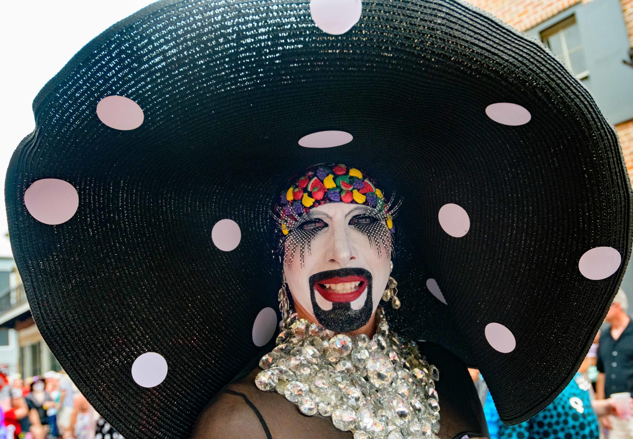 The 44th Southern Decadence Walking Parade with the 45th Grand Marshals of Southern Decadence XLV, Countess C. Alice and Will Antill, travels through the French Quarter Sunday, September 1, 2019, during the largest LGBTQ+ event in New Orleans with an estimated 250,000 visitors in 2018 over the Labor Day Weekend. The official colors of this year are polka dots and pinstripes because Grand Marshal Will Antill has color blindness. The theme this is year ‘Fruit Salad: Come Toss A Good Time’ and the theme song is ‘Push Groove’ by Instamatic, a mash-up of Salt N’ Pepa’s ‘Push It’ vs Dee-Lite’s ‘Groove Is In The Heart.’ The event is part of the 48th Decadence celebration. There was no parade the first year in 1972 when it was just a small house party in Treme, and none during Hurricane Katrina in 2005, Hurricane Gustav in 2008, and Hurricane Isaac in 2012. Photo by Matthew Hinton