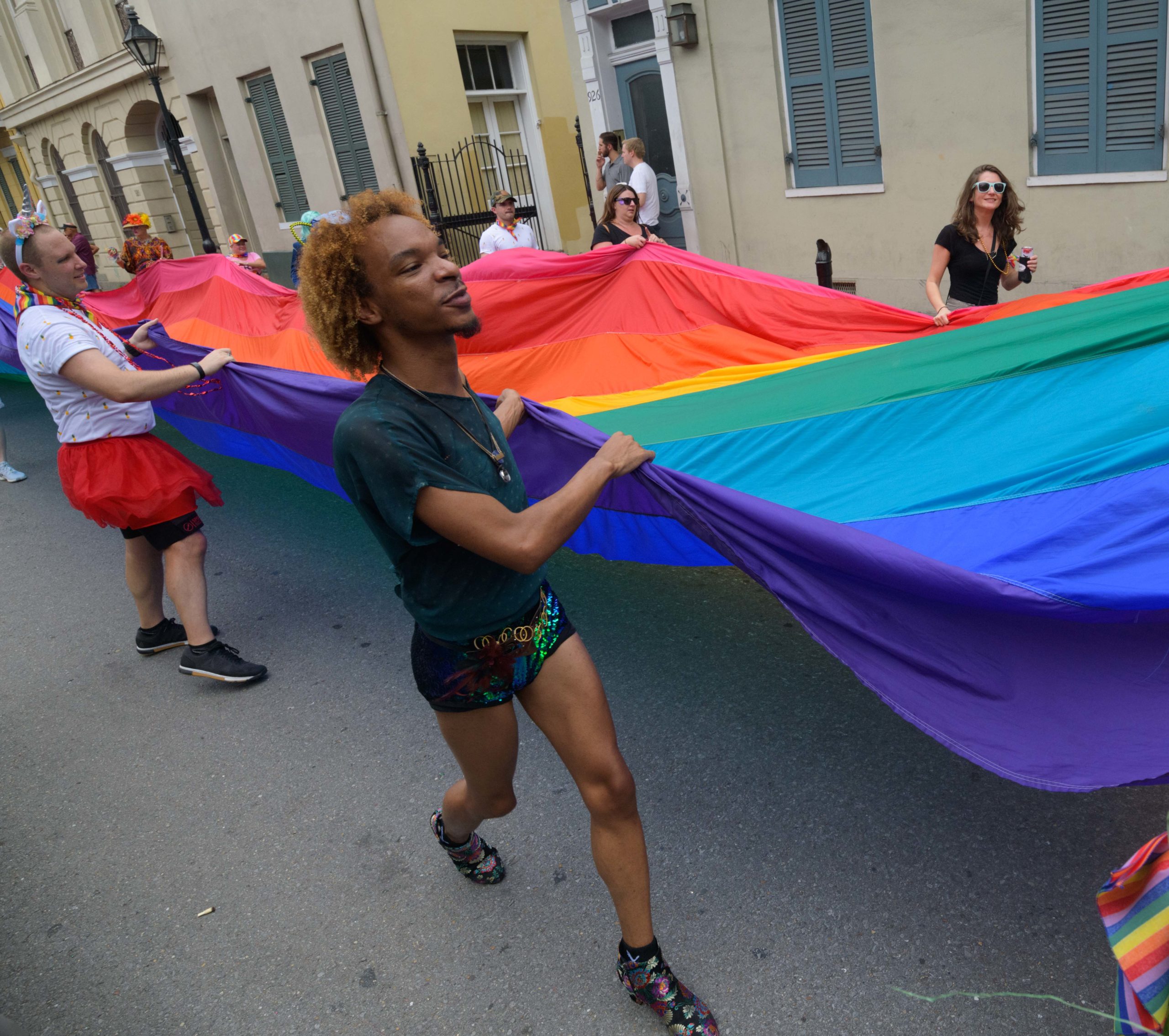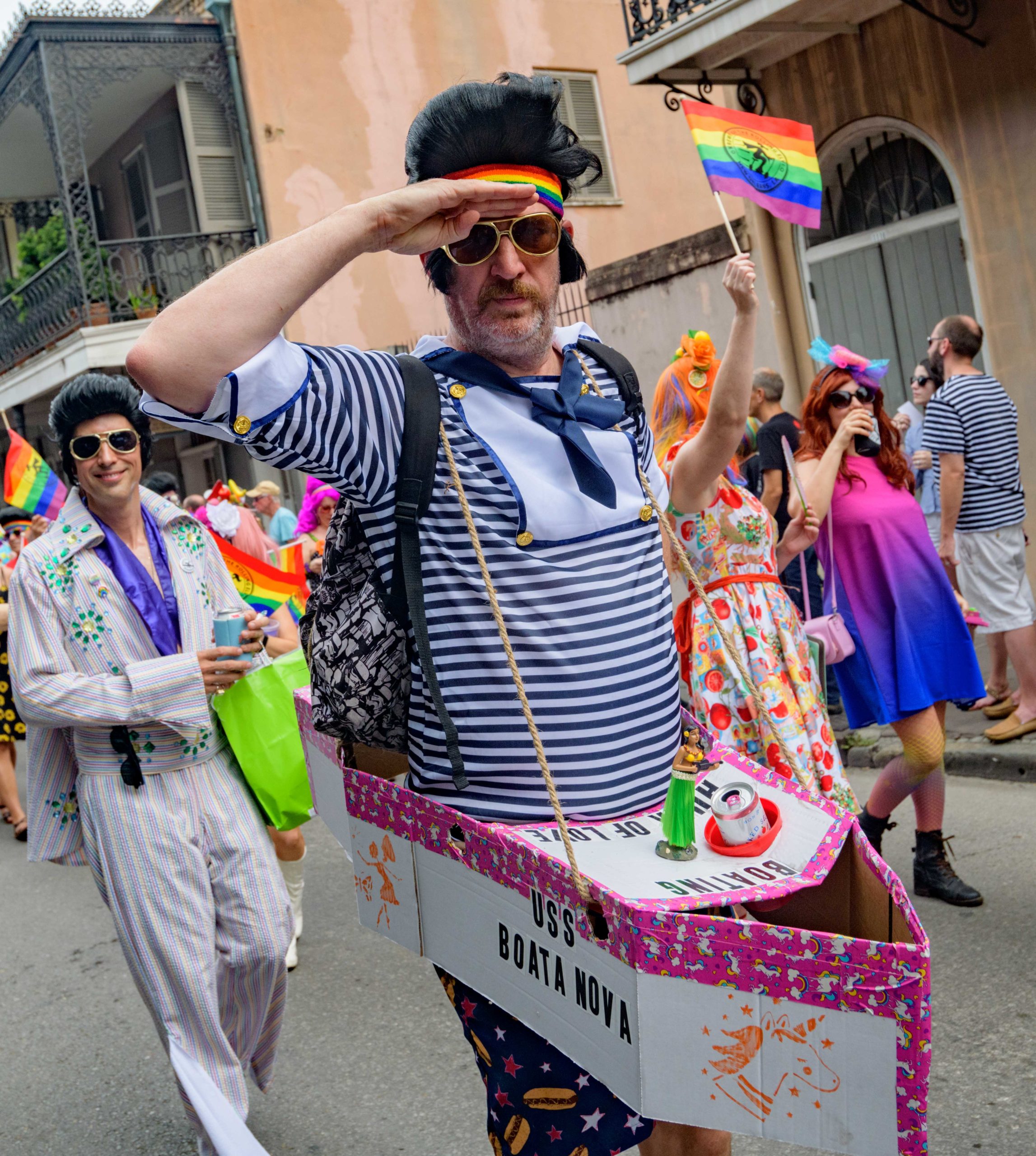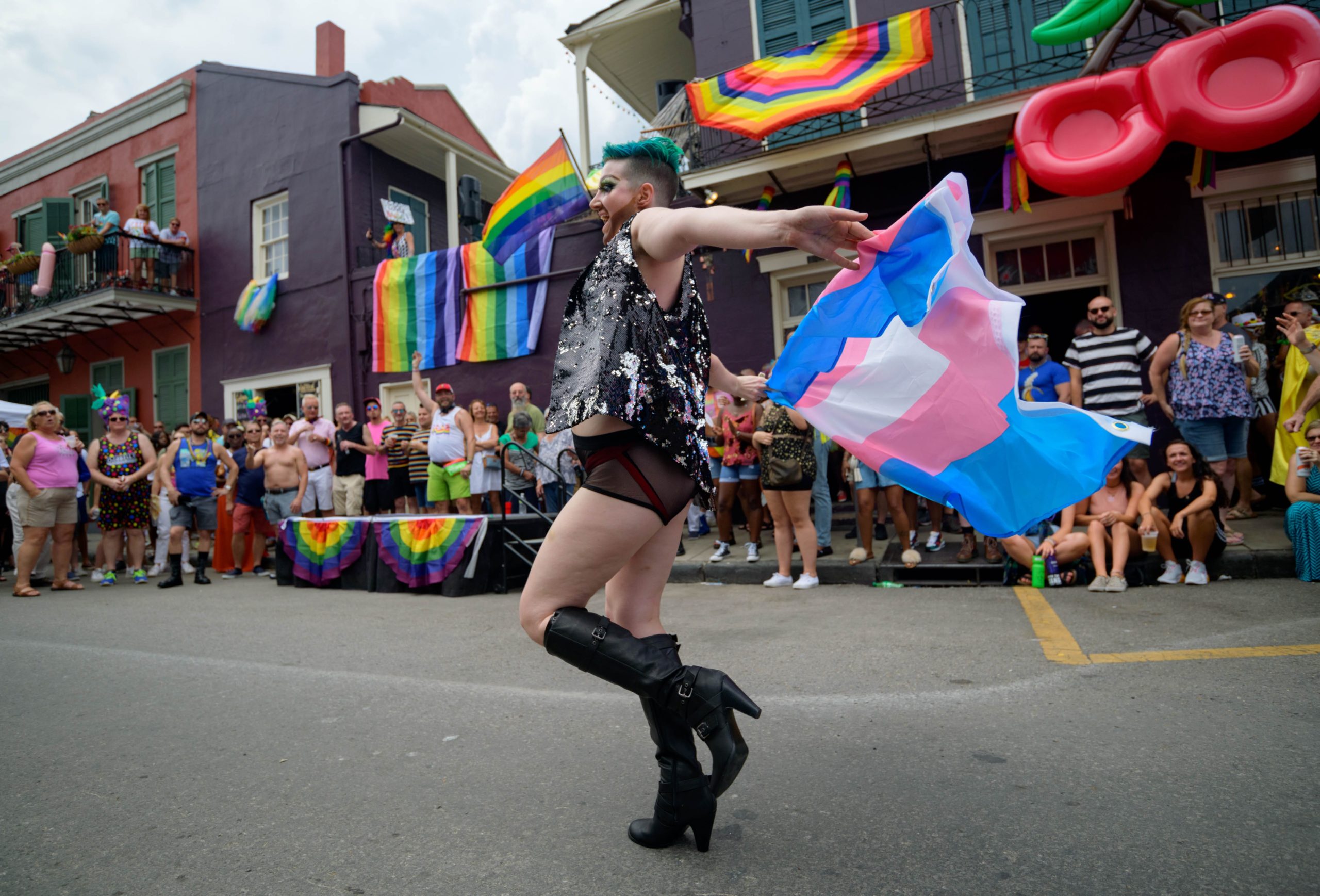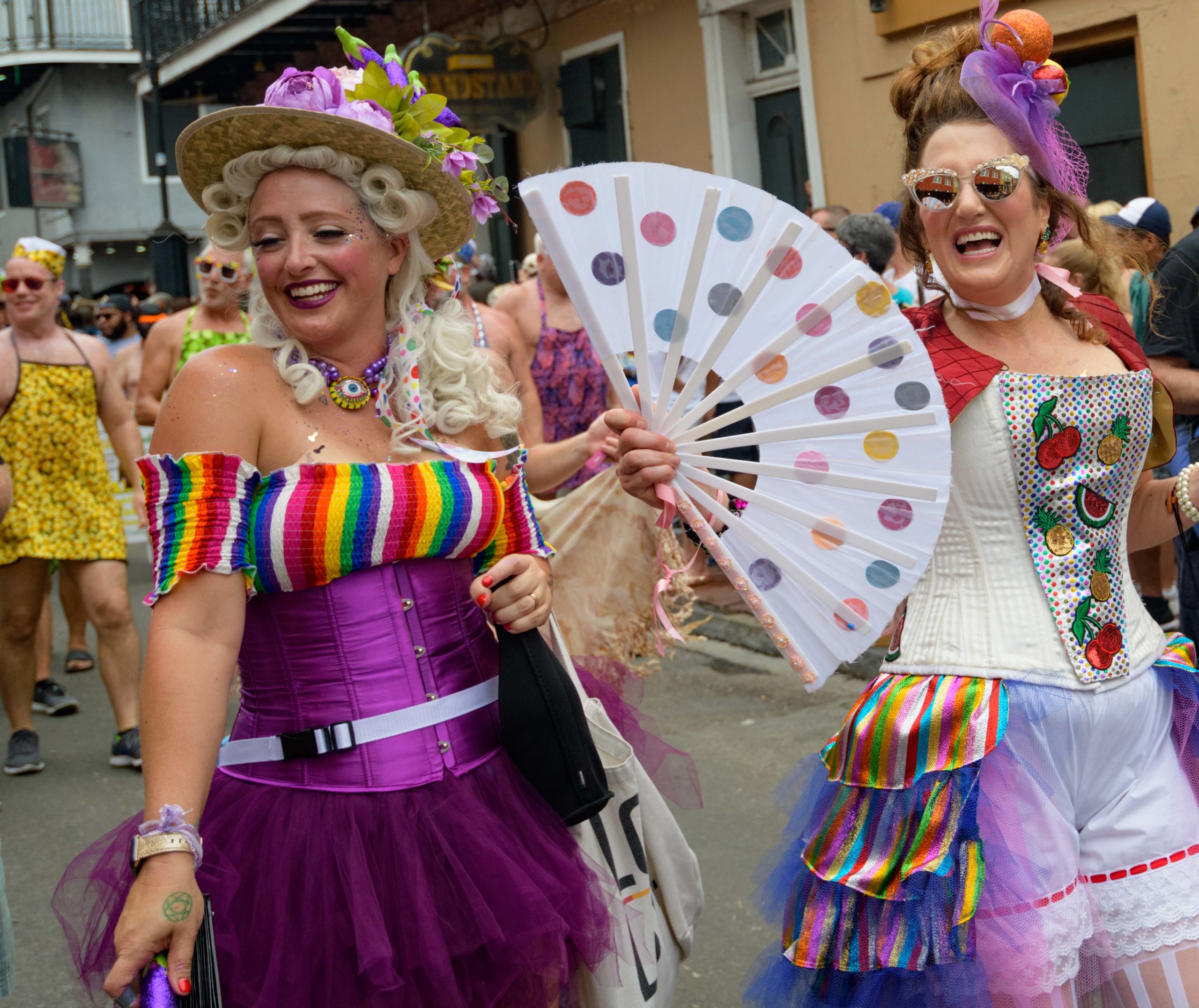 The 44th Southern Decadence Walking Parade with the 45th Grand Marshals of Southern Decadence XLV, Countess C. Alice and Will Antill, travels through the French Quarter Sunday, September 1, 2019, during the largest LGBTQ+ event in New Orleans with an estimated 250,000 visitors in 2018 over the Labor Day Weekend. The official colors of this year are polka dots and pinstripes because Grand Marshal Will Antill has color blindness. The theme this is year Fruit Salad: Come Toss A Good Time and the theme song is Push Groove by Instamatic, a mash-up of Salt N’ Pepa’s Push It vs Dee-Lite’s Groove Is In The Heart. The event is part of the 48th Decadence celebration. There was no parade the first year in 1972 when it was just a small house party in Treme, and none during Hurricane Katrina in 2005, Hurricane Gustav in 2008, and Hurricane Isaac in 2012. Photo by Matthew Hinton