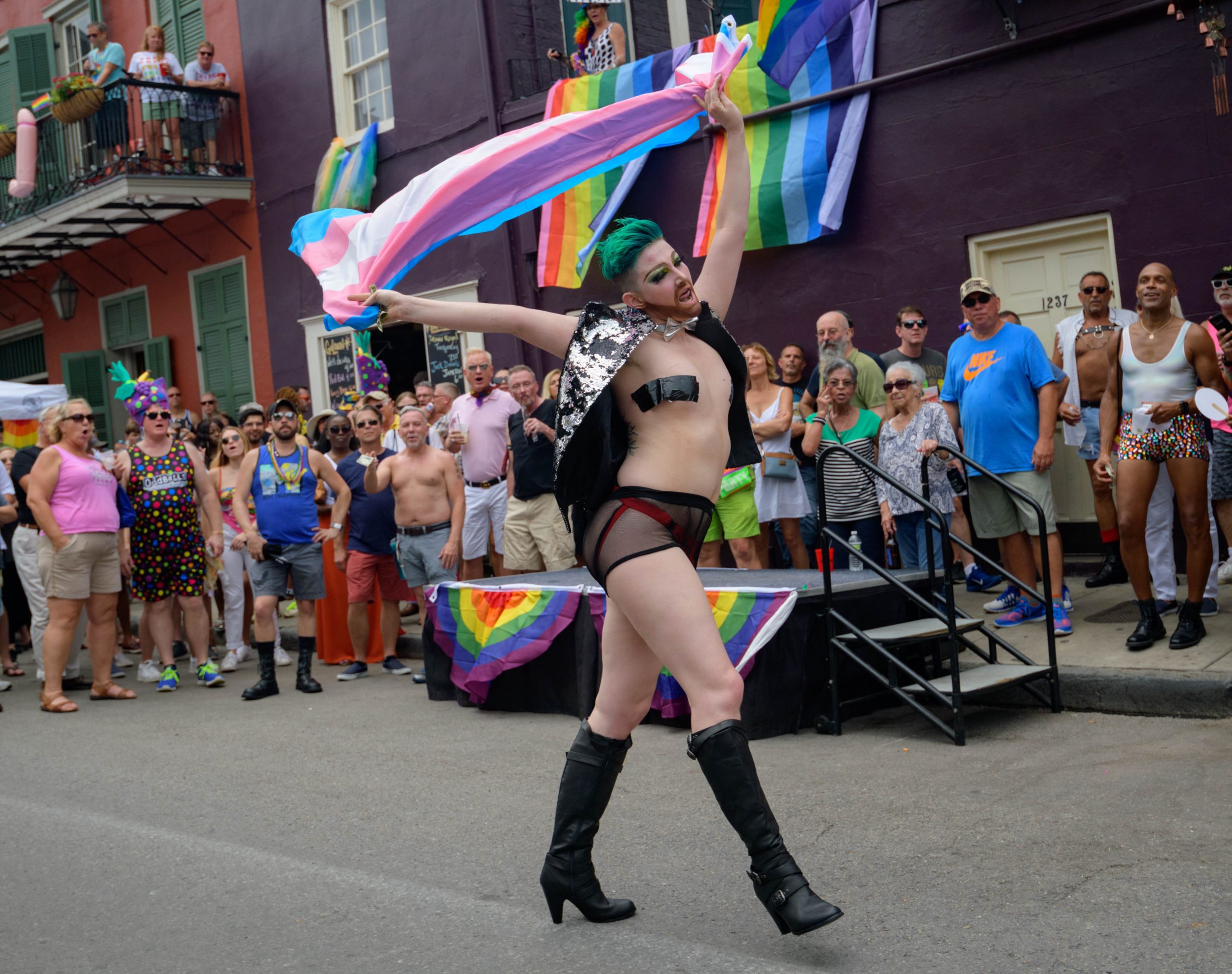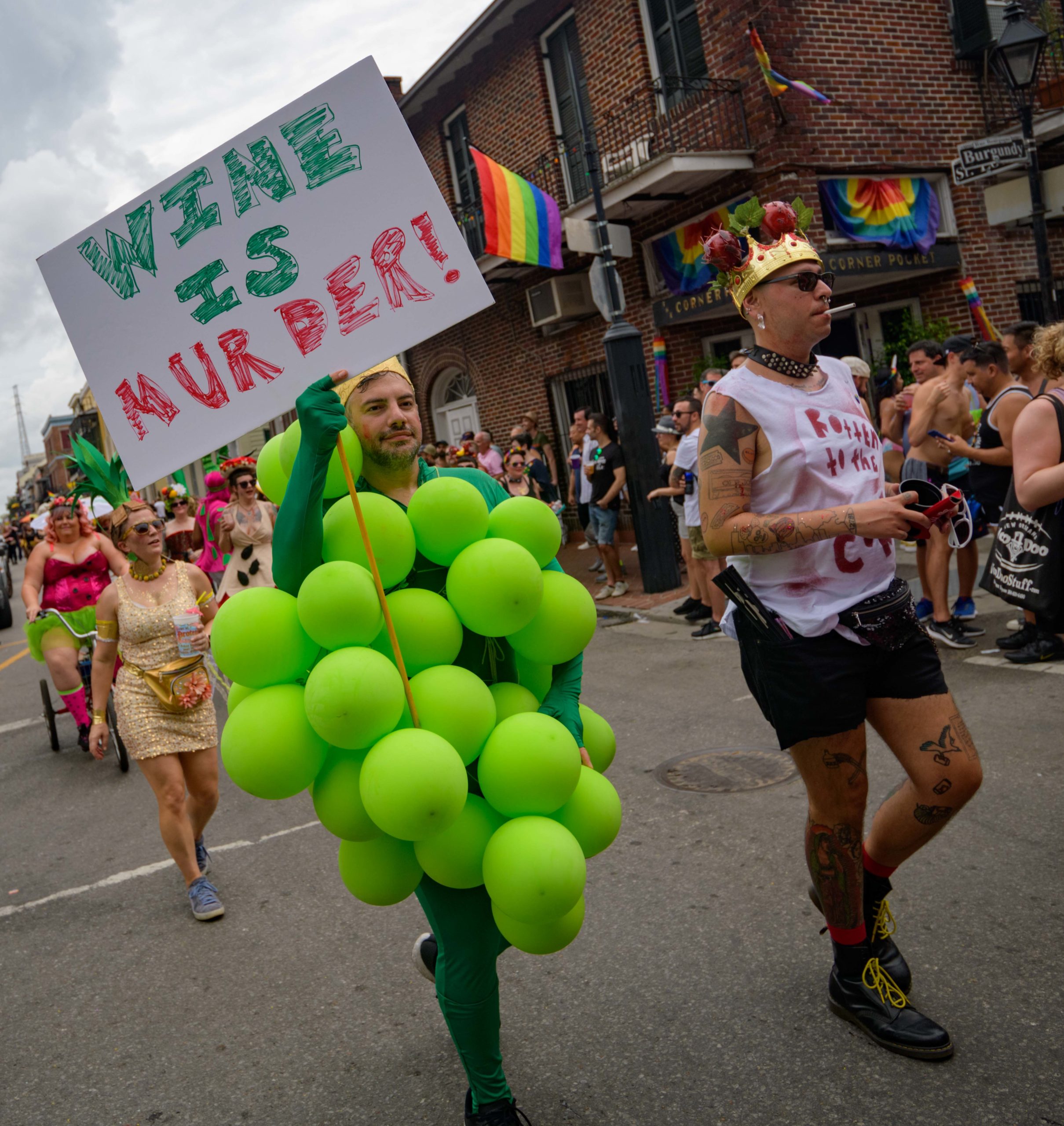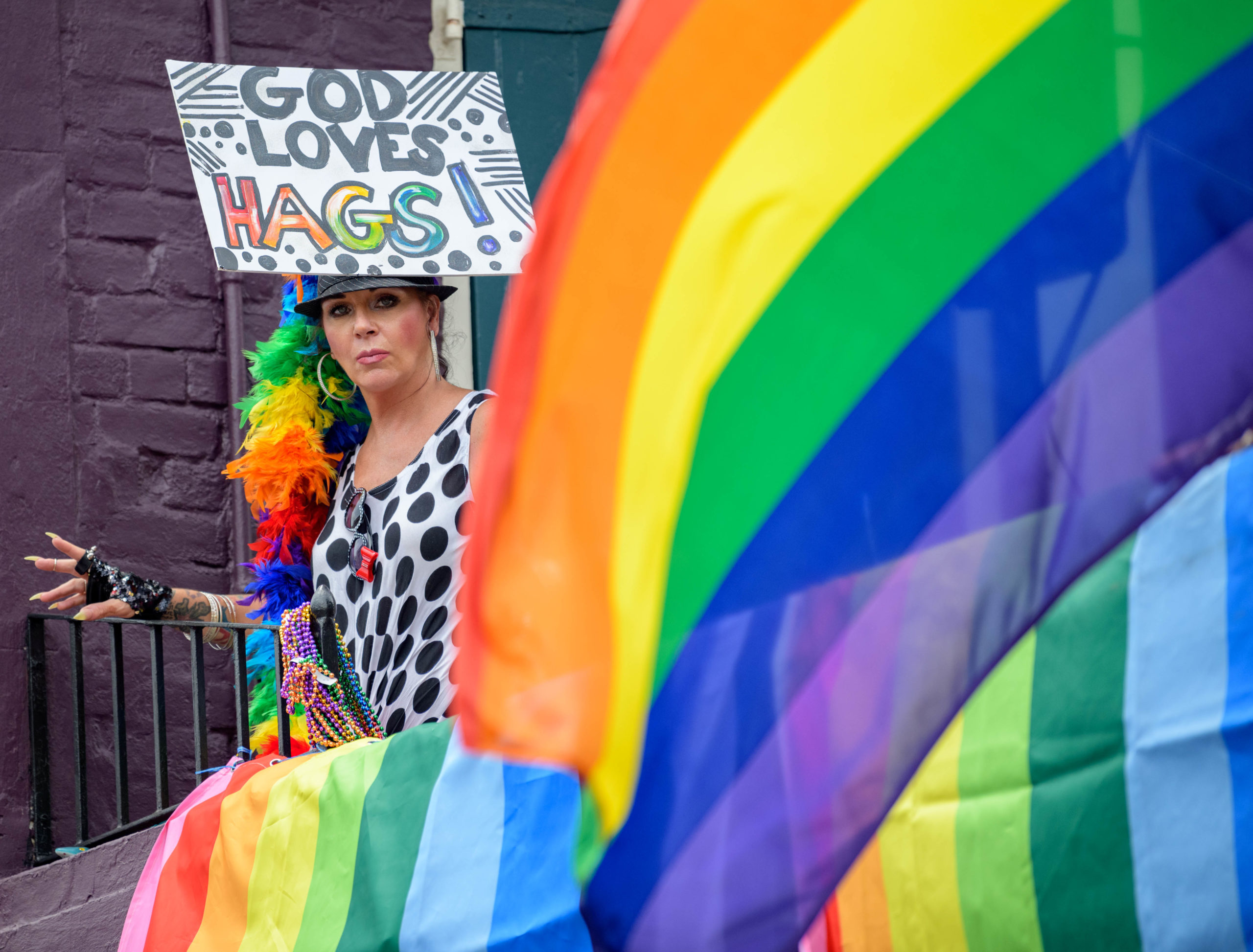 The 44th Southern Decadence Walking Parade with the 45th Grand Marshals of Southern Decadence XLV, Countess C. Alice and Will Antill, travels through the French Quarter Sunday, September 1, 2019, during the largest LGBTQ+ event in New Orleans with an estimated 250,000 visitors in 2018 over the Labor Day Weekend. The official colors of this year are polka dots and pinstripes because Grand Marshal Will Antill has color blindness. The theme this is year Fruit Salad: Come Toss A Good Time and the theme song is Push Groove by Instamatic, a mash-up of Salt N’ Pepa’s Push It vs Dee-Lite’s Groove Is In The Heart. The event is part of the 48th Decadence celebration. There was no parade the first year in 1972 when it was just a small house party in Treme, and none during Hurricane Katrina in 2005, Hurricane Gustav in 2008, and Hurricane Isaac in 2012. Photo by Matthew Hinton