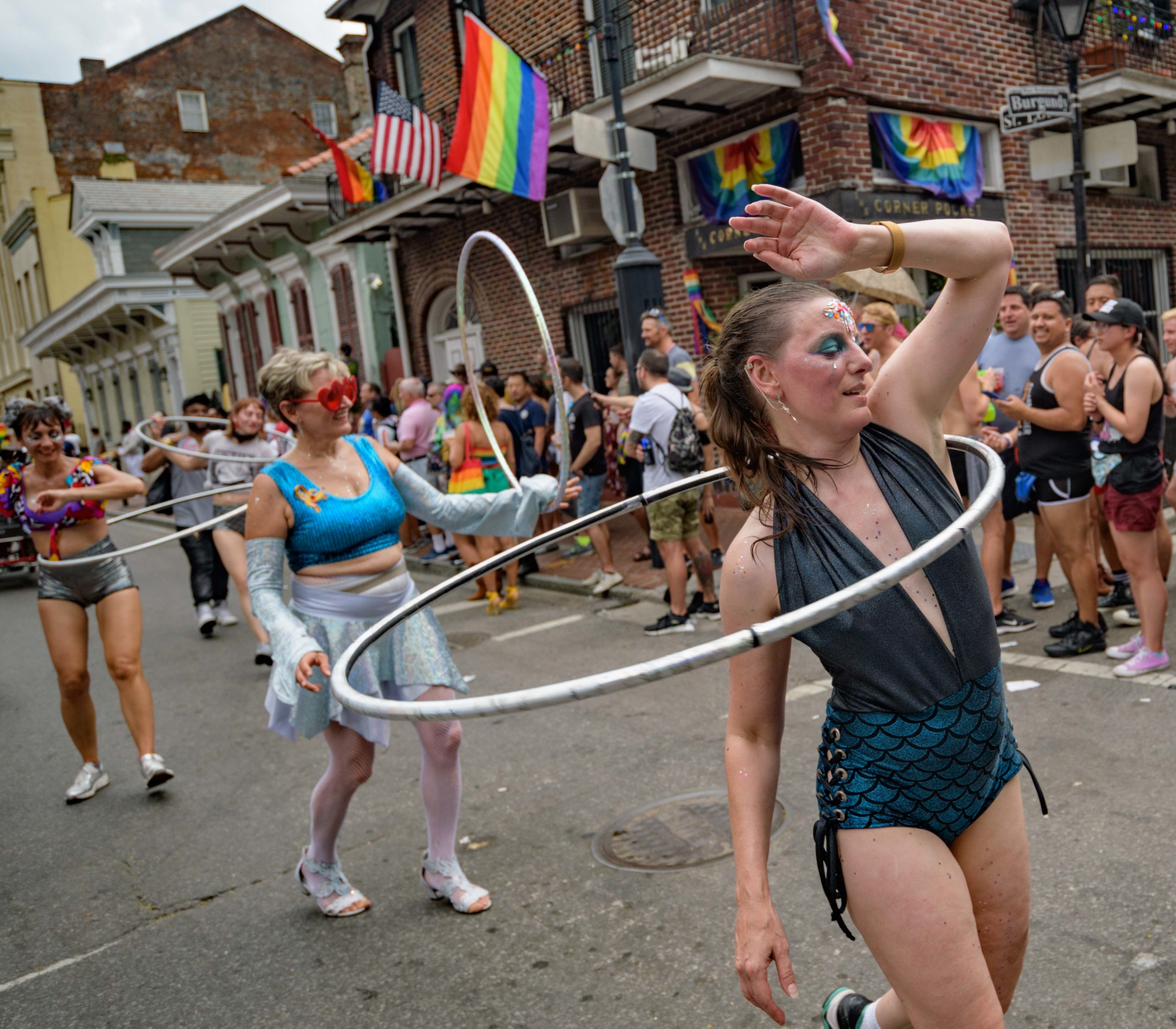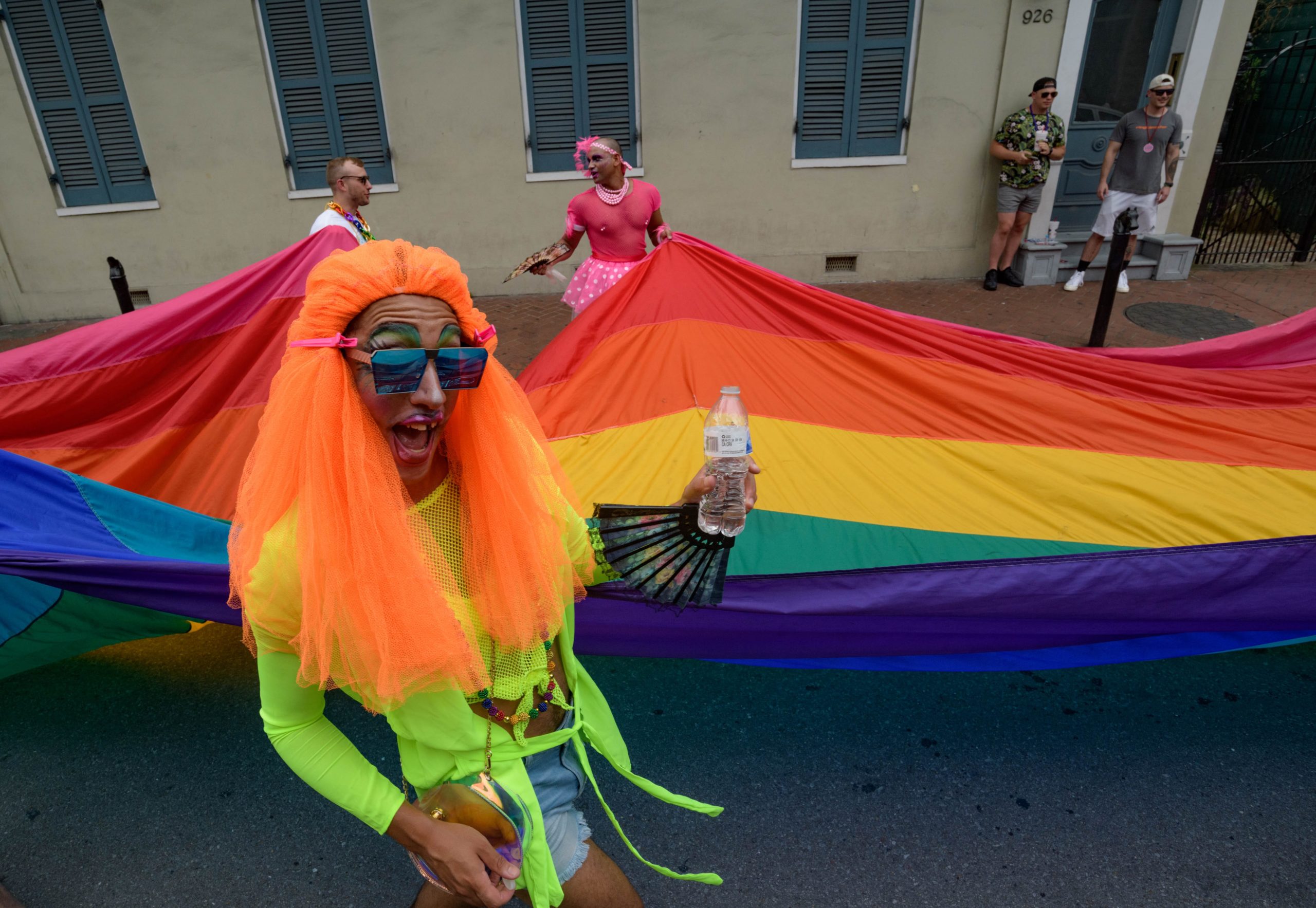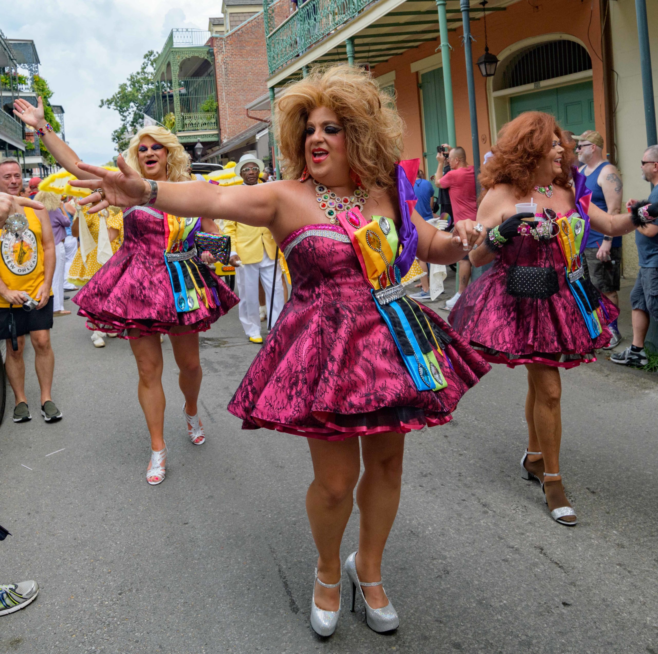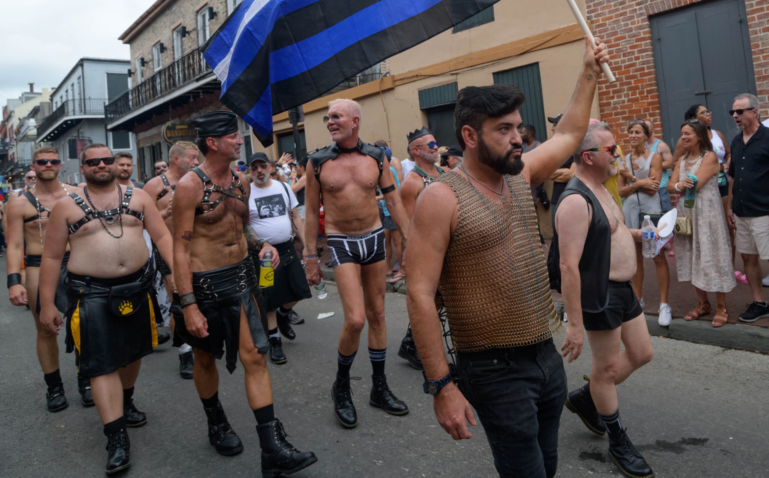 The 44th Southern Decadence Walking Parade with the 45th Grand Marshals of Southern Decadence XLV, Countess C. Alice and Will Antill, travels through the French Quarter Sunday, September 1, 2019, during the largest LGBTQ+ event in New Orleans with an estimated 250,000 visitors in 2018 over the Labor Day Weekend. The official colors of this year are polka dots and pinstripes because Grand Marshal Will Antill has color blindness. The theme this is year Fruit Salad: Come Toss A Good Time and the theme song is Push Groove by Instamatic, a mash-up of Salt N’ Pepa’s Push It vs Dee-Lite’s Groove Is In The Heart. The event is part of the 48th Decadence celebration. There was no parade the first year in 1972 when it was just a small house party in Treme, and none during Hurricane Katrina in 2005, Hurricane Gustav in 2008, and Hurricane Isaac in 2012. Photo by Matthew Hinton