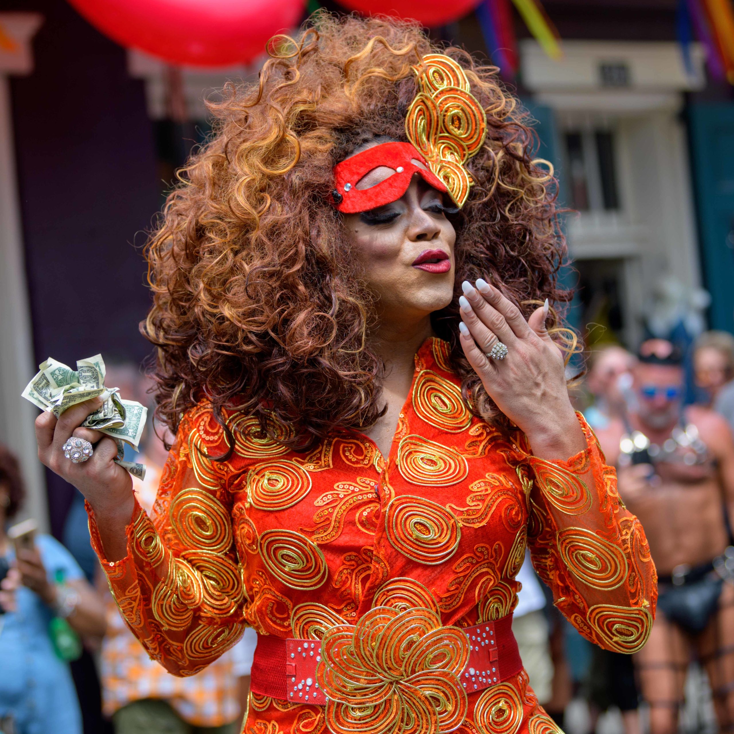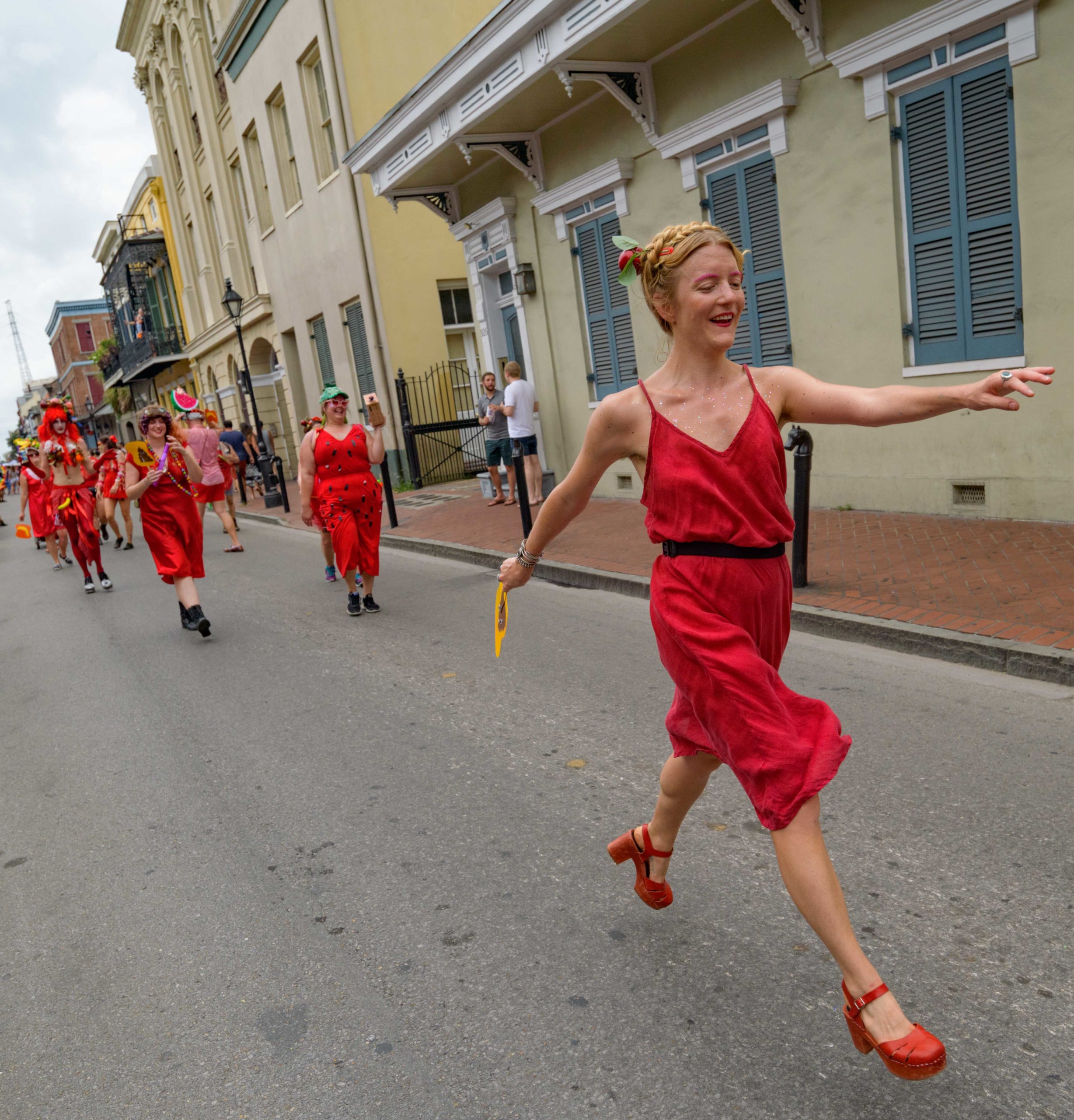 The official colors of this year are polka dots and pinstripes because Grand Marshal Will Antill has color blindness. The theme this is year ‘Fruit Salad: Come Toss A Good Time’ and the theme song is ‘Push Groove’ by Instamatic, a mash-up of Salt N’ Pepa’s ‘Push It’ vs Dee-Lite’s ‘Groove Is In The Heart.’ The event was part of the 48th Decadence celebration. There was no parade the first year in 1972 when it was just a small house party in Treme, and none during Hurricane Katrina in 2005, Hurricane Gustav in 2008, and Hurricane Isaac in 2012.