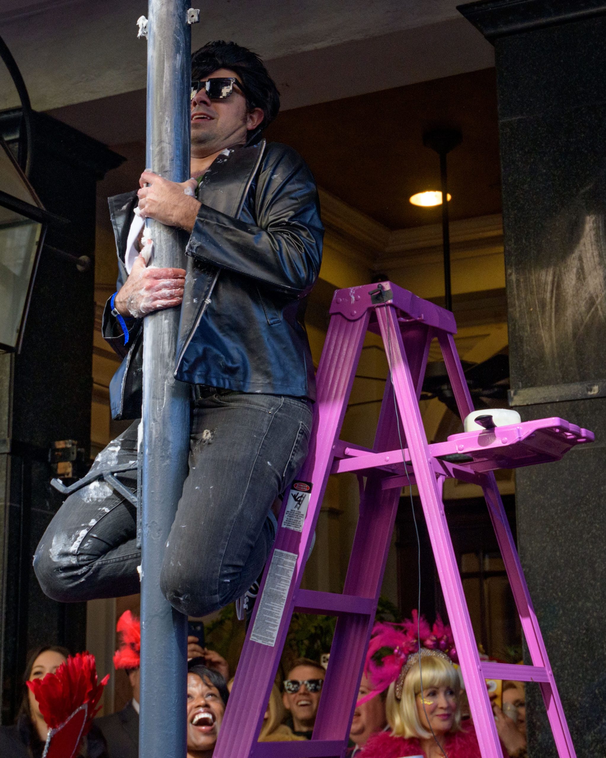 The tradition of greasing down poles in the French Quarter to keep parade-goers from shimmying up hotel balconies turns 50 this year.