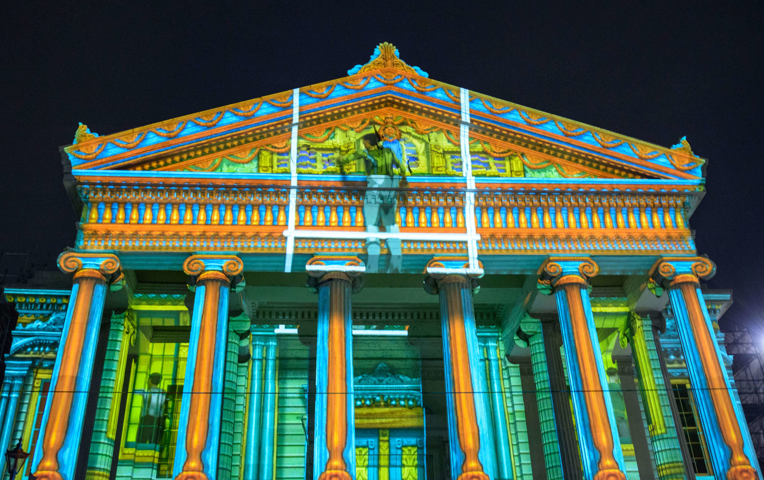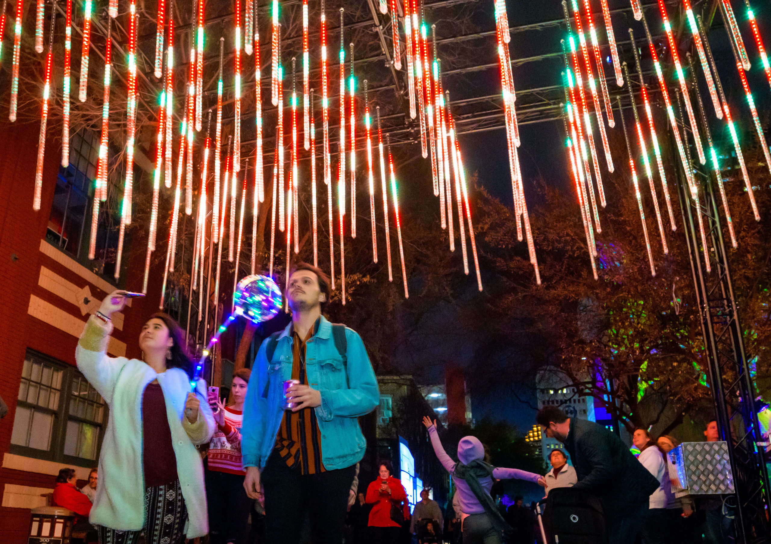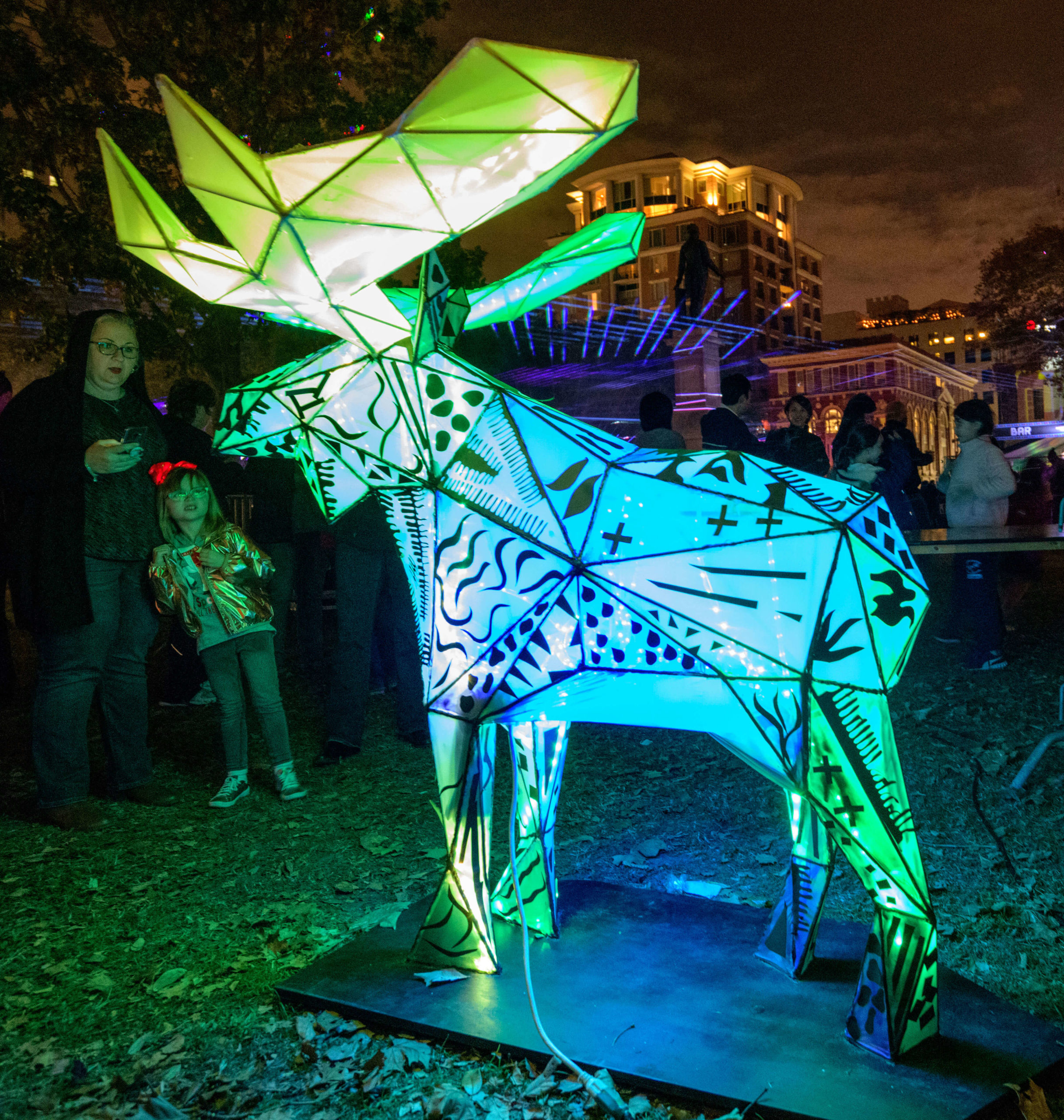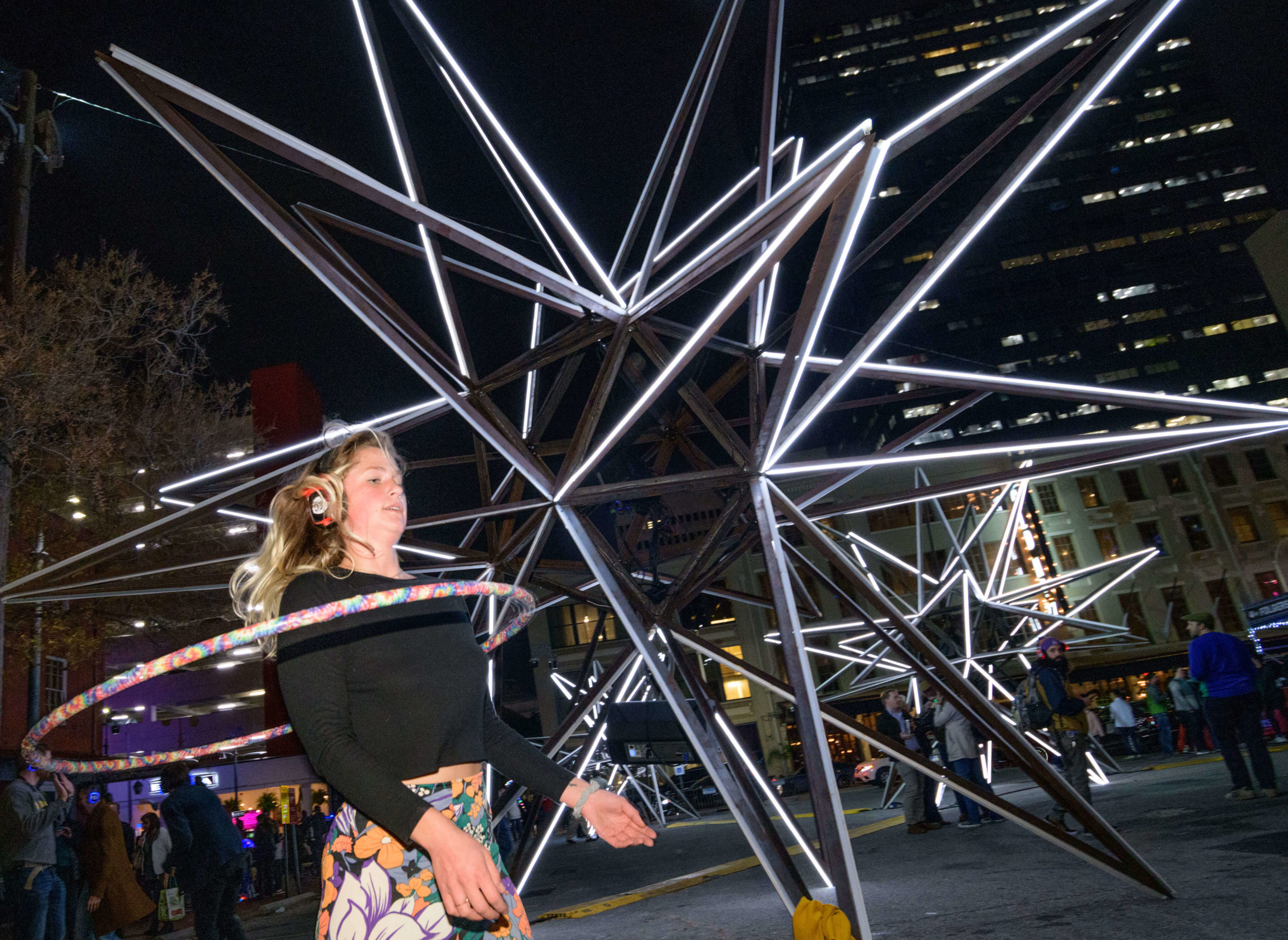 This year’s tricentennial celebration went above and beyond, with two different projections on Gallier Hall and more lights a short walk away, at the Piazza d’Italia. More than 50,000 people flock downtown to watch the Arts Council transform the familiar public space into a giant community art project since its inception five years ago.