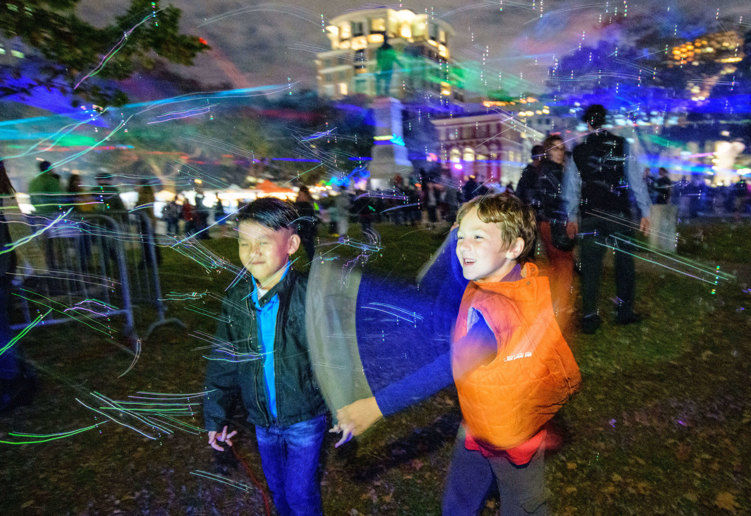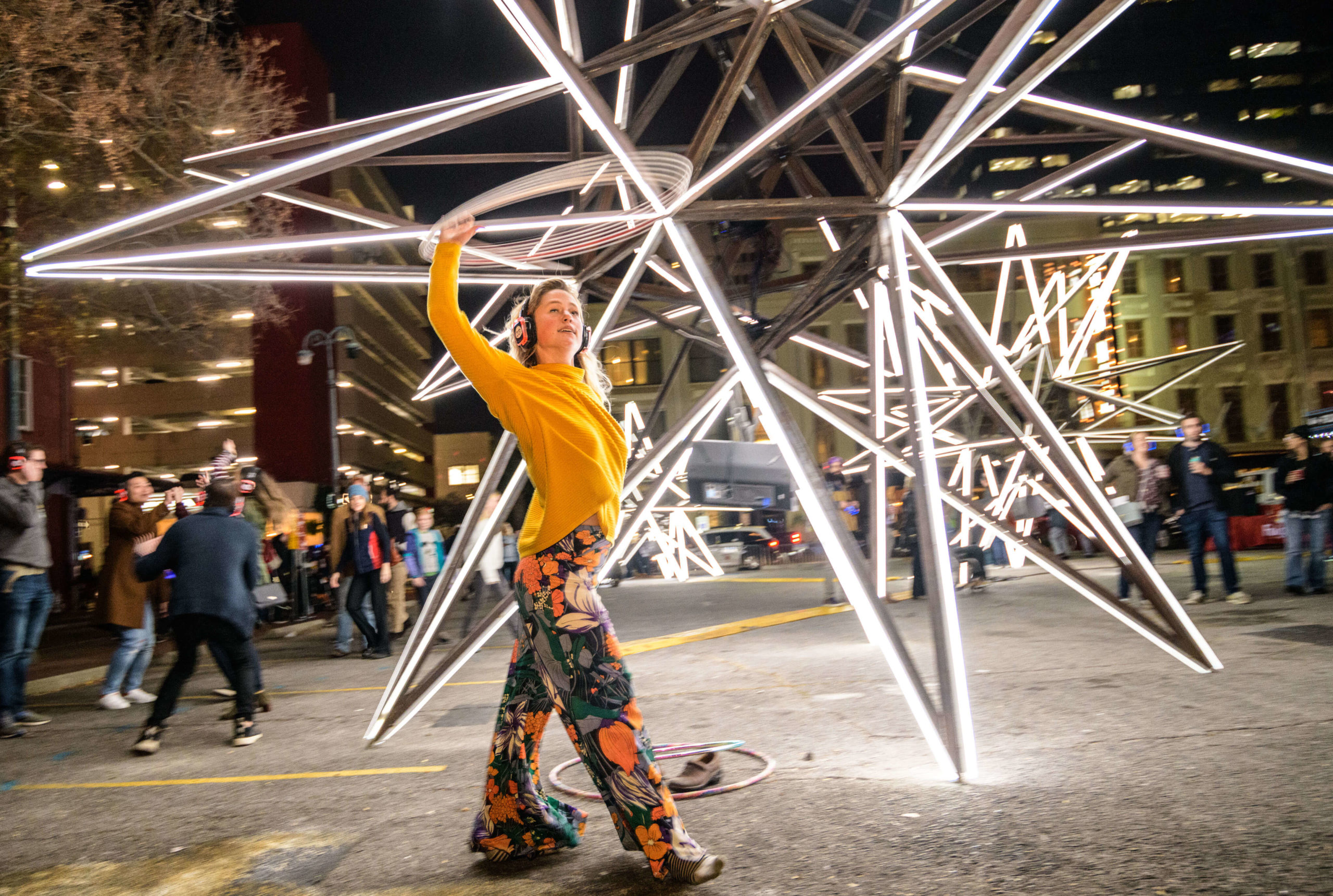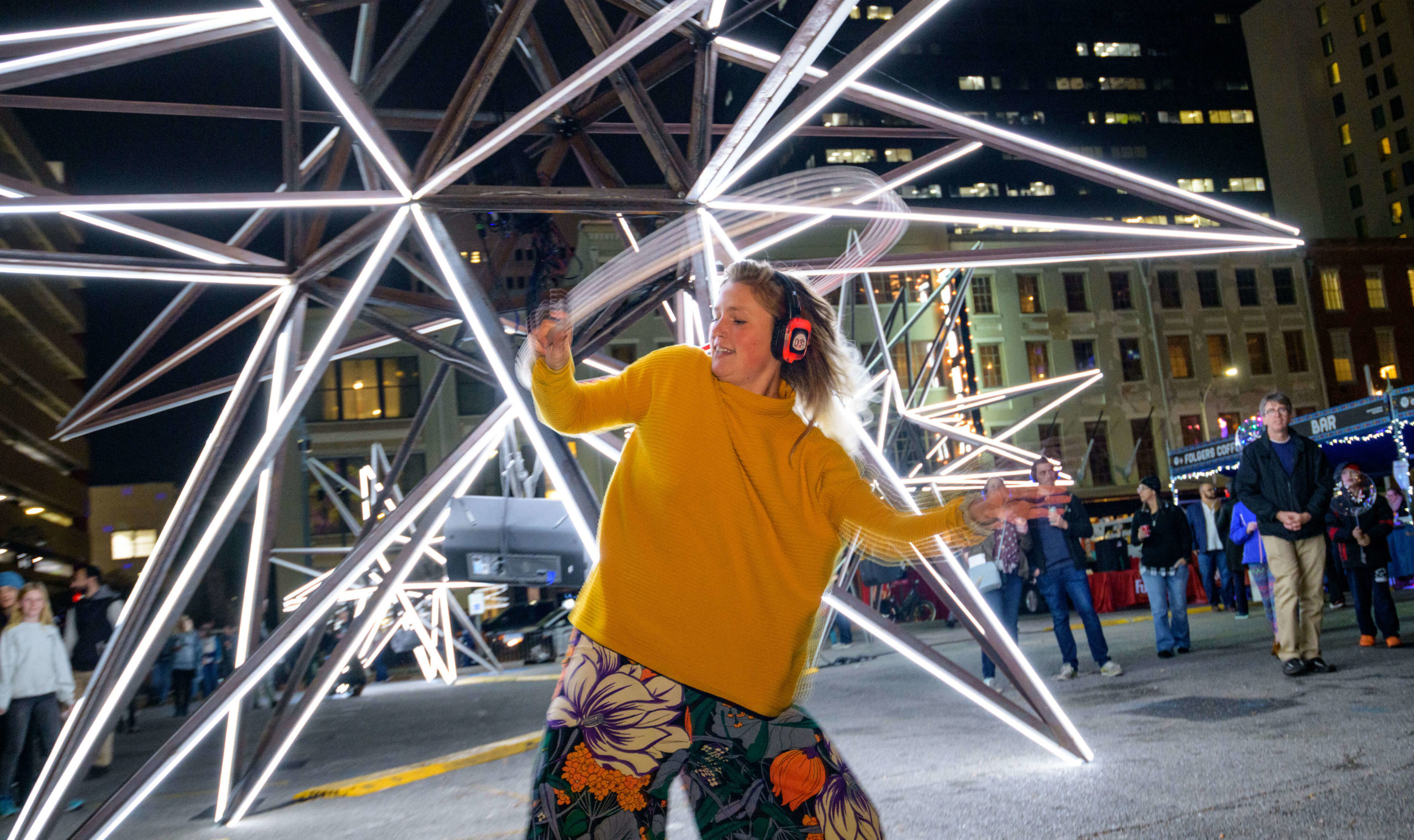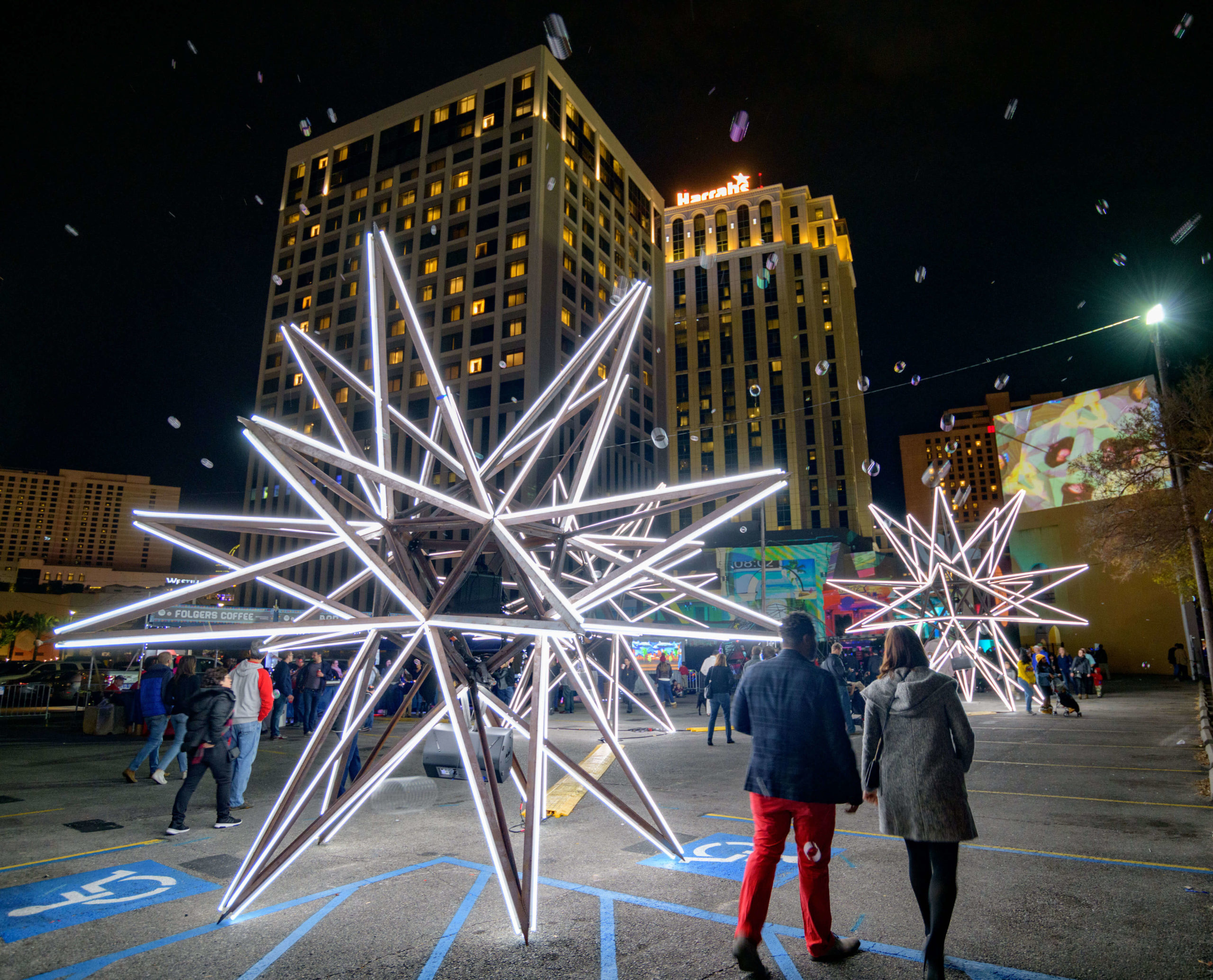 This year’s tricentennial celebration went above and beyond, with two different projections on Gallier Hall and more lights a short walk away, at the Piazza d’Italia. More than 50,000 people flock downtown to watch the Arts Council transform the familiar public space into a giant community art project since its inception five years ago.