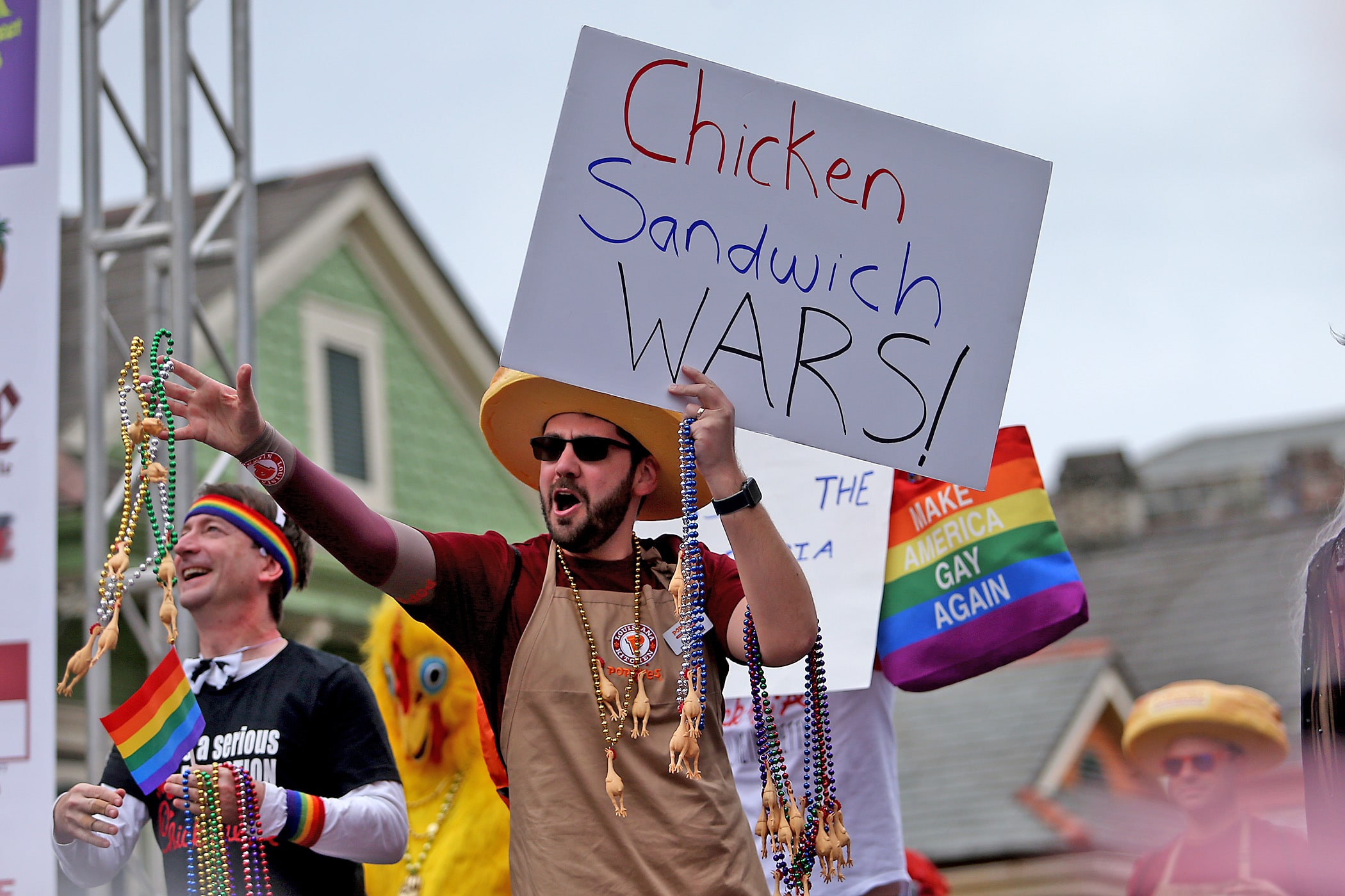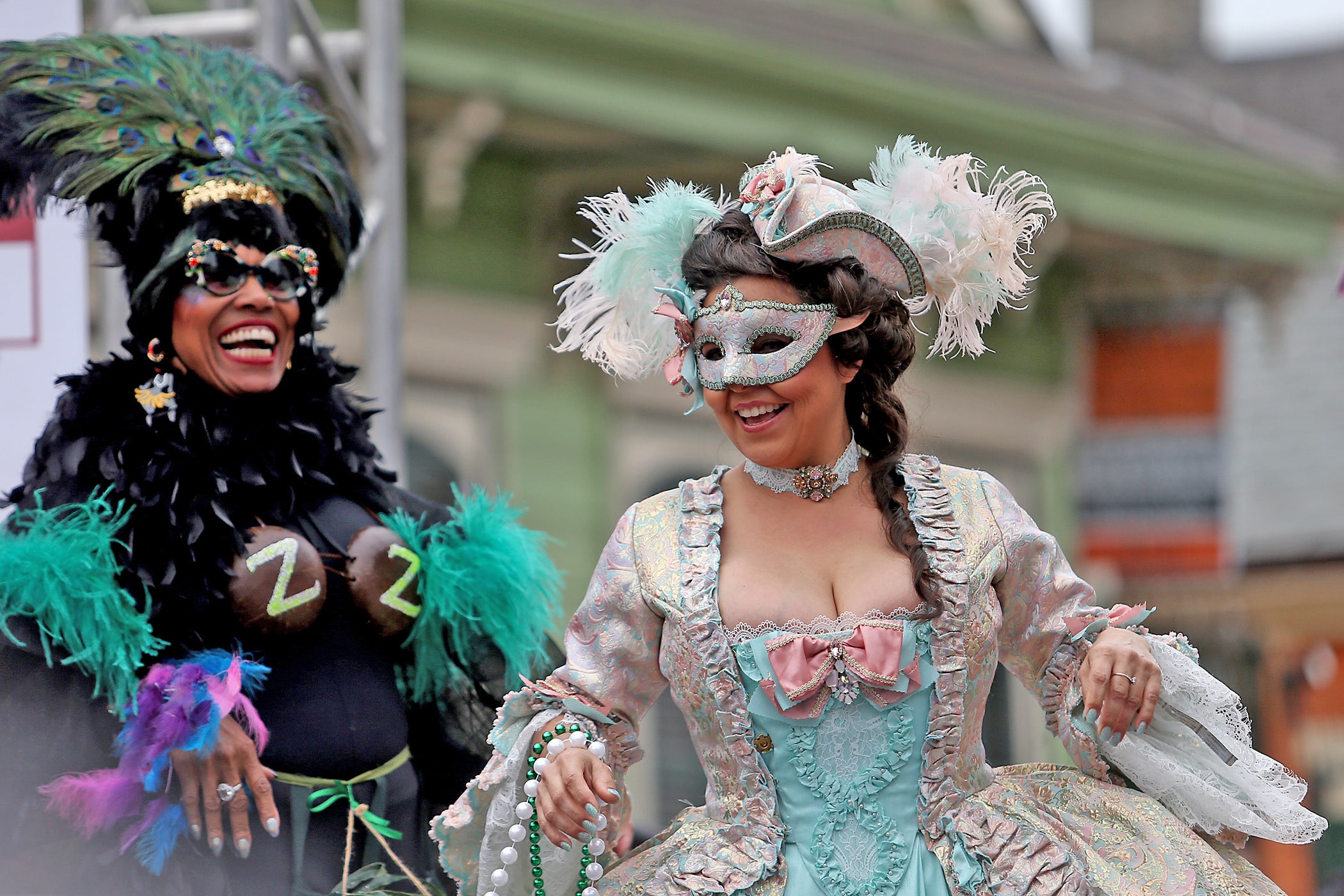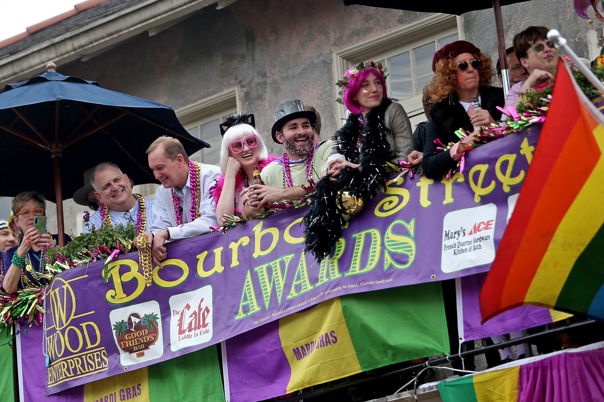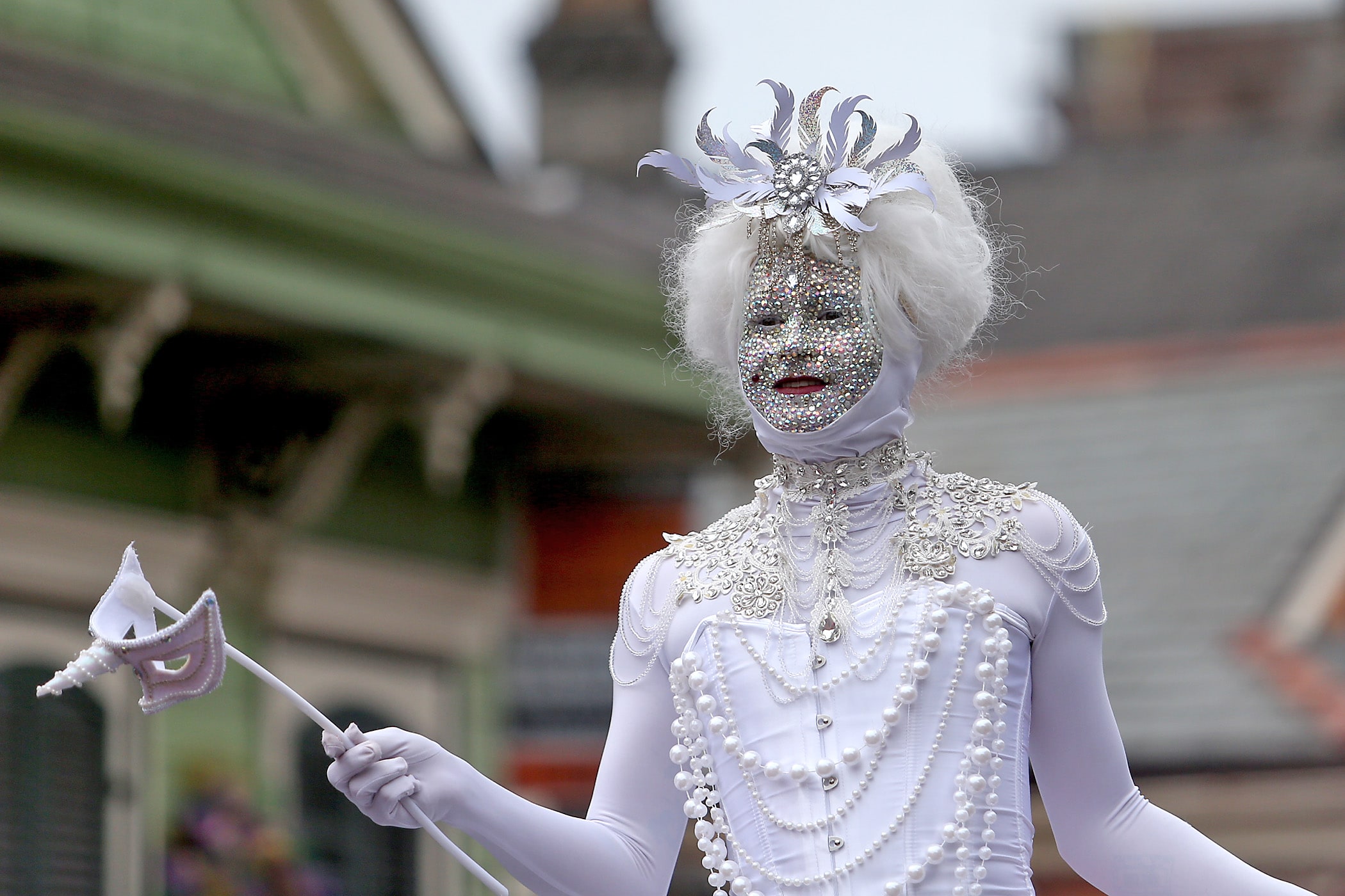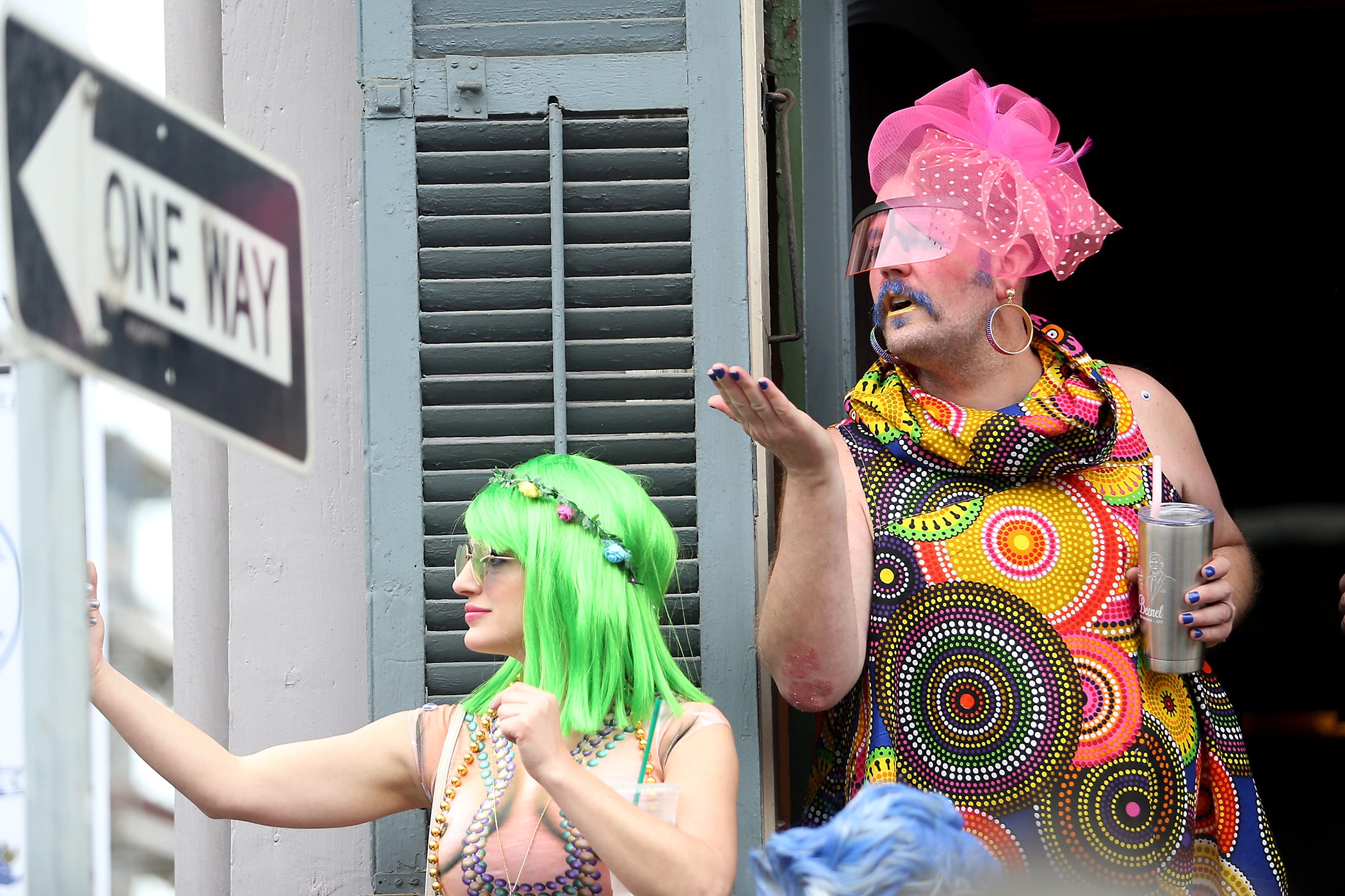 Elaborate and fabulous costumes compete for prizes in the categories of Drag, Leather, Group, Individual, and Best Overall during the 56th annual Bourbon Street Awards at Dauphine and St. Ann Streets hosted by the Good Friends Bar and the Queens Head Pub on Mardi Gras Day, 2020. (Photo by Michael DeMocker)