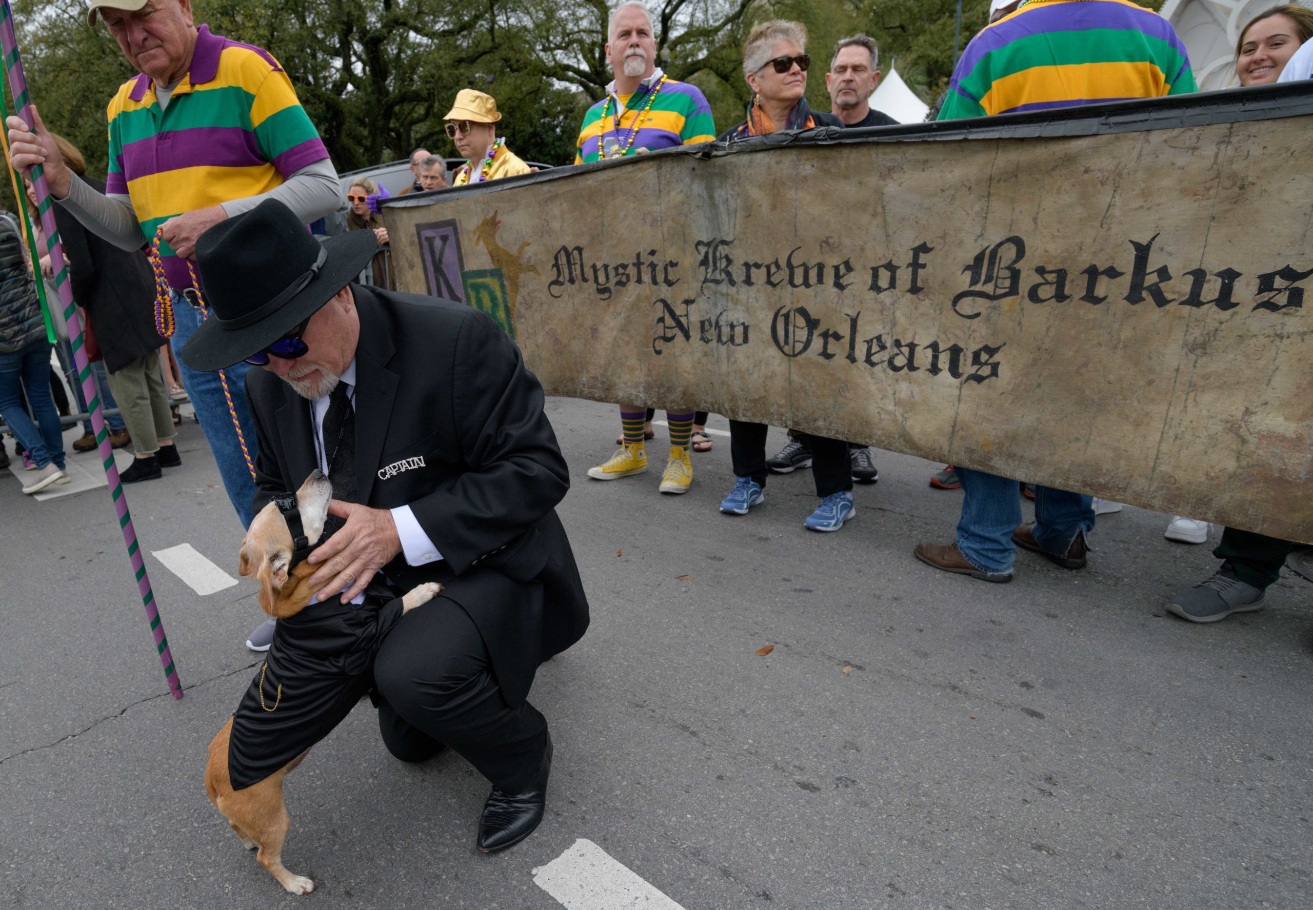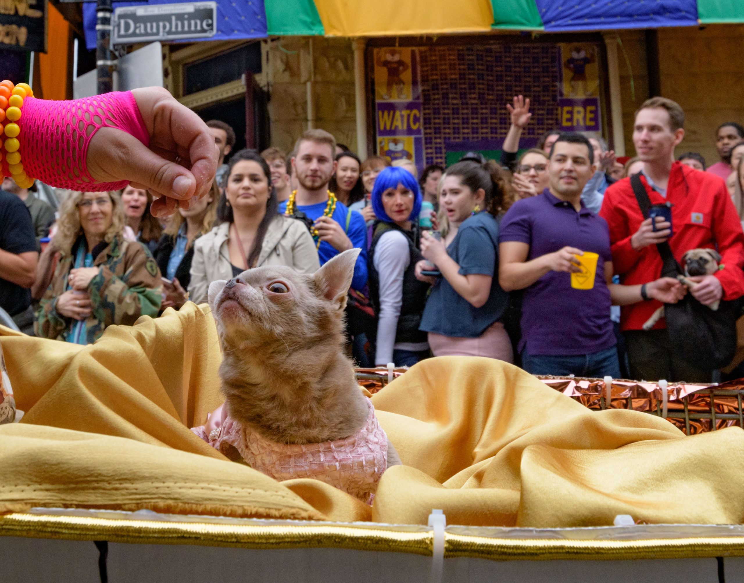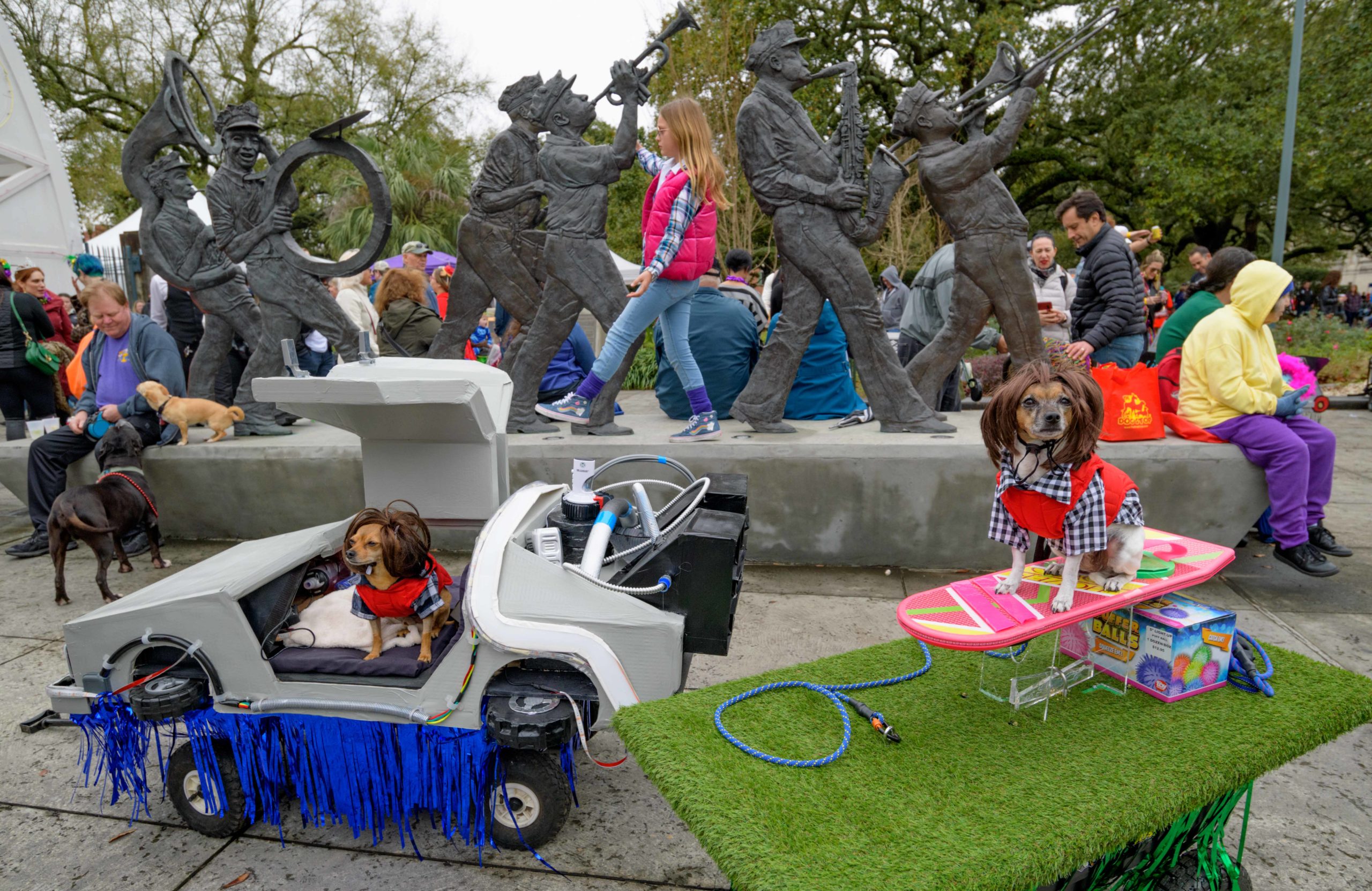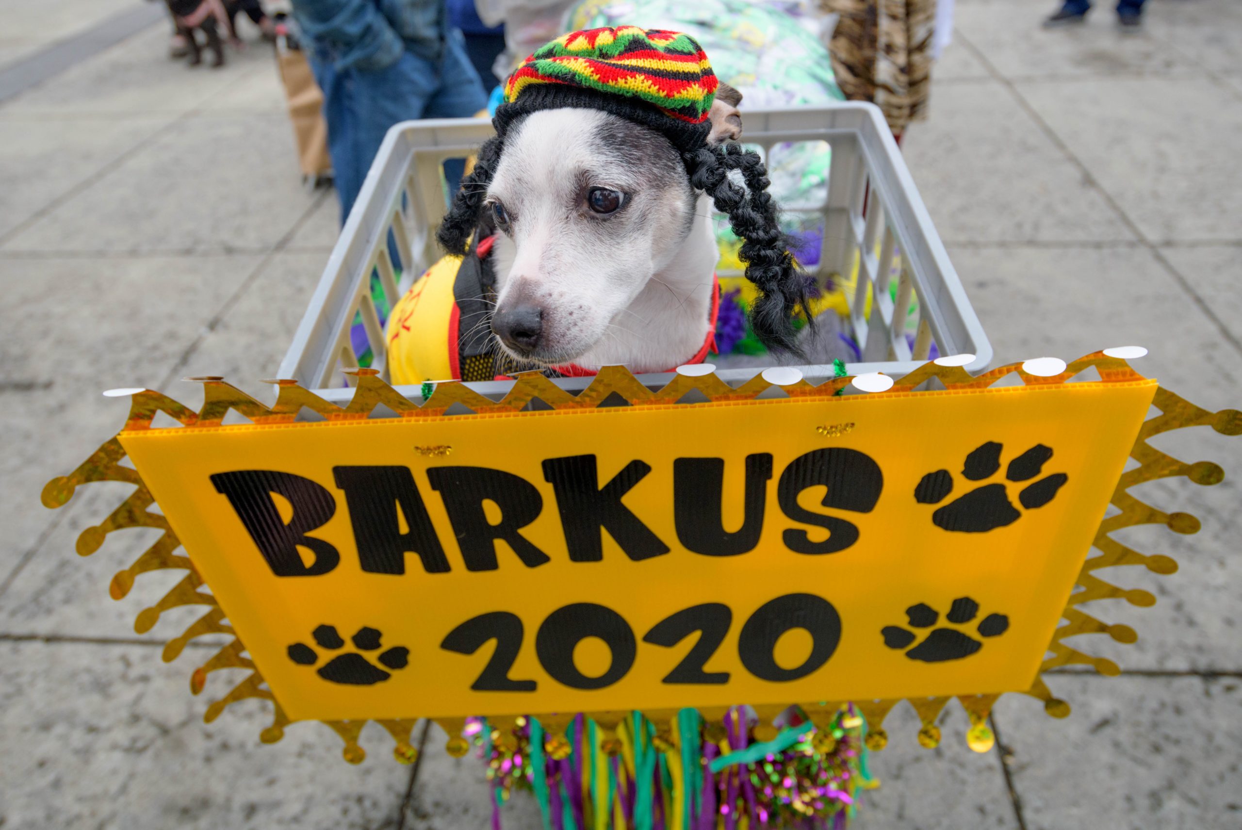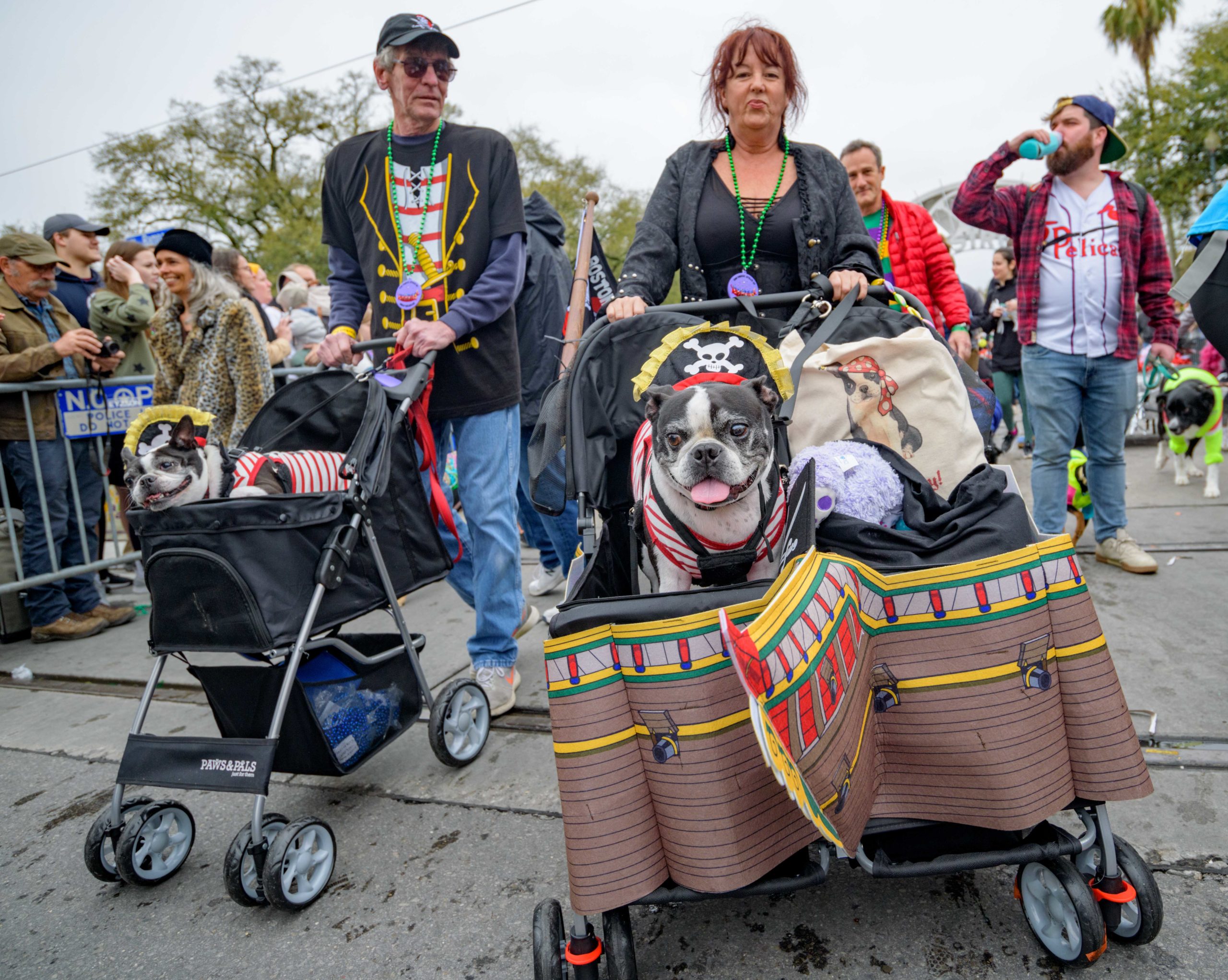The 28th annual Mystic Krewe of Barkus went “Bark to the Future” with an 1980s themed walking parade from Louis Armstrong Park to the French Quarter in New Orleans Sunday, February 16, 2020. Barkus was created in 1992 at a meeting of the Margaret Orr (WDSU-TV Weather Anchor) Fan Club held at Good Friends Bar. Photo by Matthew Hinton