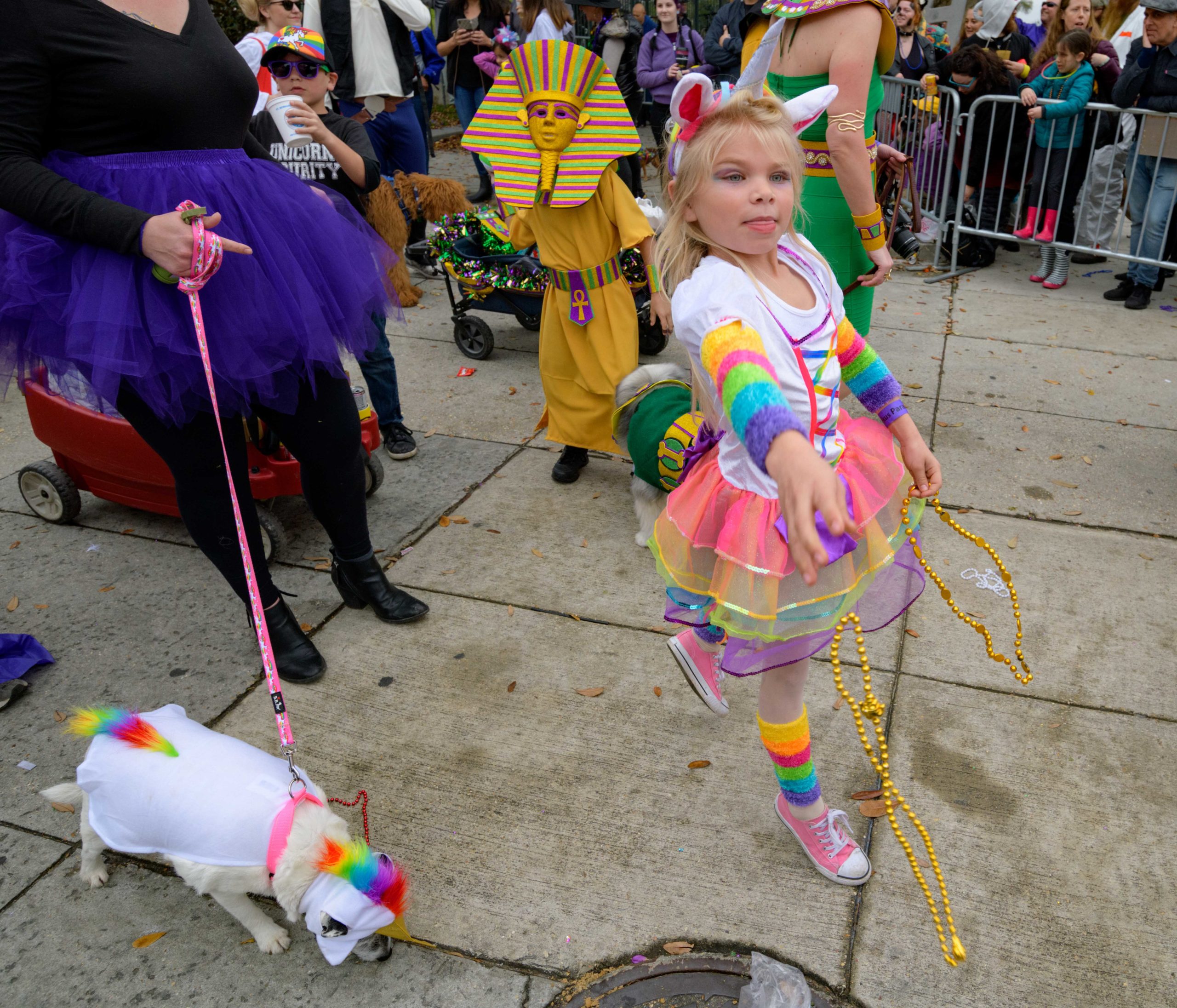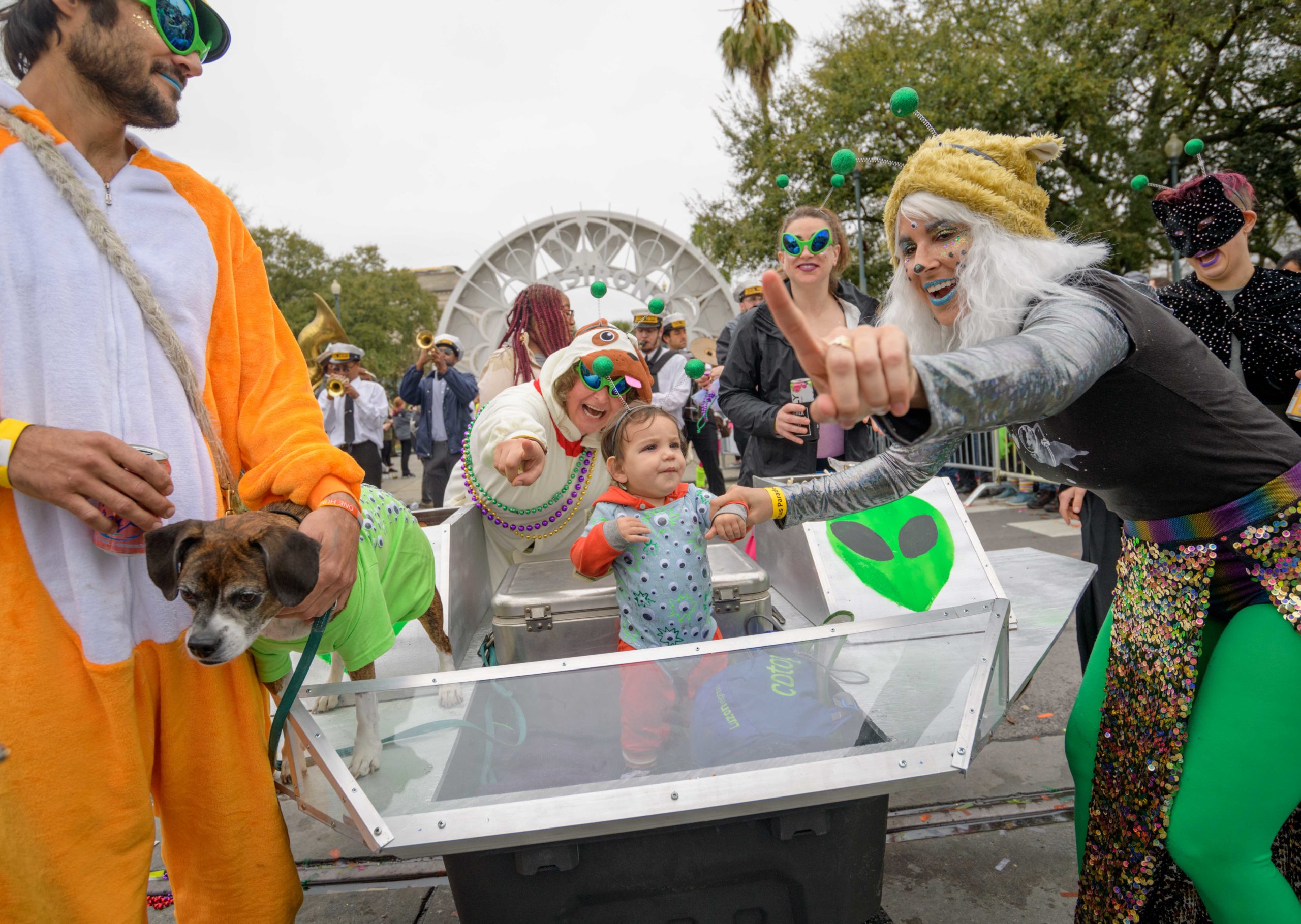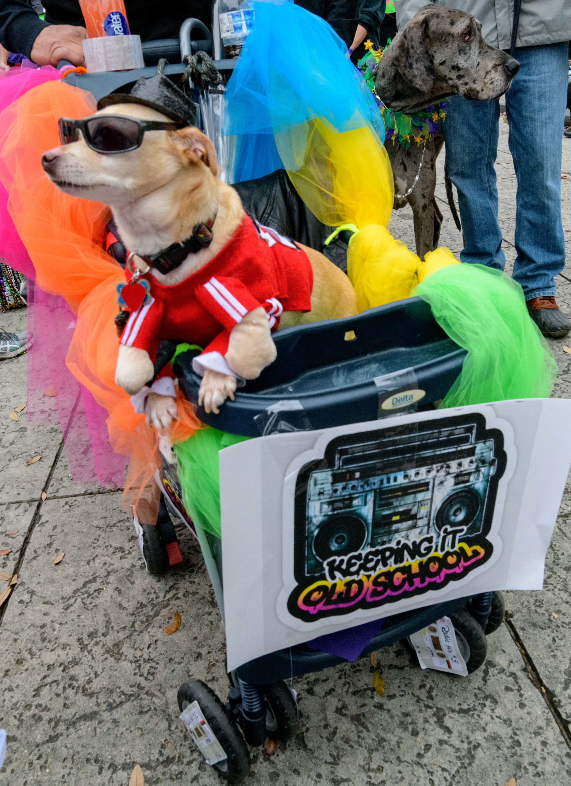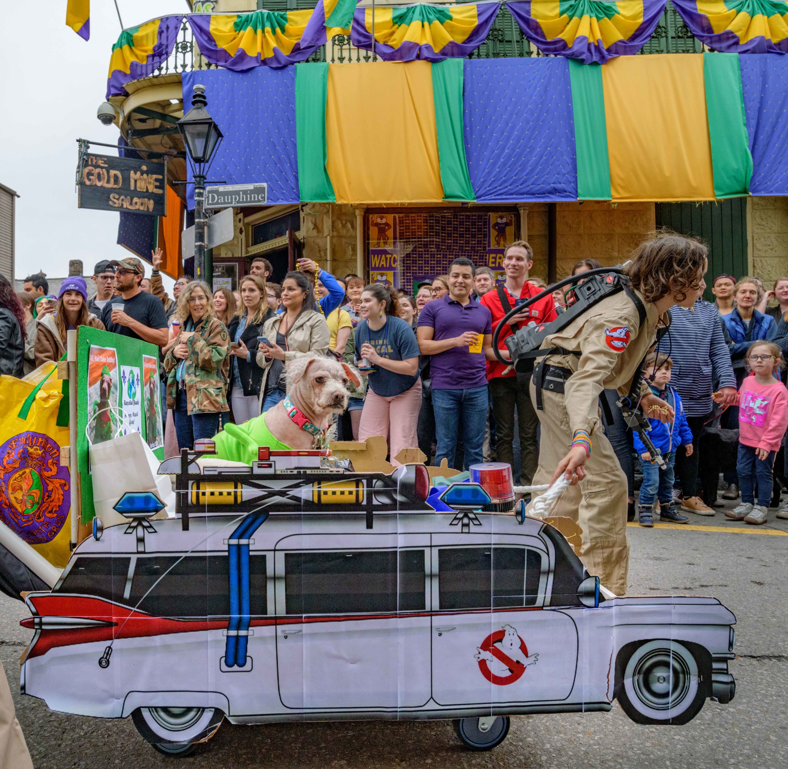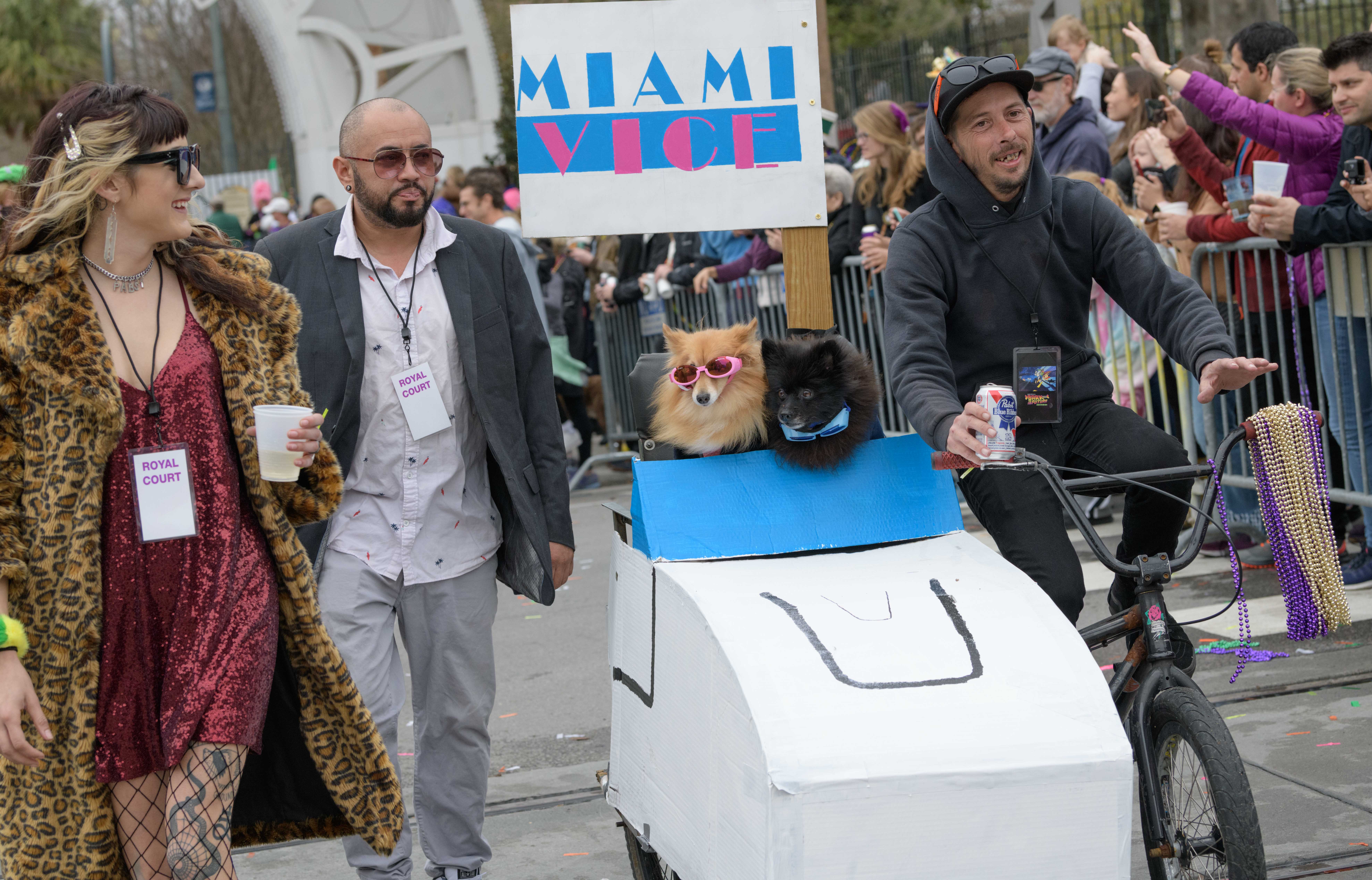 The 28th annual Mystic Krewe of Barkus went “Bark to the Future: Barkus returns to the 80s” with an 1980s themed walking parade from Louis Armstrong Park to the French Quarter in New Orleans Sunday, February 16, 2020. Barkus was created in 1992 at a meeting of the Margaret Orr (WDSU-TV Weather Anchor) Fan Club held at Good Friends Bar.