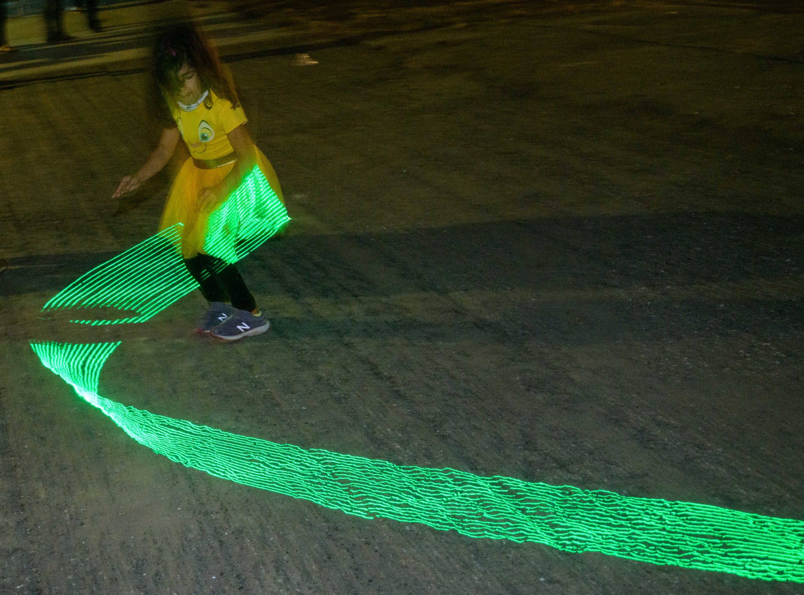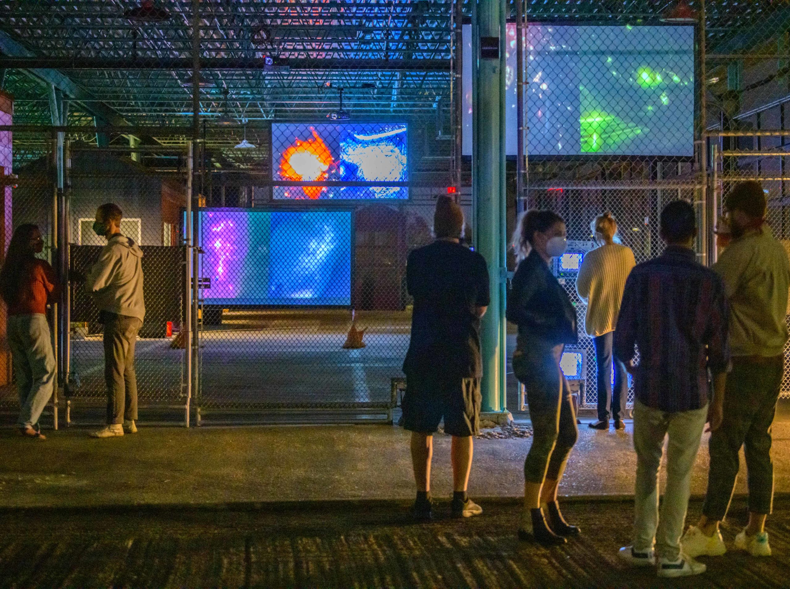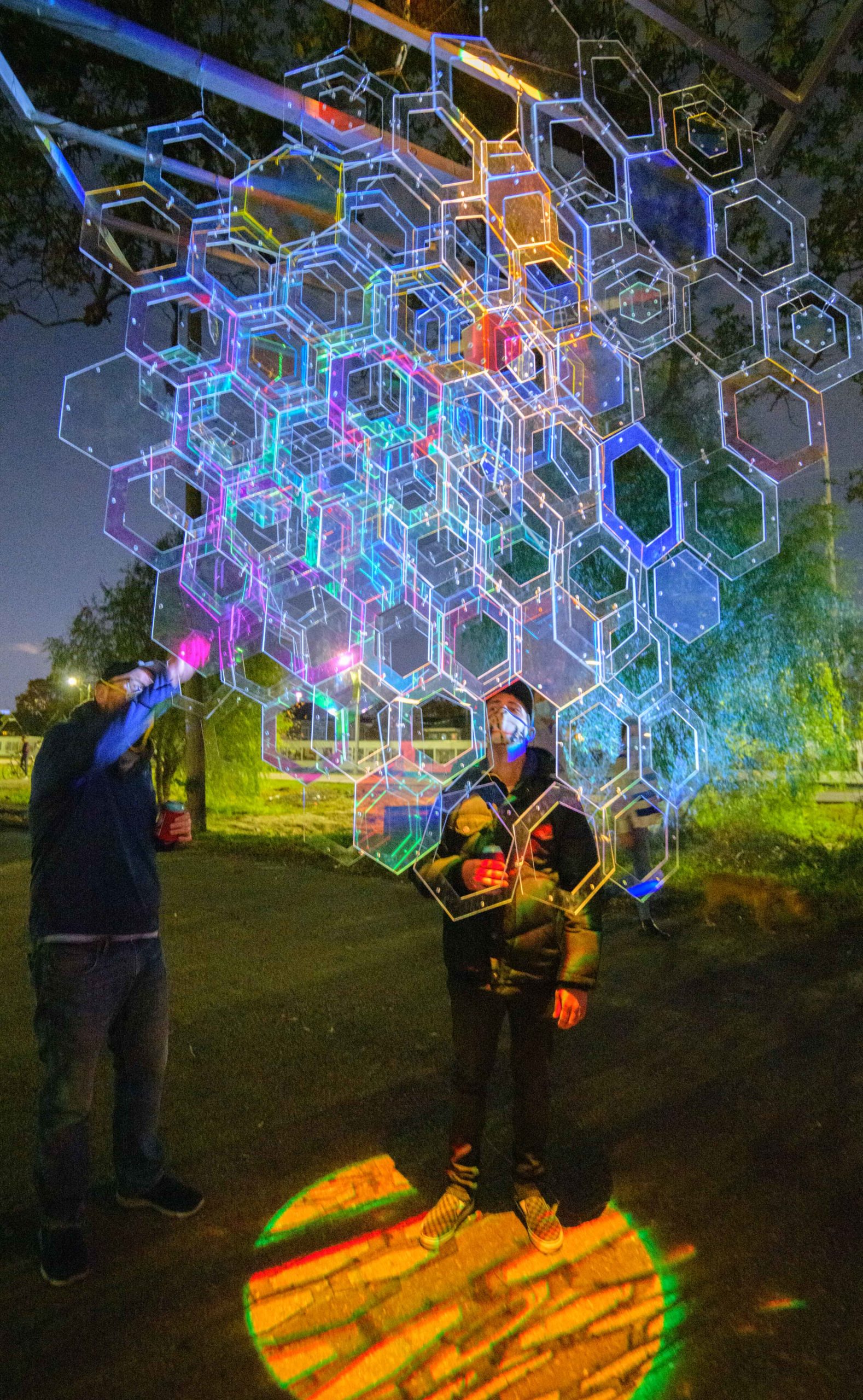 the Alveare Luminoso (Glowing Hive) by Luba Zygarewicz that is a series of honeycombed shape panels that make interesting colors in the darkness. Photos by Matthew Hinton