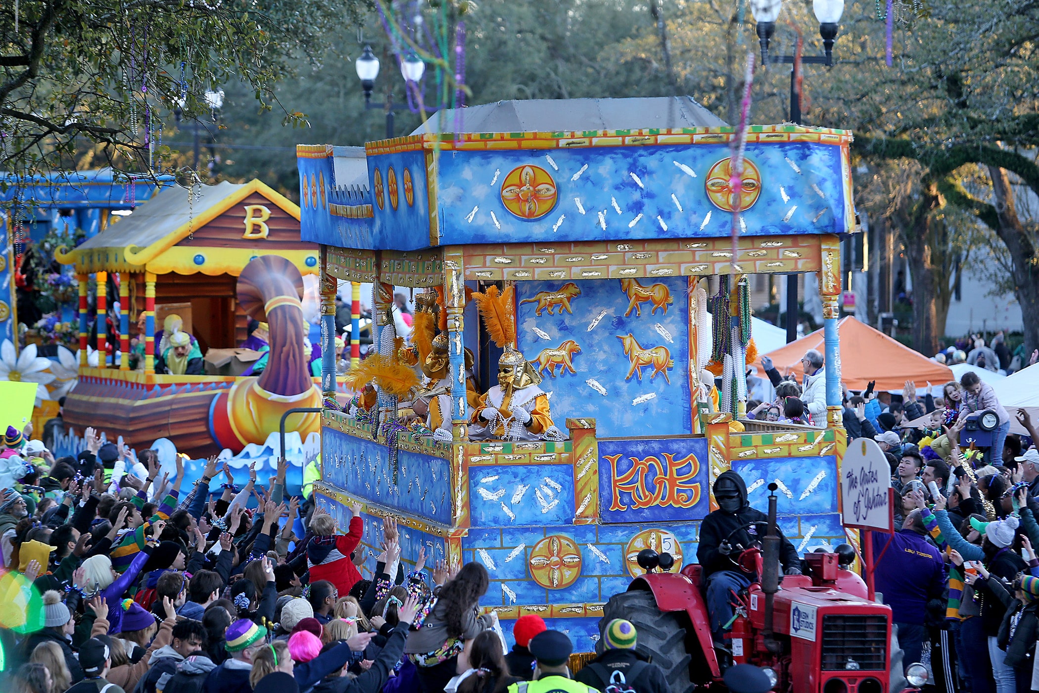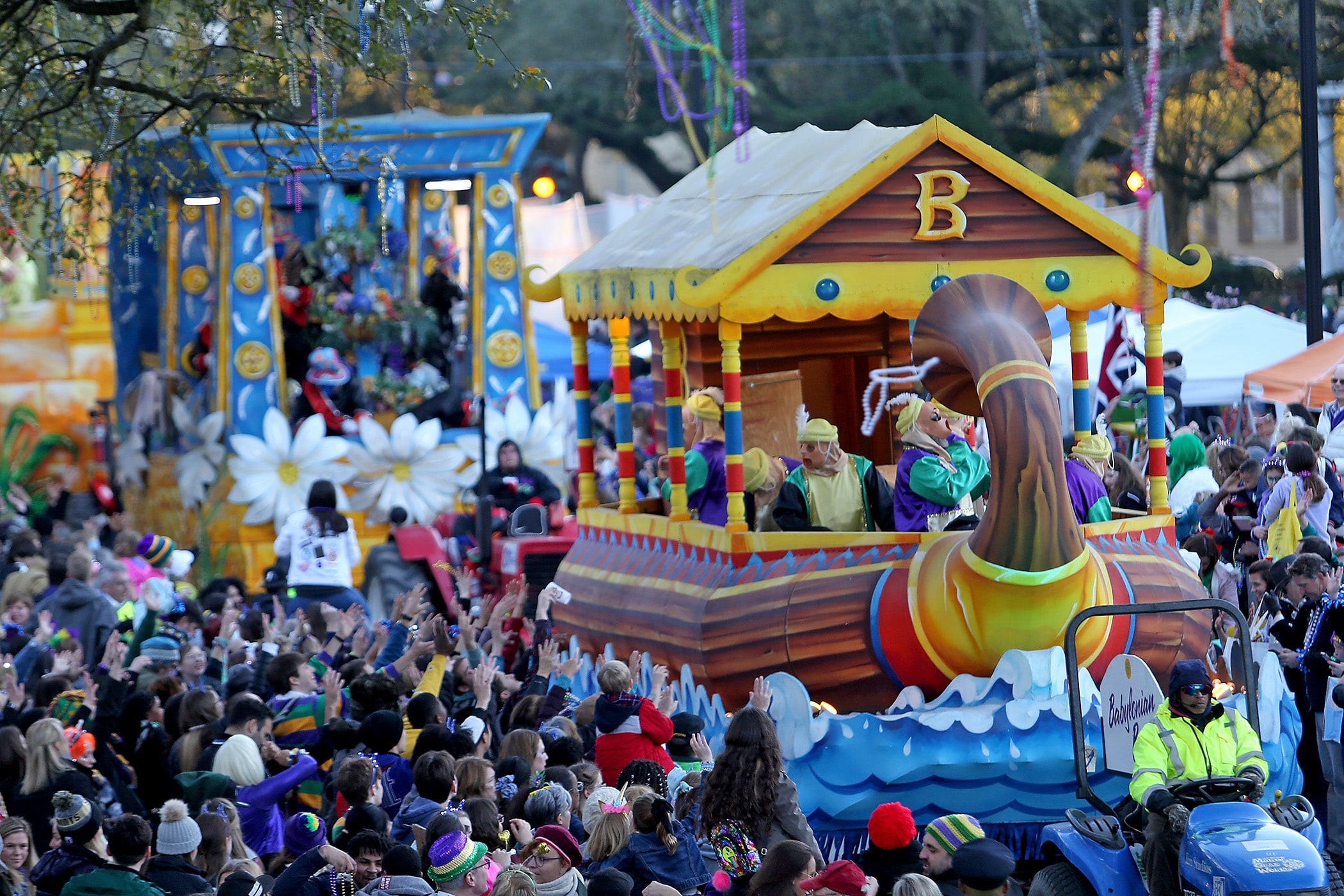 The 300-plus members of the Knights of Babylon roll down the Uptown parade route with a 27-float parade as they celebrate their 81st anniversary on Friday, February 21, 2020. (Photo by Michael DeMocker)