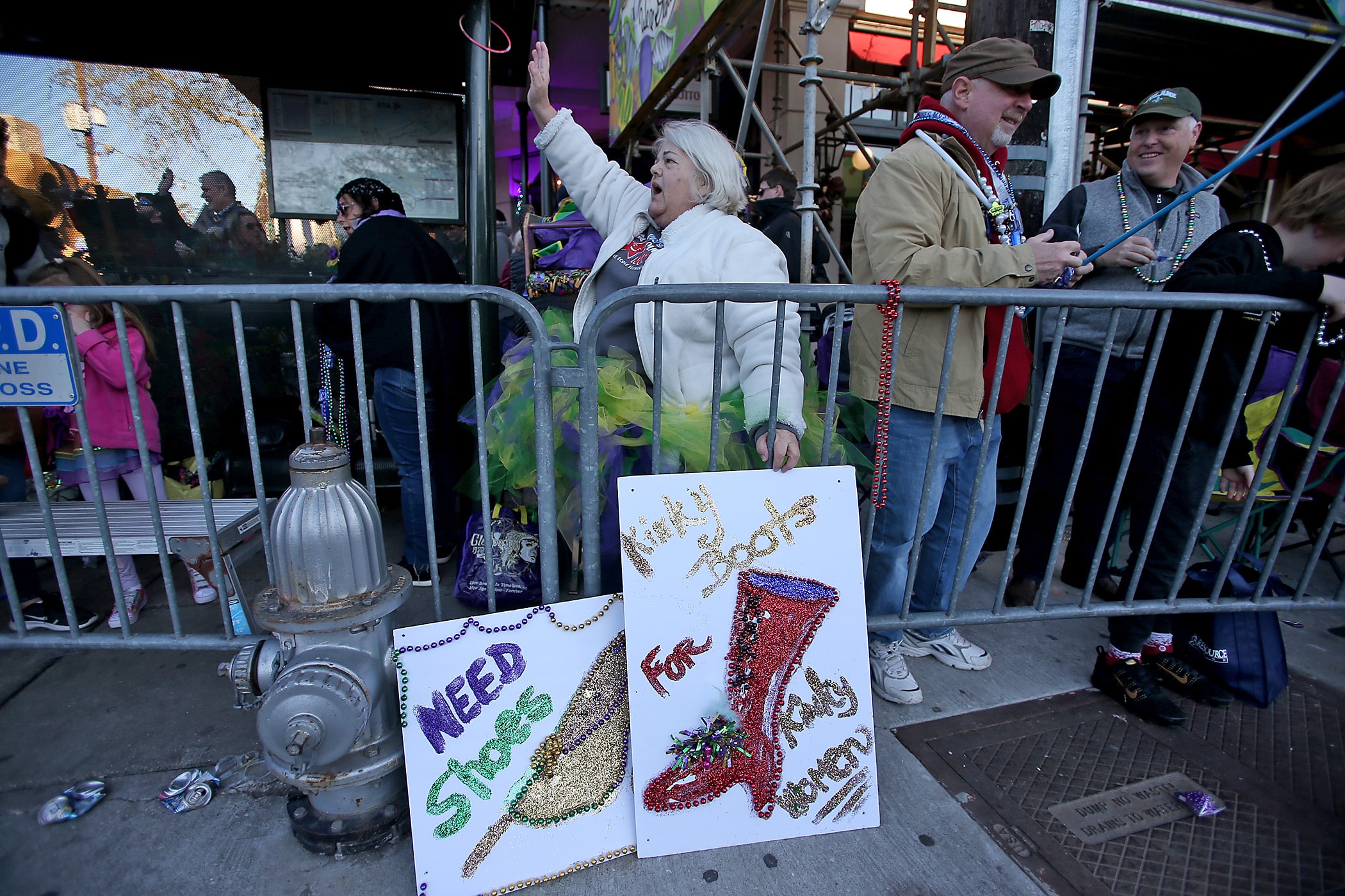 Shoes are requested as the over 1100 women of the Krewe of Muses roll down the Uptown parade route with a 26-float parade with the theme “Nostradamuse Sees All” as they celebrate their 20th anniversary on Friday, February 21, 2020. (Photo by Michael DeMocker)