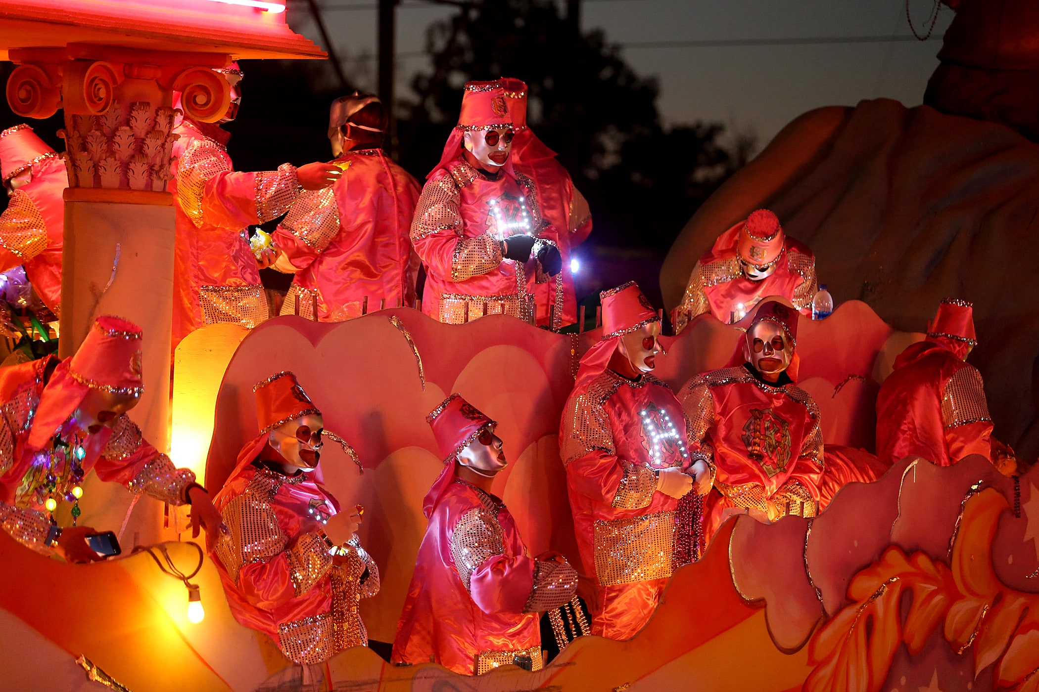 Over 800 members of Hermes rolls down the Uptown parade route with a 32-float parade entitled “Carnival at the French Opera House” on Friday, February 21, 2020. (Photo by Michael DeMocker)