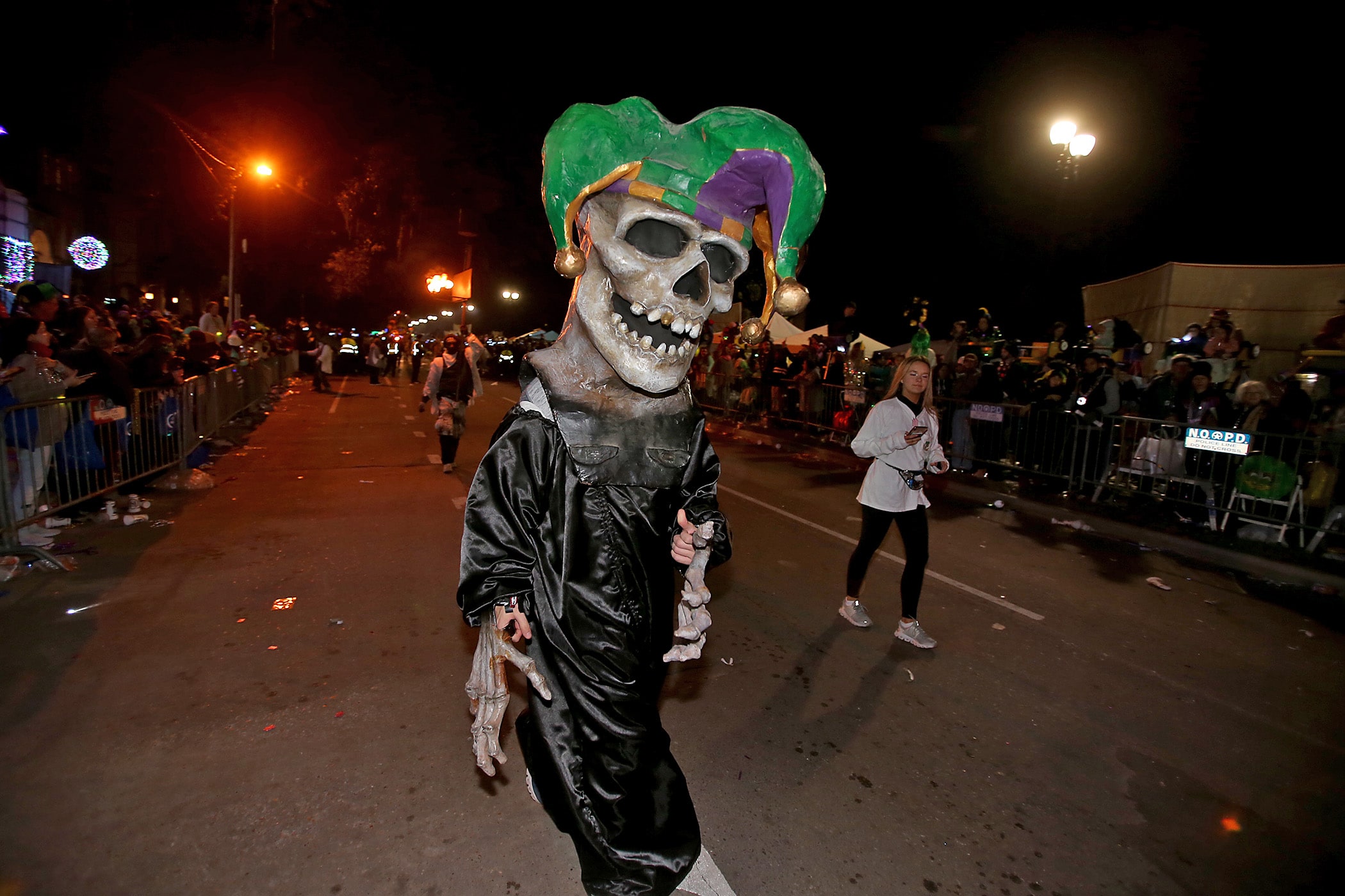 A partier is pooped after a long night as the 800 members of the Krewe of Morpheus roll down the Uptown parade route with a 24-float parade entitled “Morpheus Dreams of Aquatic Adventures” as they celebrate their 20th year on Friday, February 21, 2020. (Photo by Michael DeMocker)