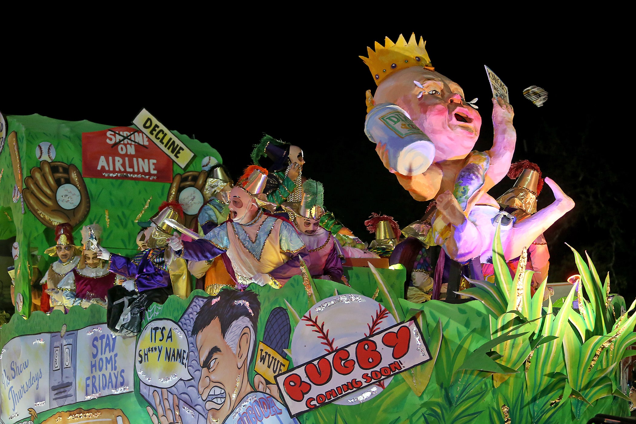 Krewe d’Etat took aim at local and national satire this year. The theme was “The Dic Goes to Mardi Gras.” This krewe is led by a Dictator instead of a king. From headlines here at home to across the country, the Krewe targeted it all this year.