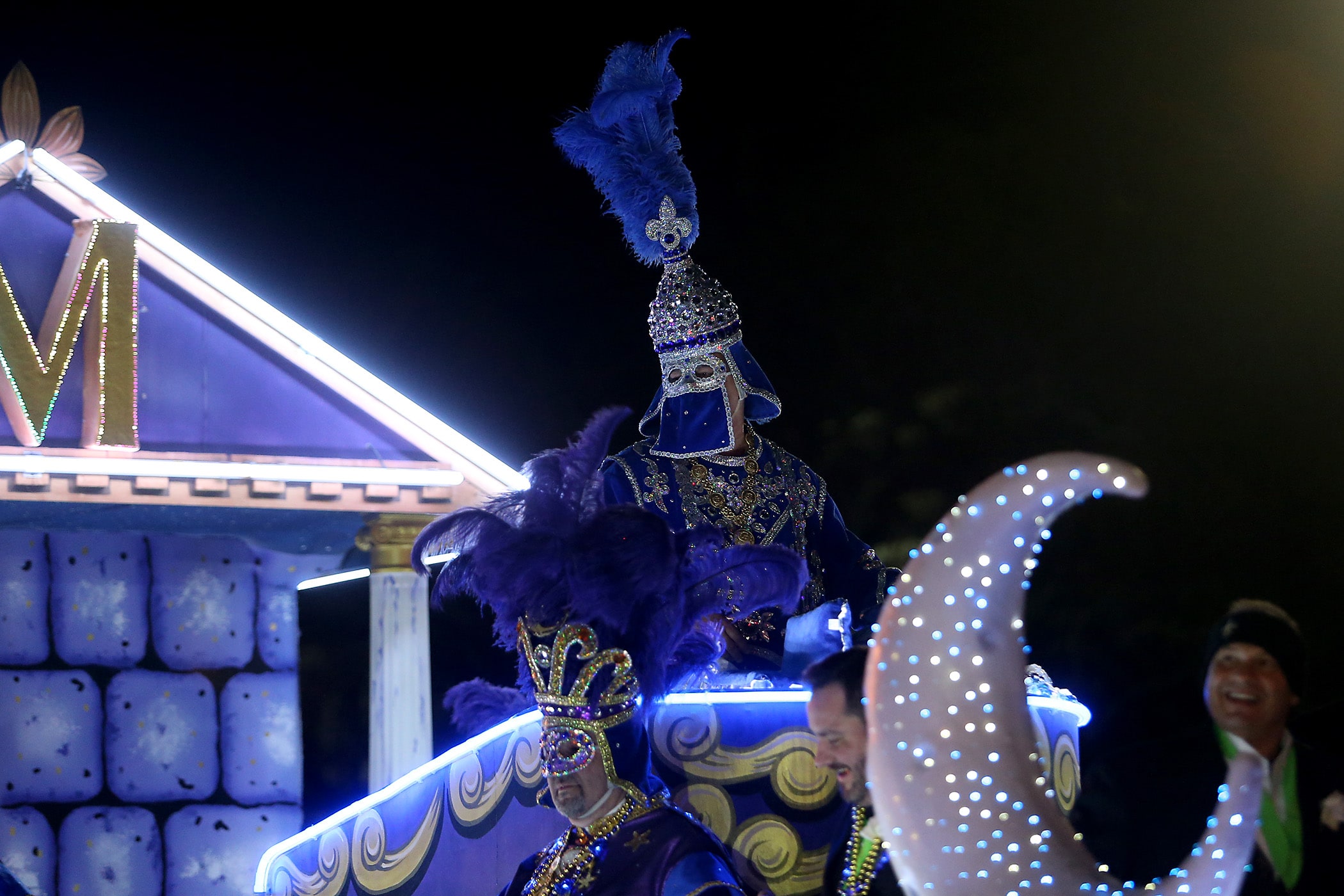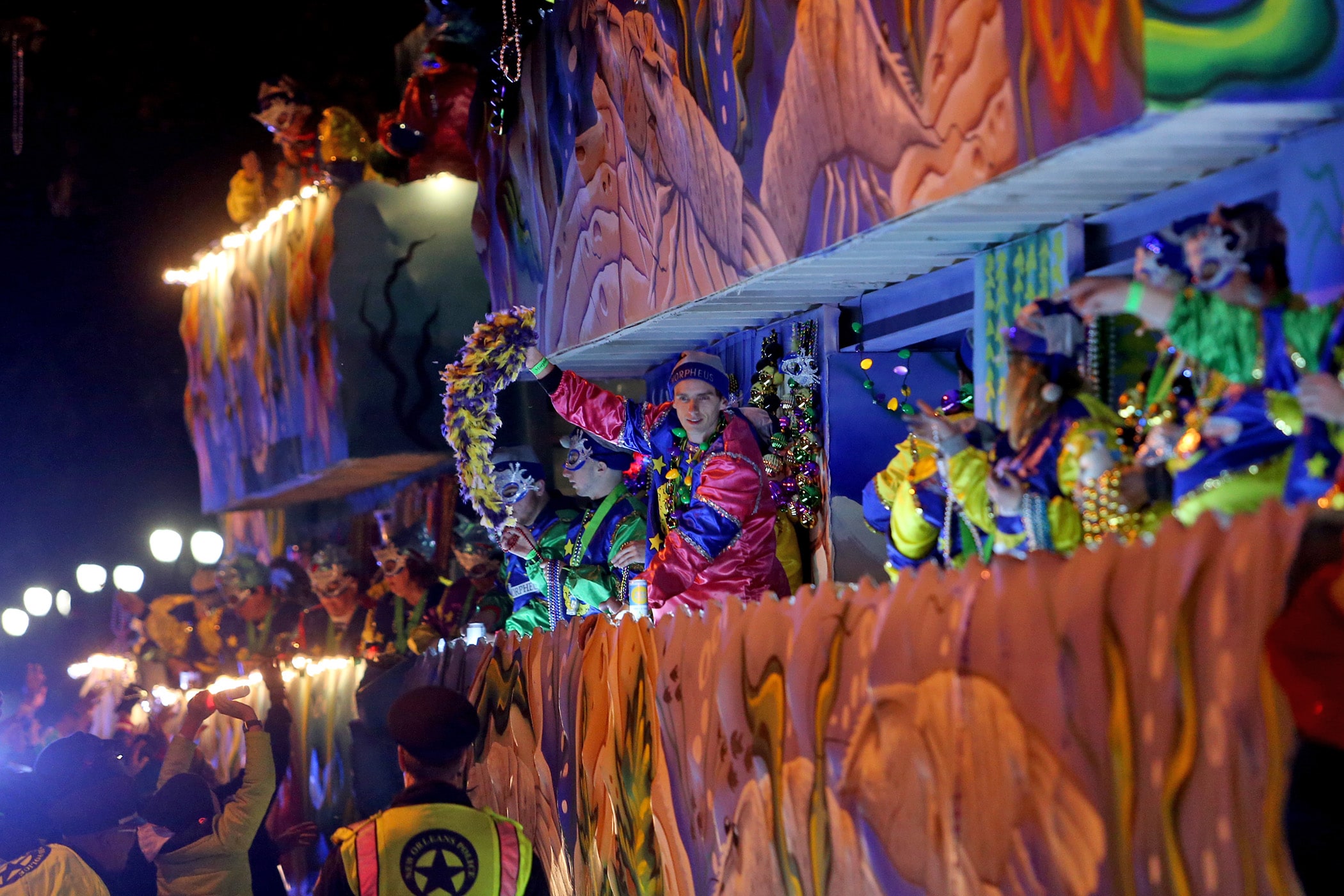 The Captain’s float passes as the 800 members of the Krewe of Morpheus roll down the Uptown parade route with a 24-float parade entitled “Morpheus Dreams of Aquatic Adventures” as they celebrate their 20th year on Friday, February 21, 2020. (Photo by Michael DeMocker)