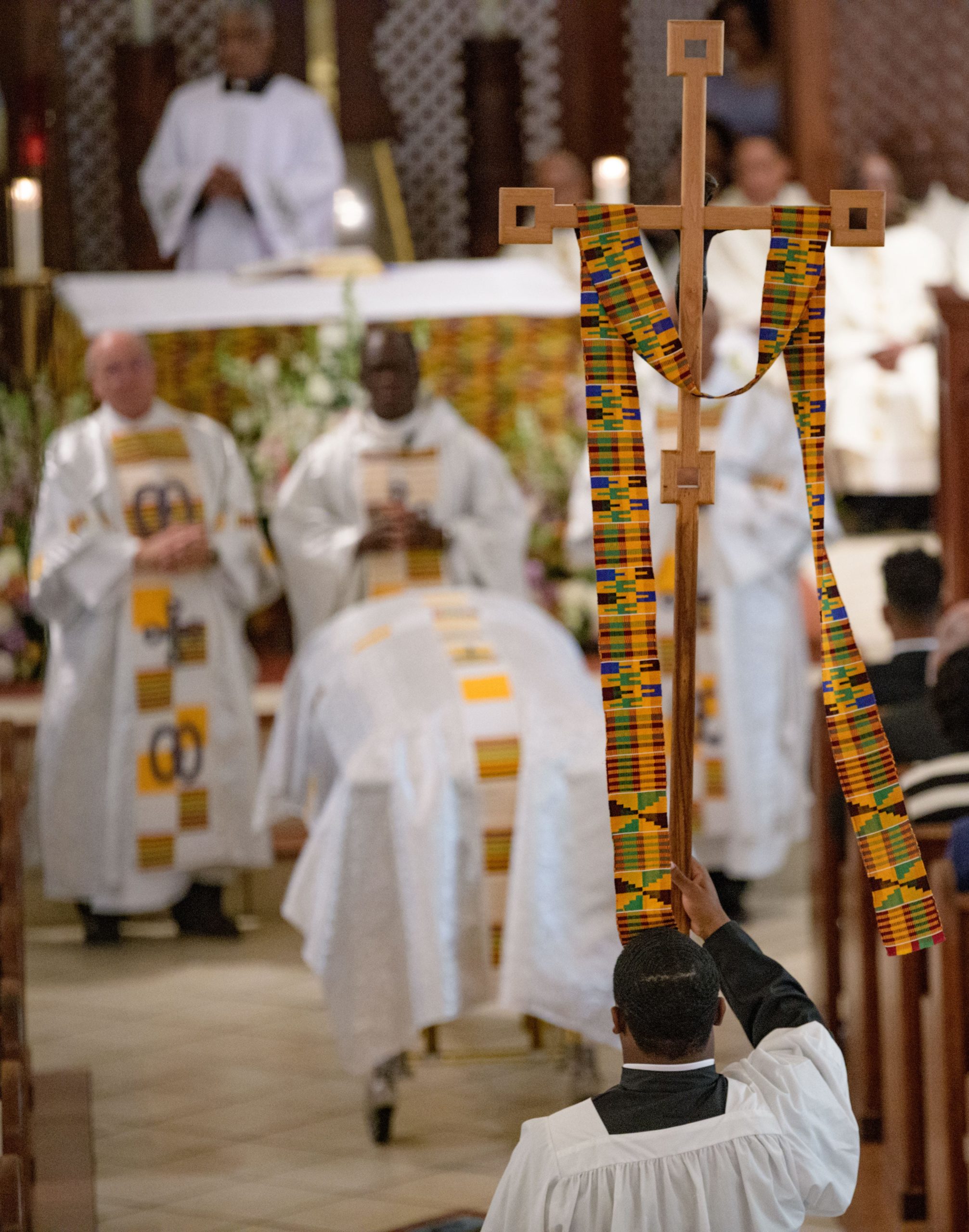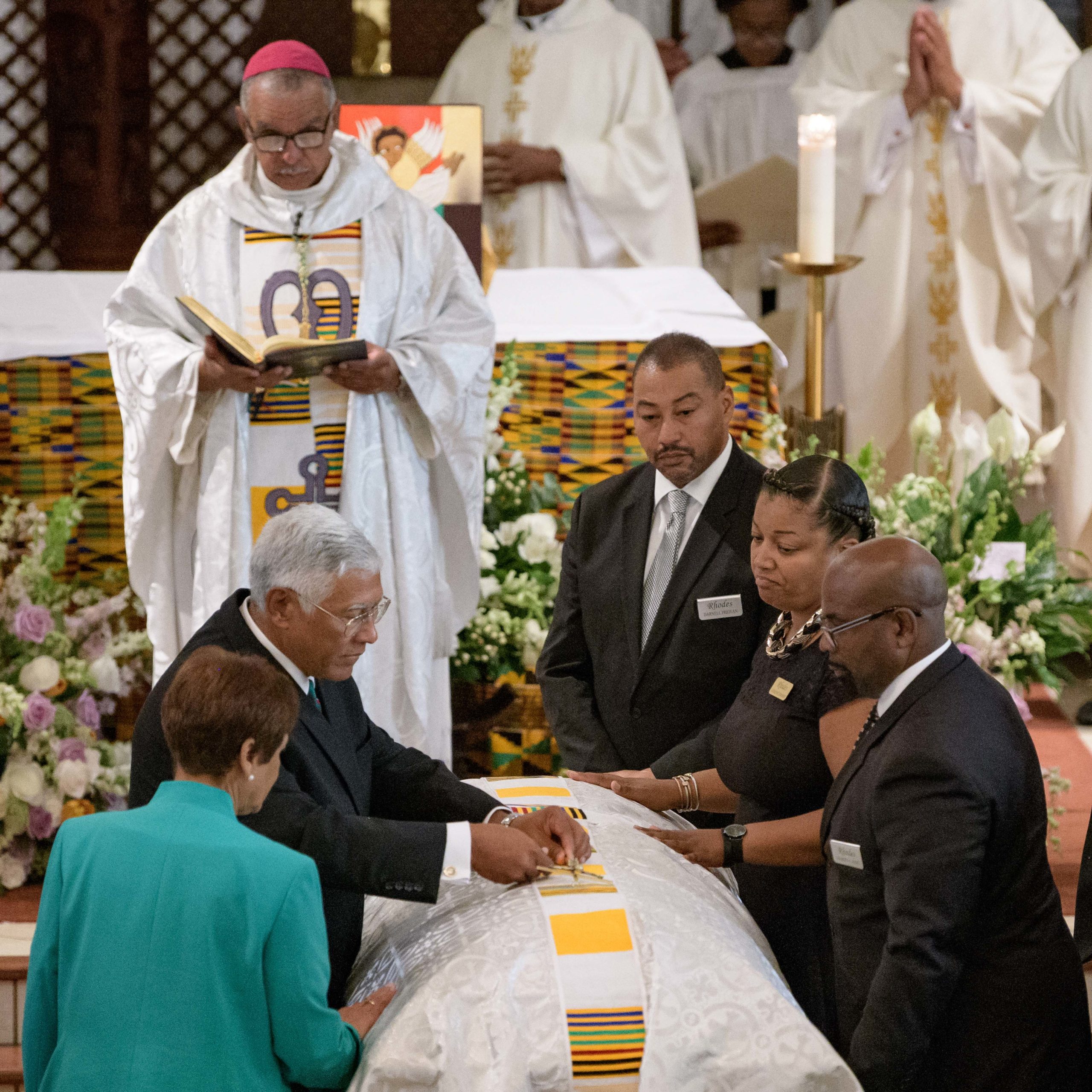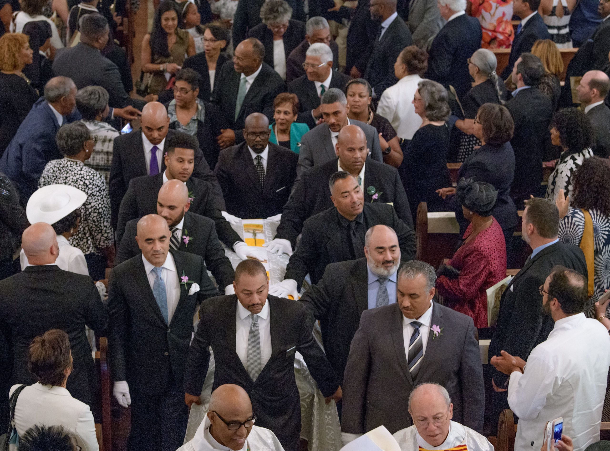 Chef Leah Chase’s grandchildren bring offerings during her funeral at St. Peter Claver Catholic Church at the end of a funeral mass in the Treme neighborhood in New Orleans, La. Monday, June 10, 2019. The Queen of Creole Cuisine at Dooky Chase’s Restaurant passed away last Saturday June 1st at the age of 96. Born on January 6, 1923 she later served two U.S. presidents and also Freedom Riders during the Civil Rights era. The restaurant she ran with her husband, Dooky Chase, Jr., served as a meeting place for African-American politicians for decades. Photo by Matthew Hinton