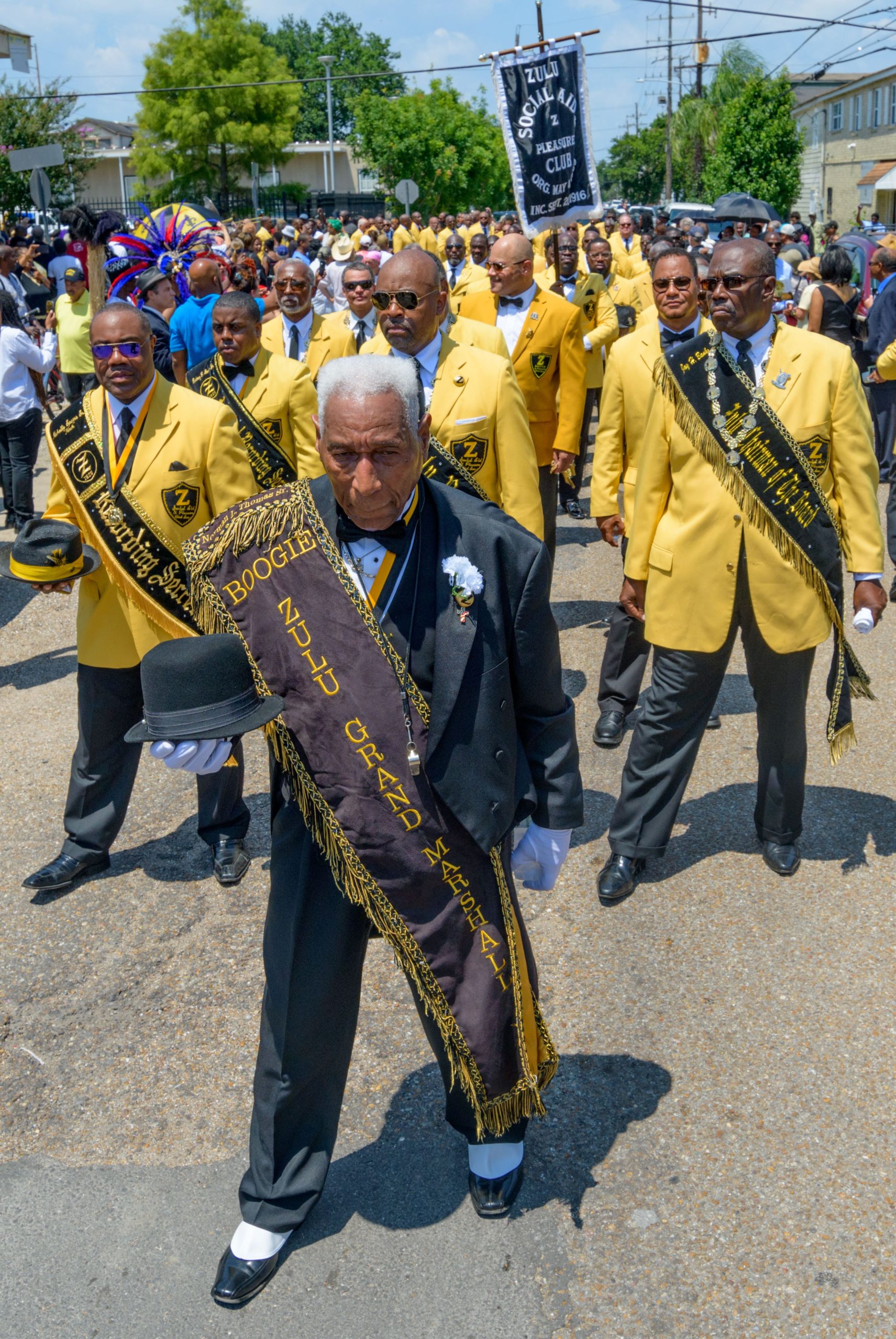 Members of the Zulu Social Aid and Pleasure Club line up for a jazz funeral after a funeral mass for Chef Leah Chase at St. Peter Claver Catholic Church in the Treme neighborhood in New Orleans, La. Monday, June 10, 2019. The Queen of Creole Cuisine at Dooky Chase’s Restaurant passed away last Saturday June 1st at the age of 96. Born on January 6, 1923 she later served two U.S. presidents and also Freedom Riders during the Civil Rights era. The restaurant she ran with her husband, Dooky Chase, Jr., served as a meeting place for African-American politicians for decades. Photo by Matthew Hinton