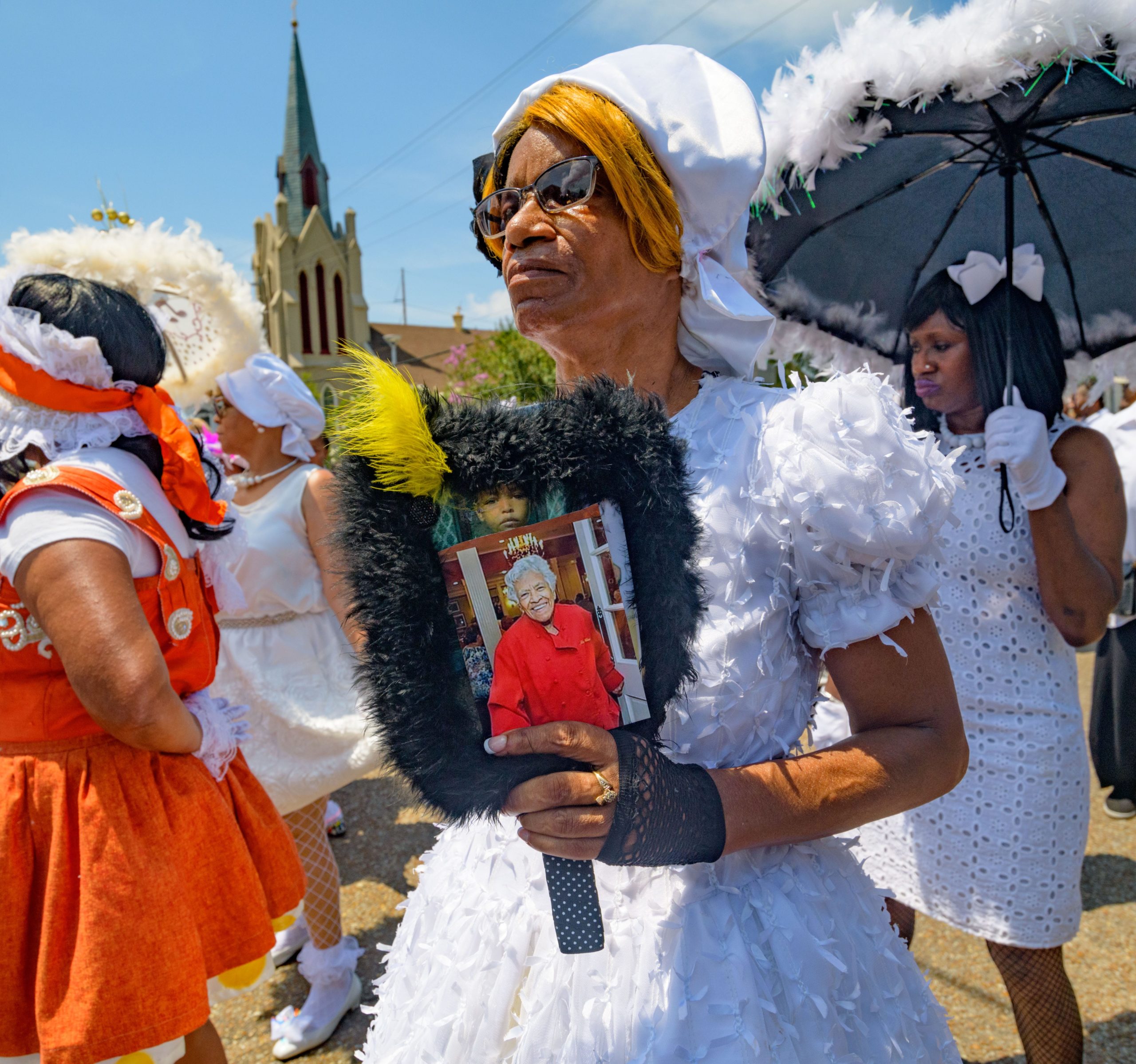 Members of Mystic Seven Sisters line up for a jazz funeral after a funeral mass for Chef Leah Chase at St. Peter Claver Catholic Church in the Treme neighborhood in New Orleans, La. Monday, June 10, 2019. The Queen of Creole Cuisine at Dooky Chase’s Restaurant passed away last Saturday June 1st at the age of 96. Born on January 6, 1923 she later served two U.S. presidents and also Freedom Riders during the Civil Rights era. The restaurant she ran with her husband, Dooky Chase, Jr., served as a meeting place for African-American politicians for decades. Photo by Matthew Hinton