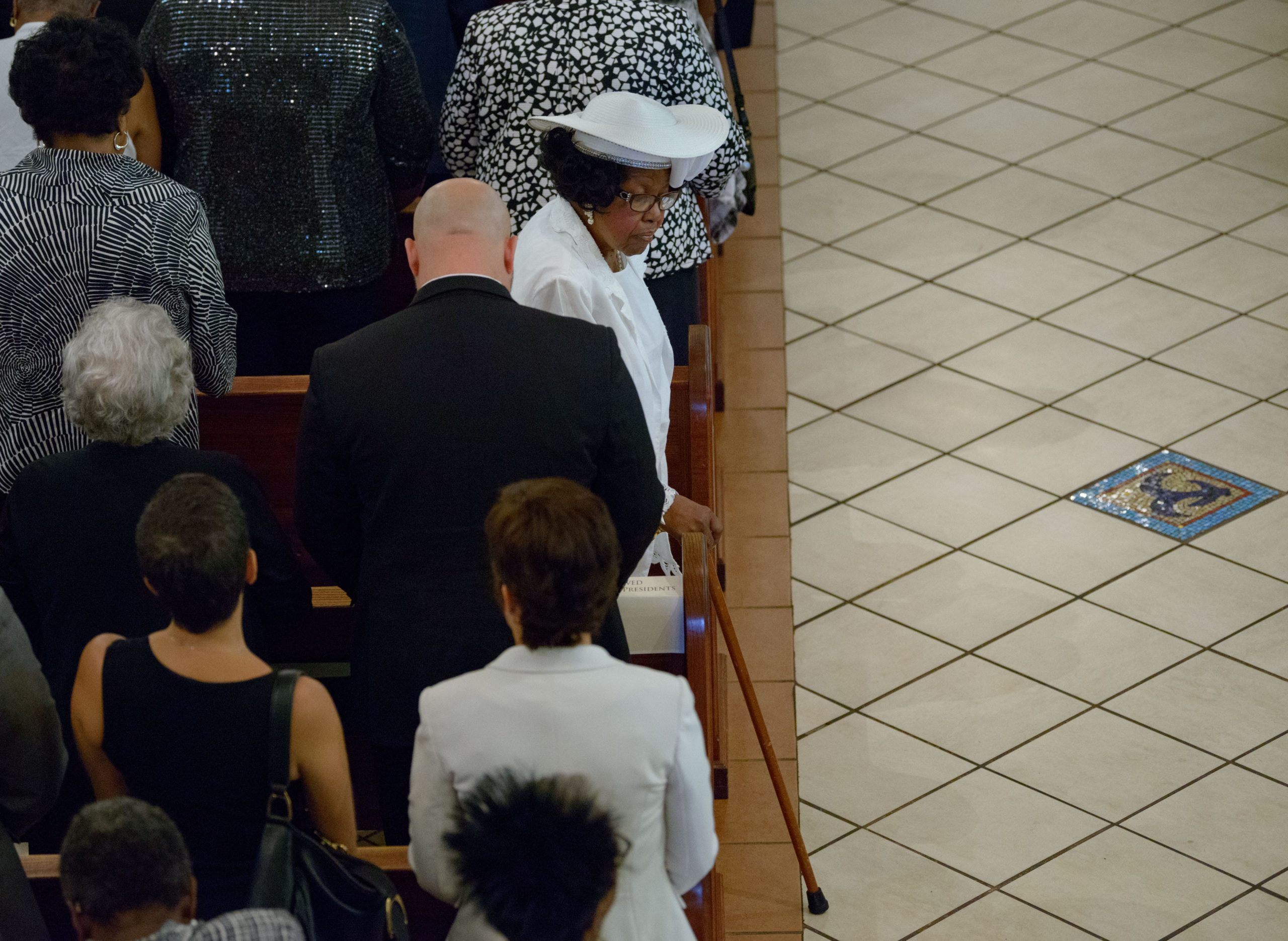 People pray during a funeral mass for Chef Leah Chase at St. Peter Claver Catholic Church at the end of a funeral mass in the Treme neighborhood in New Orleans, La. Monday, June 10, 2019. The Queen of Creole Cuisine at Dooky Chase’s Restaurant passed away last Saturday June 1st at the age of 96. Born on January 6, 1923 she later served two U.S. presidents and also Freedom Riders during the Civil Rights era. The restaurant she ran with her husband, Dooky Chase, Jr., served as a meeting place for African-American politicians for decades. Photo by Matthew Hinton