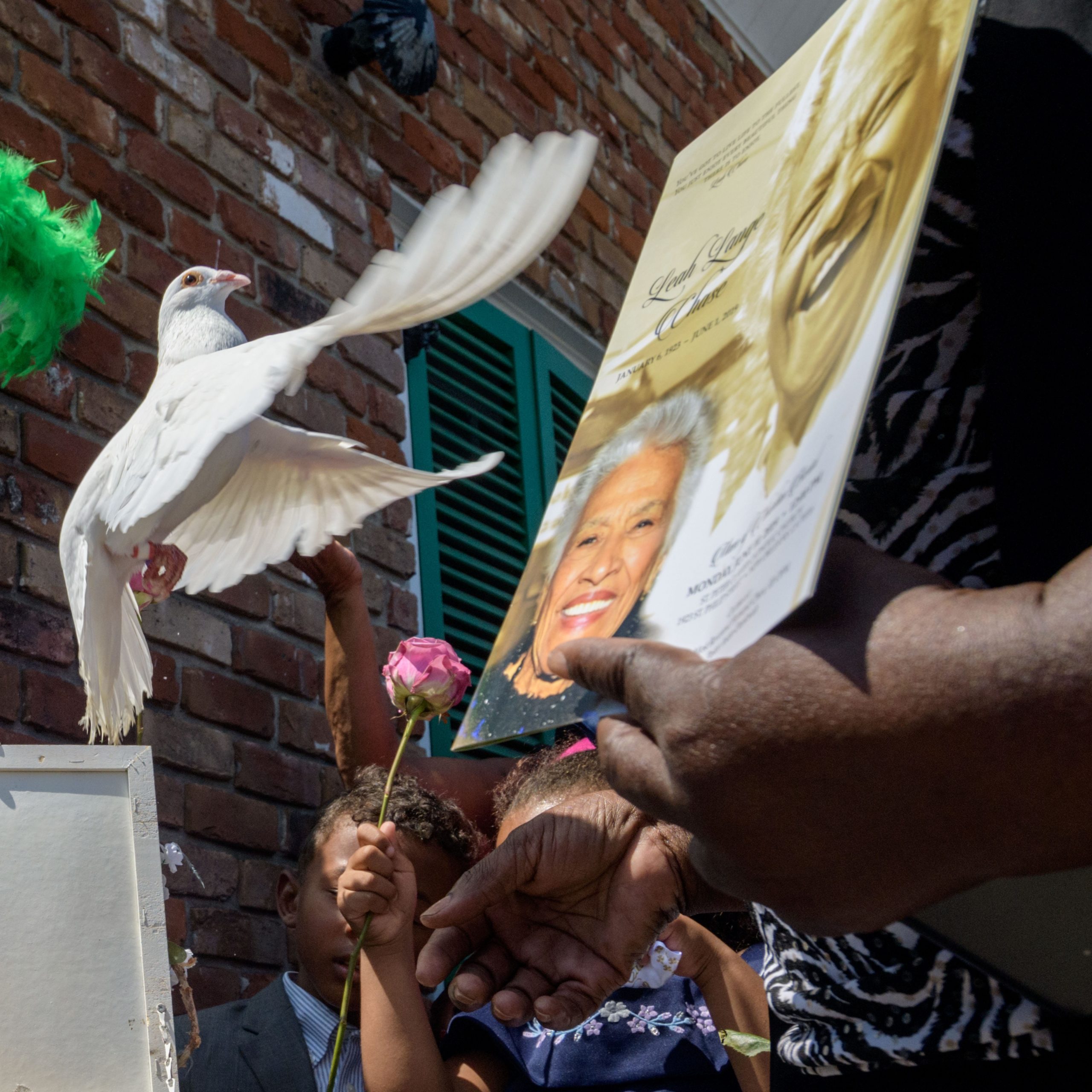 Clarence Dalcour, Chief of the Creole Oceolas Mardi Gras Indians, releases doves at Dooky Chase’s Restaurant in remembrance of Chef Leah Chase as family members of Chase look on after a funeral mass in the Treme neighborhood in New Orleans, La. Monday, June 10, 2019. The Queen of Creole Cuisine at Dooky Chase’s Restaurant passed away last Saturday June 1st at the age of 96. Born on January 6, 1923 she later served two U.S. presidents and also Freedom Riders during the Civil Rights era. The restaurant she ran with her husband, Dooky Chase, Jr., served as a meeting place for African-American politicians for decades. Photo by Matthew Hinton