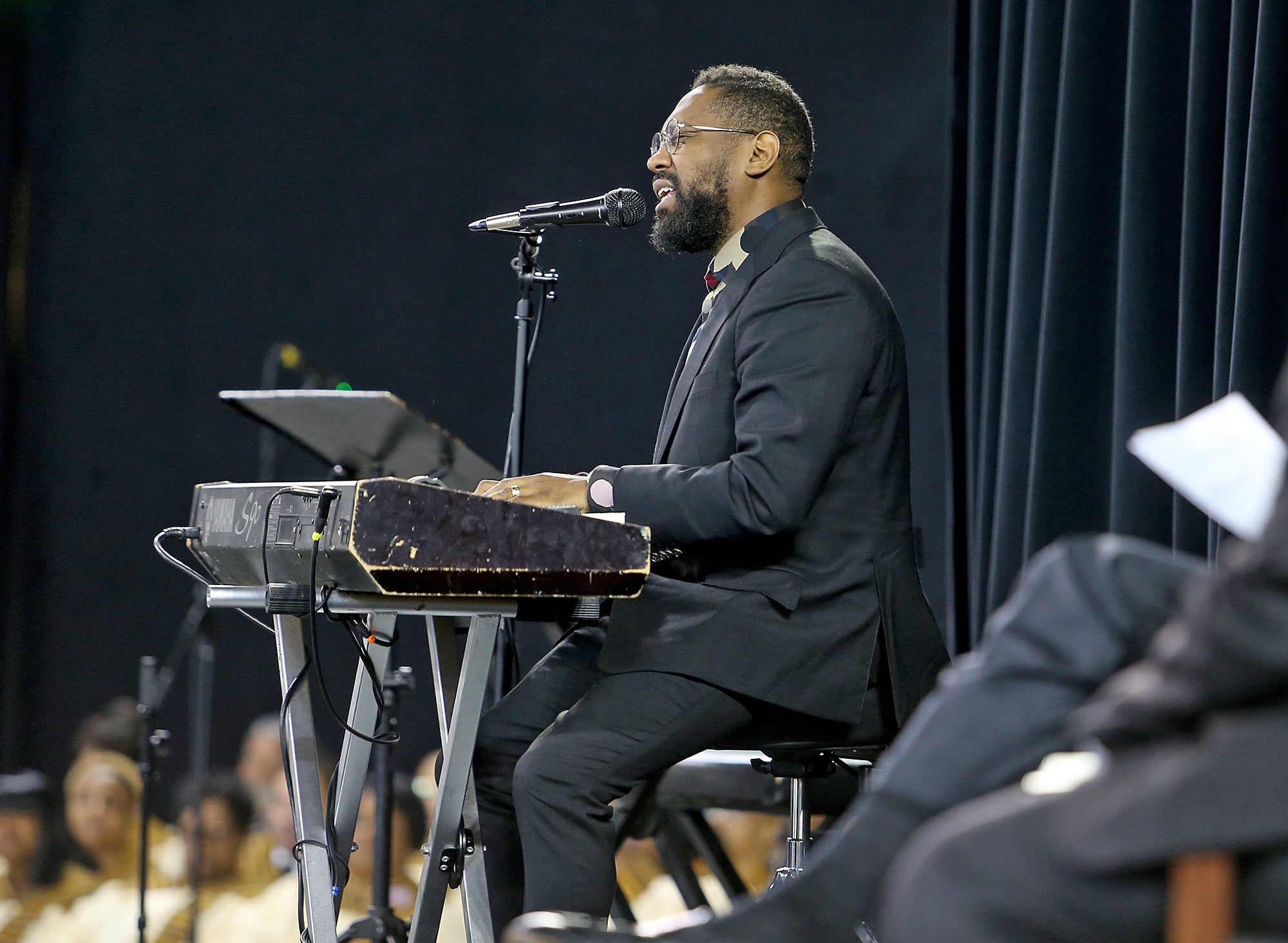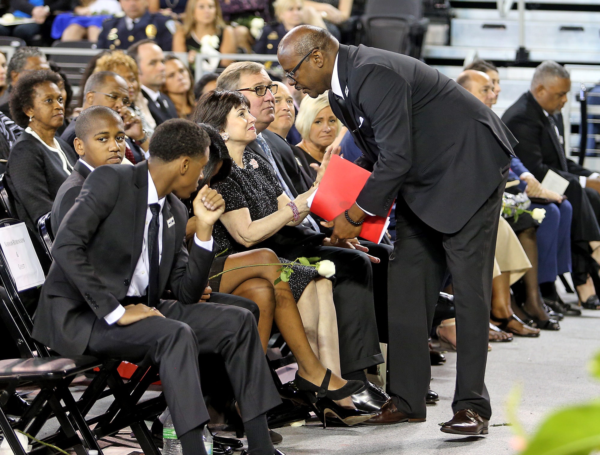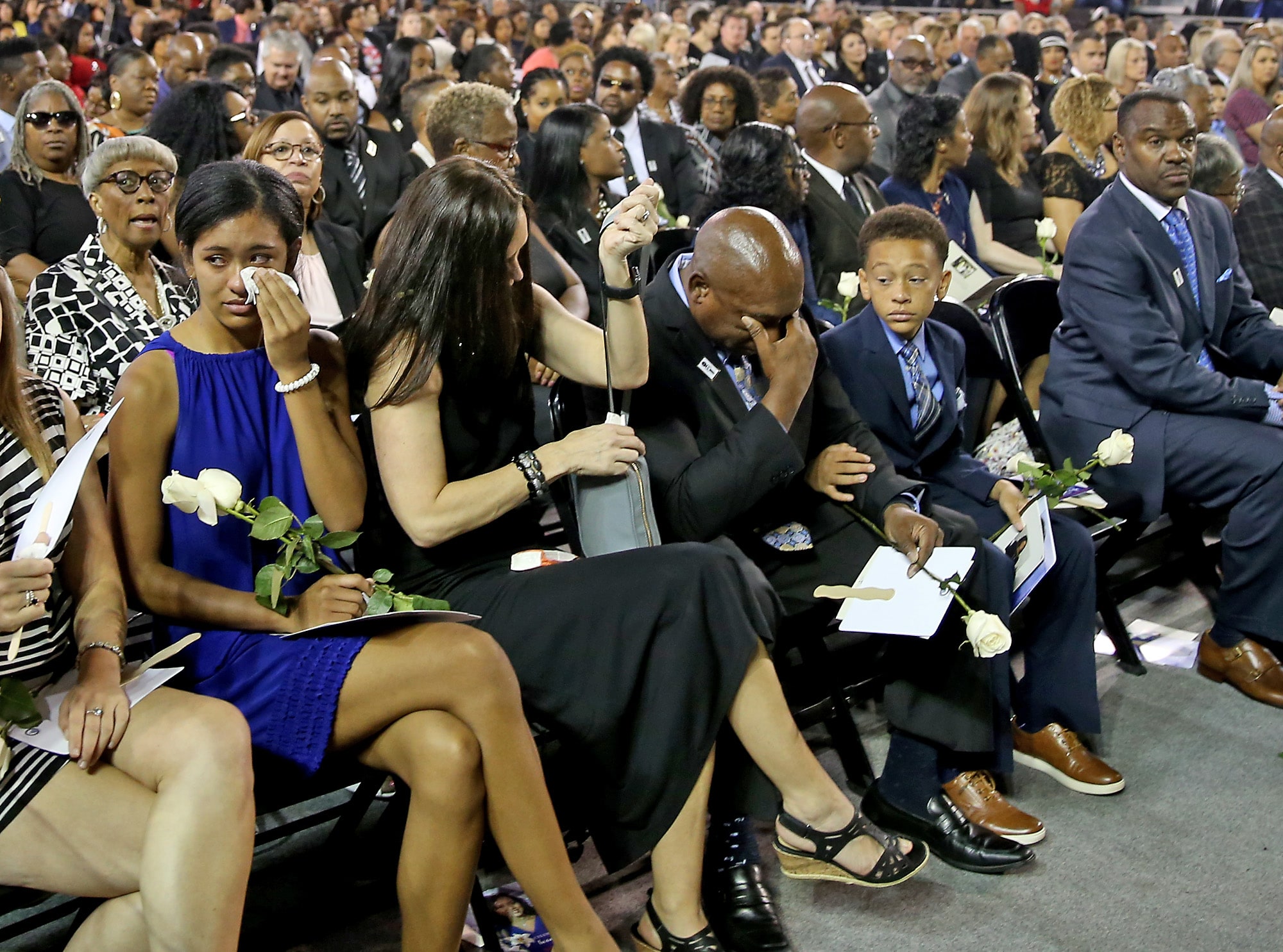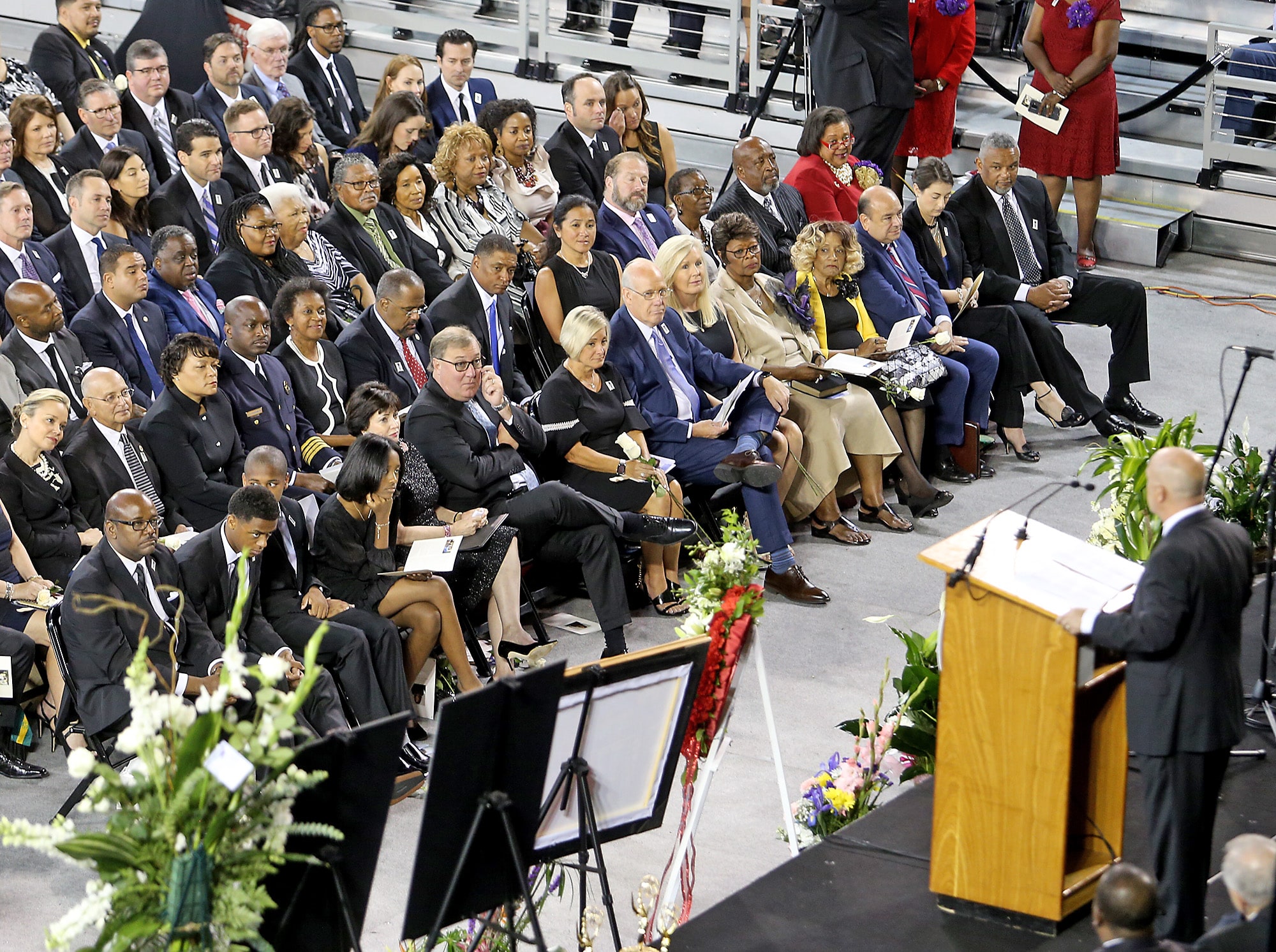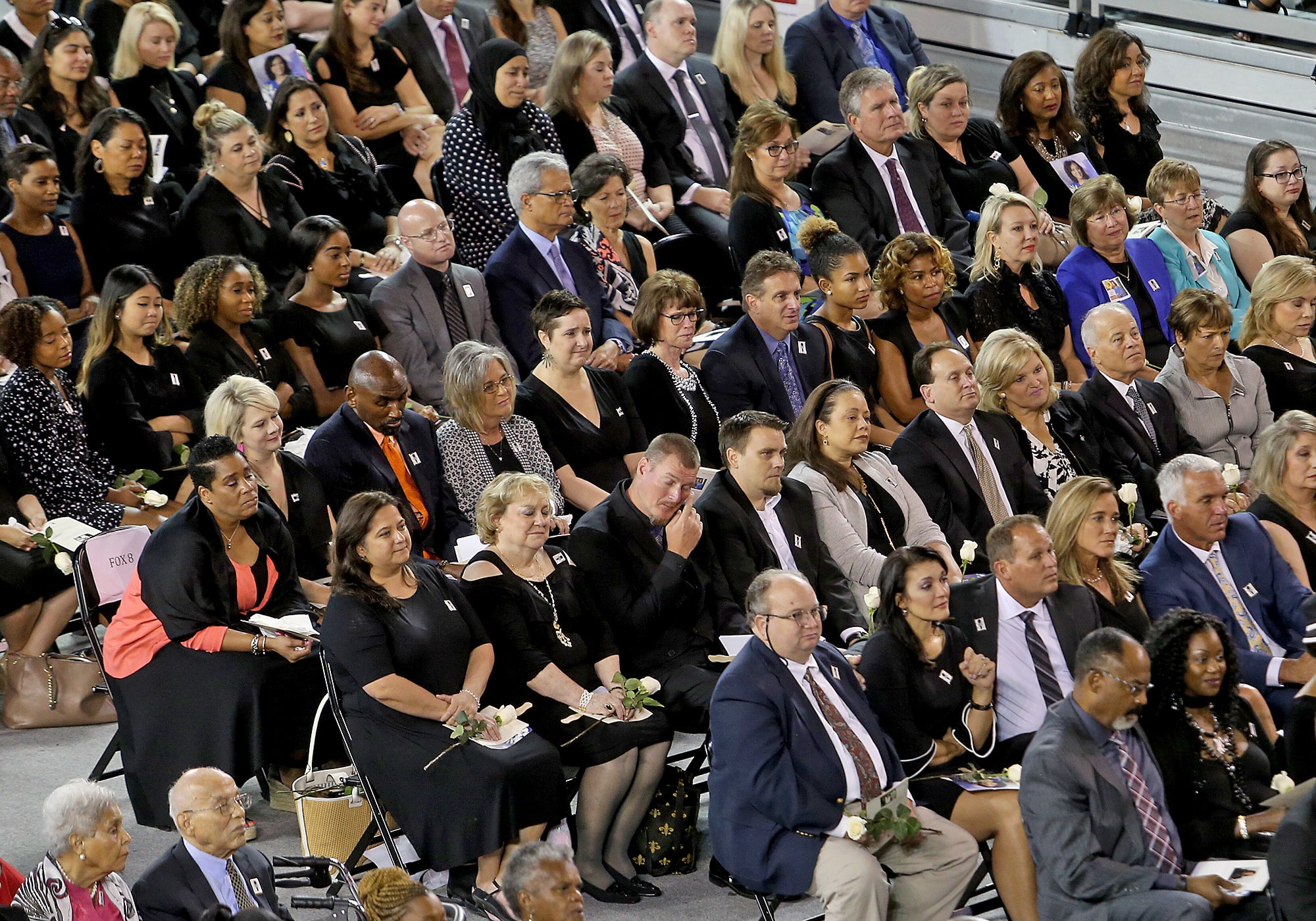 Flowers and photos during the public memorial service at the Xavier Convocation Center for Fox 8 journalist and anchor Nancy Parker who was killed last week in a small plane crash while working on a story. (Photo by Michael DeMocker)