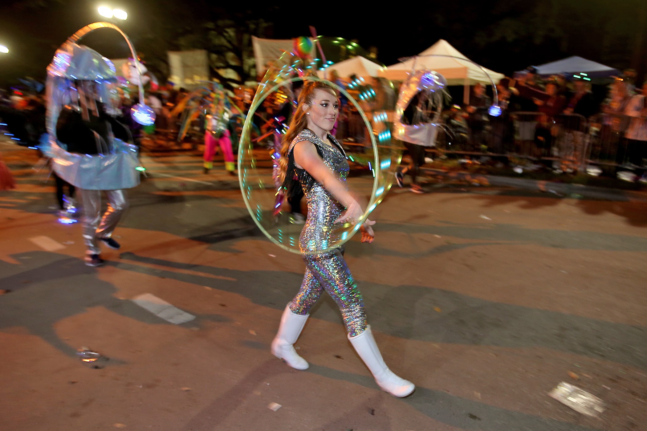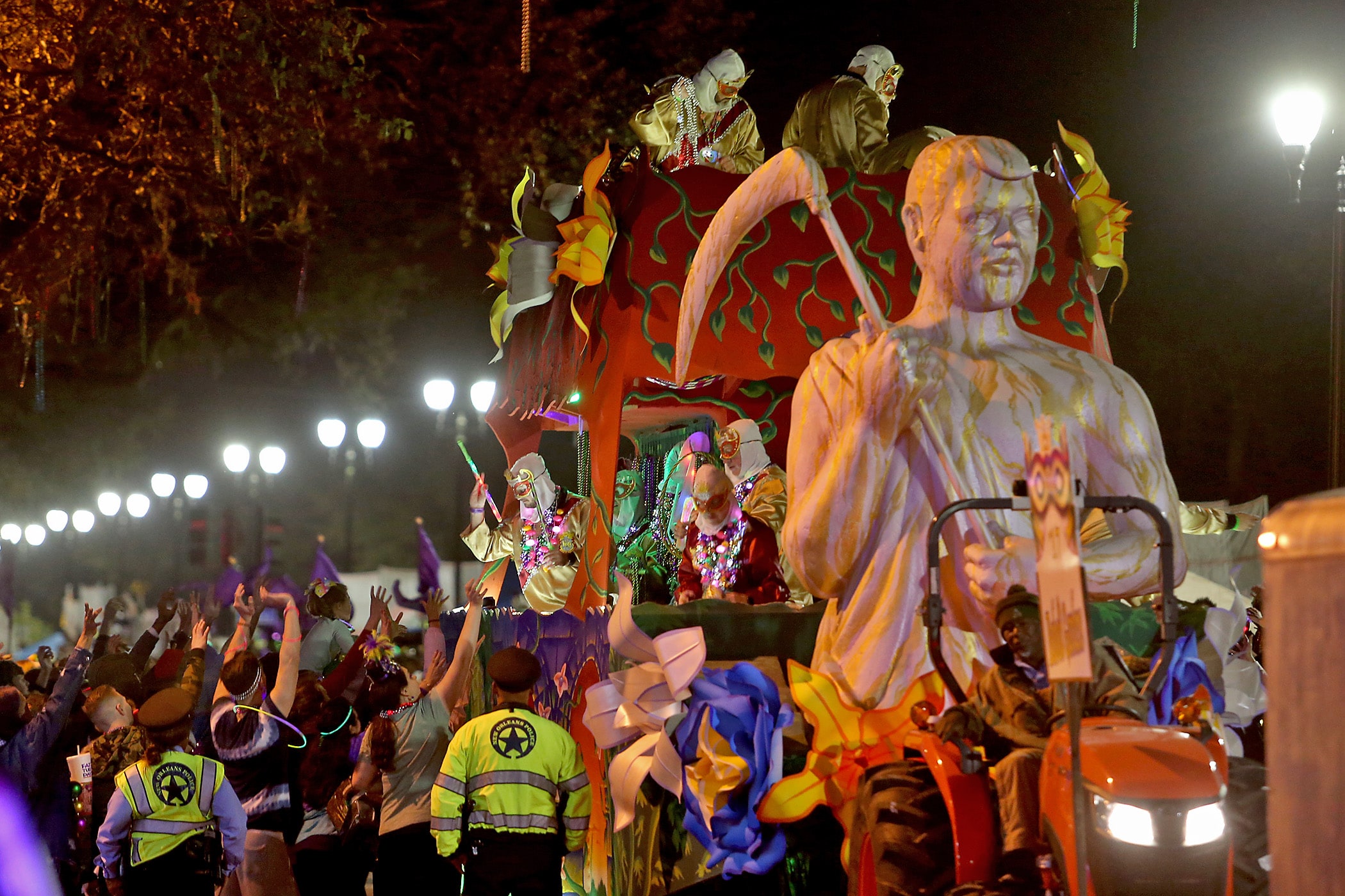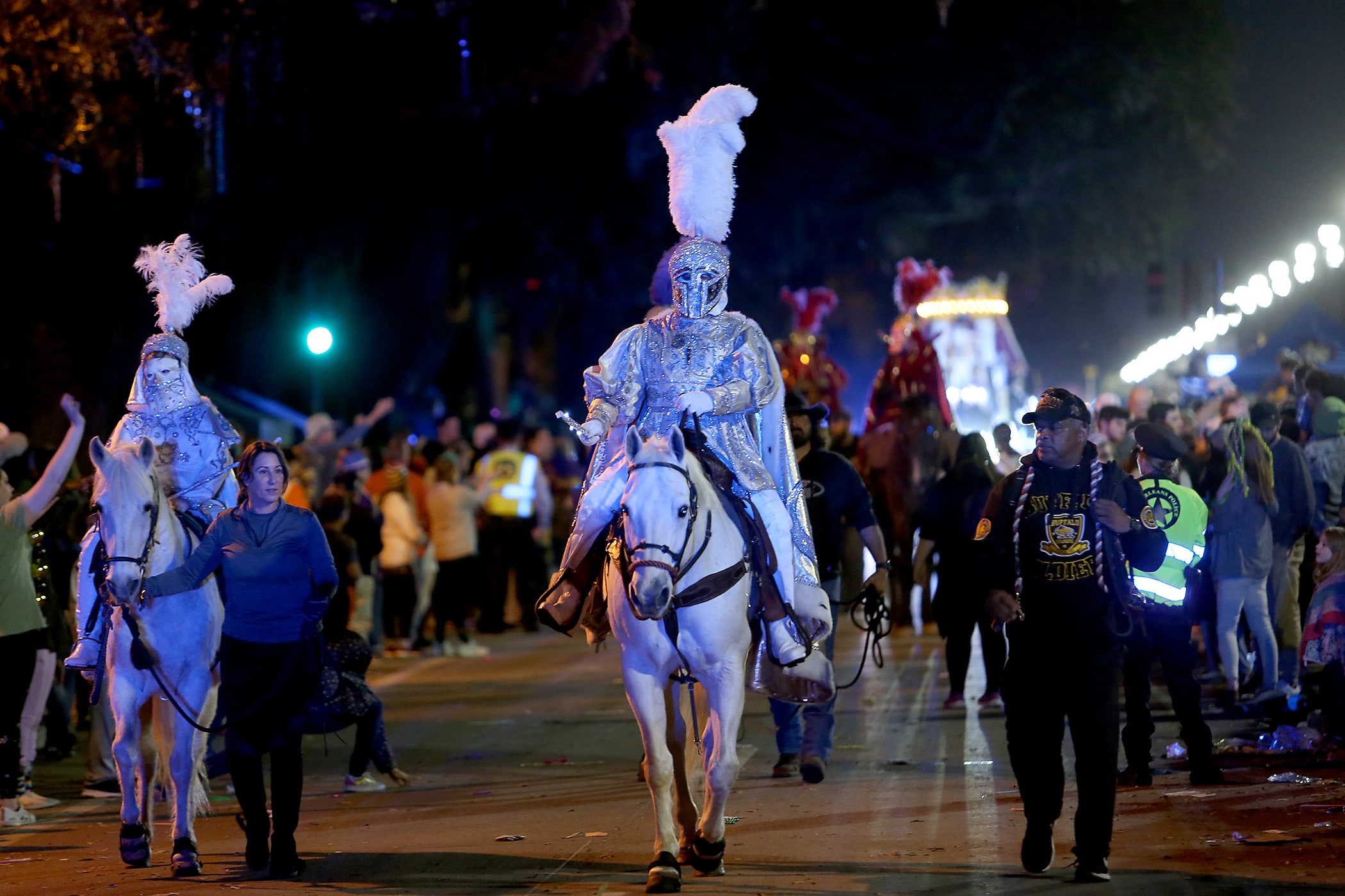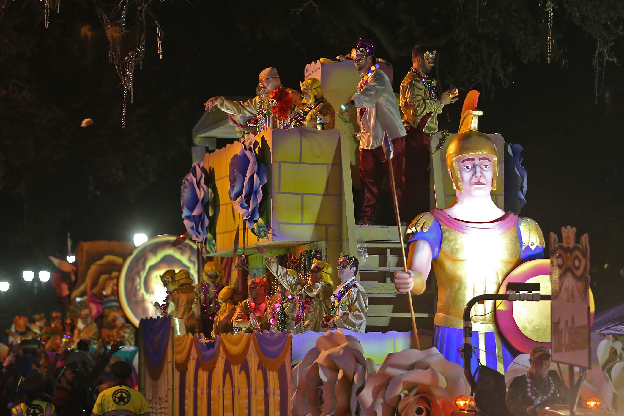After a brief few-hours break on Saturday, the Knights of Sparta and the Krewe of Pygmalion lit up the evening, which concluded five different parades that rolled on the Uptown route.
