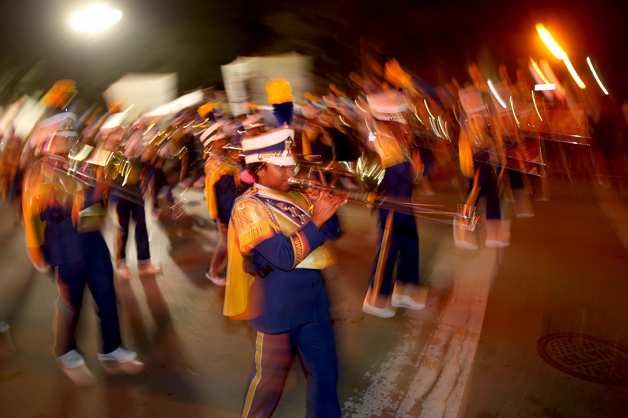 The Kennedy marching band passes by as the 550 members of Pygmalion roll down the Uptown parade route with an Italy-themed 25-float parade entitled “Viaggia in Italia”. Cary Oswald reigned as King Pygmalion and Kalli Mercer was Queen Pygmalion as the krewe presented their 21st annual parade on Saturday, February 15, 2020. (Photo by Michael DeMocker)