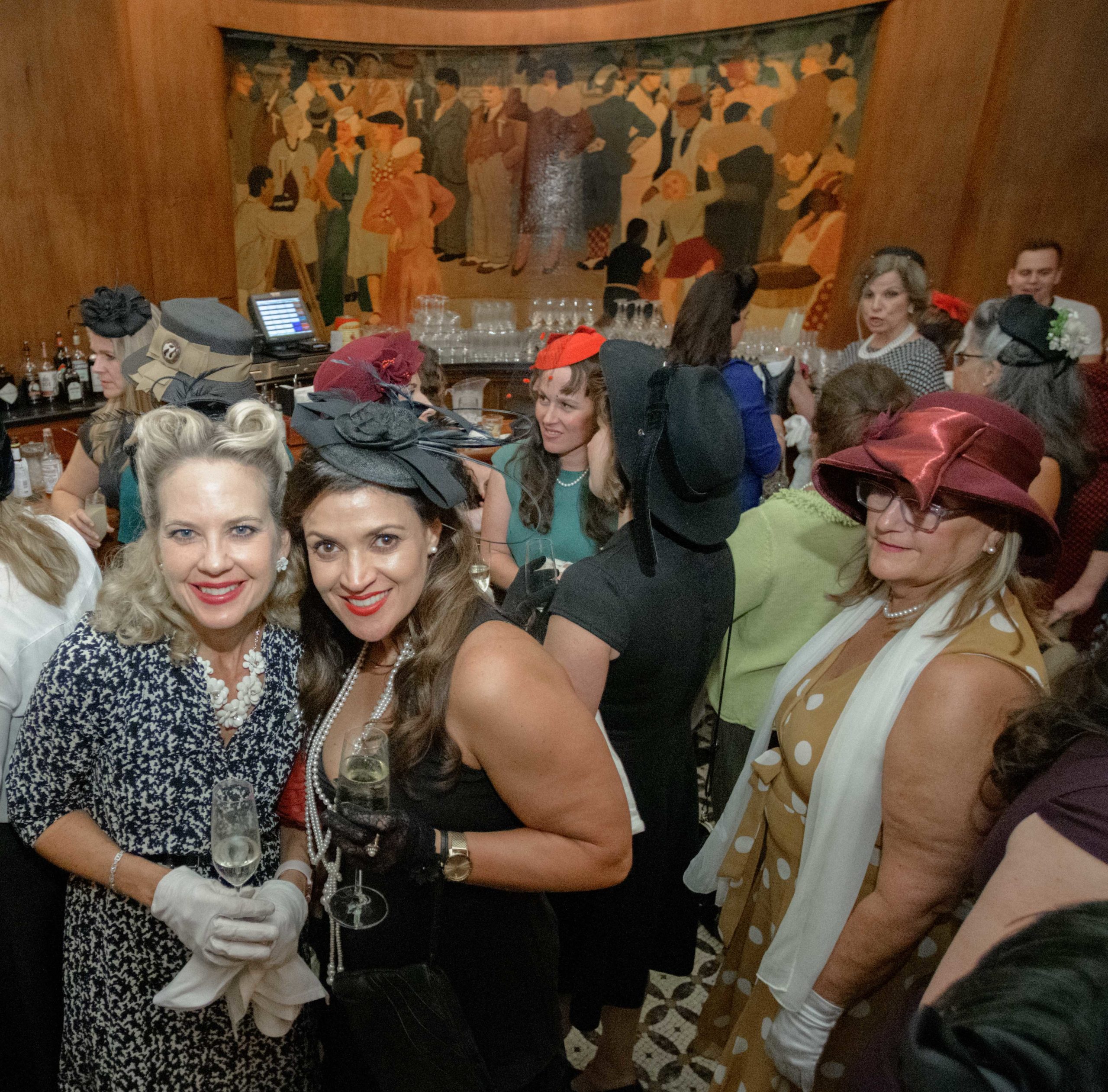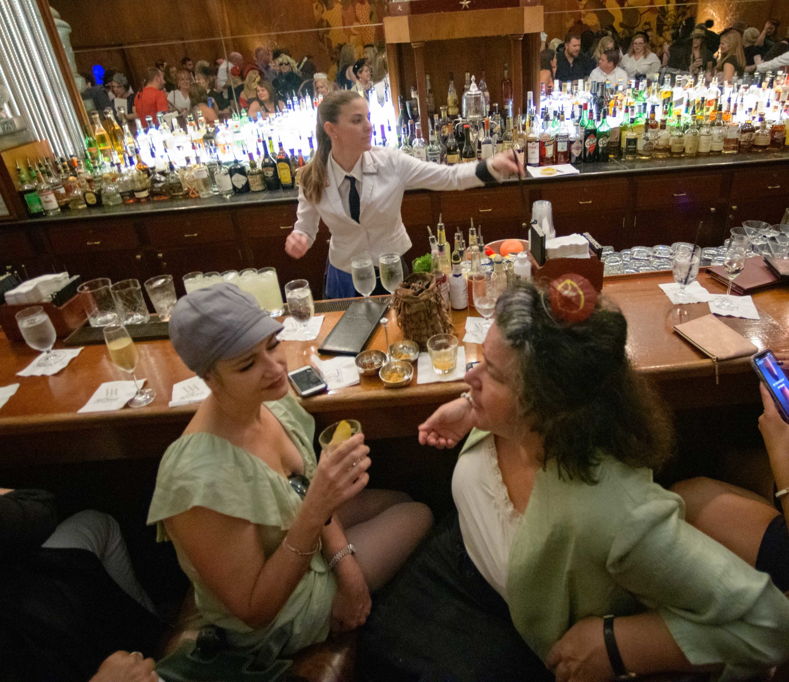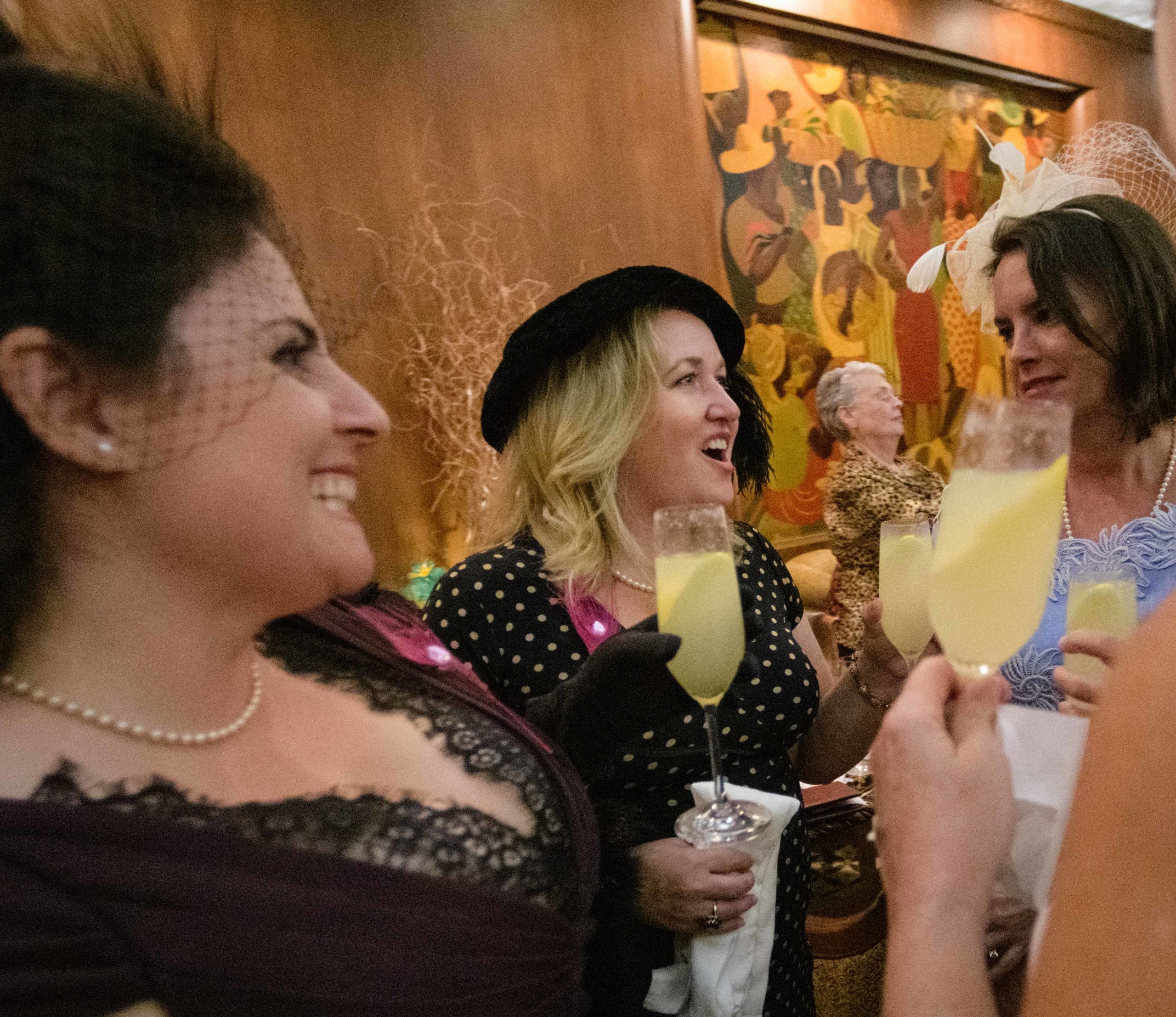 Women commemorate the 70th anniversary of the Stormin’ of the Sazerac bar at the Roosevelt Hotel in New Orleans, September 20, 2019.