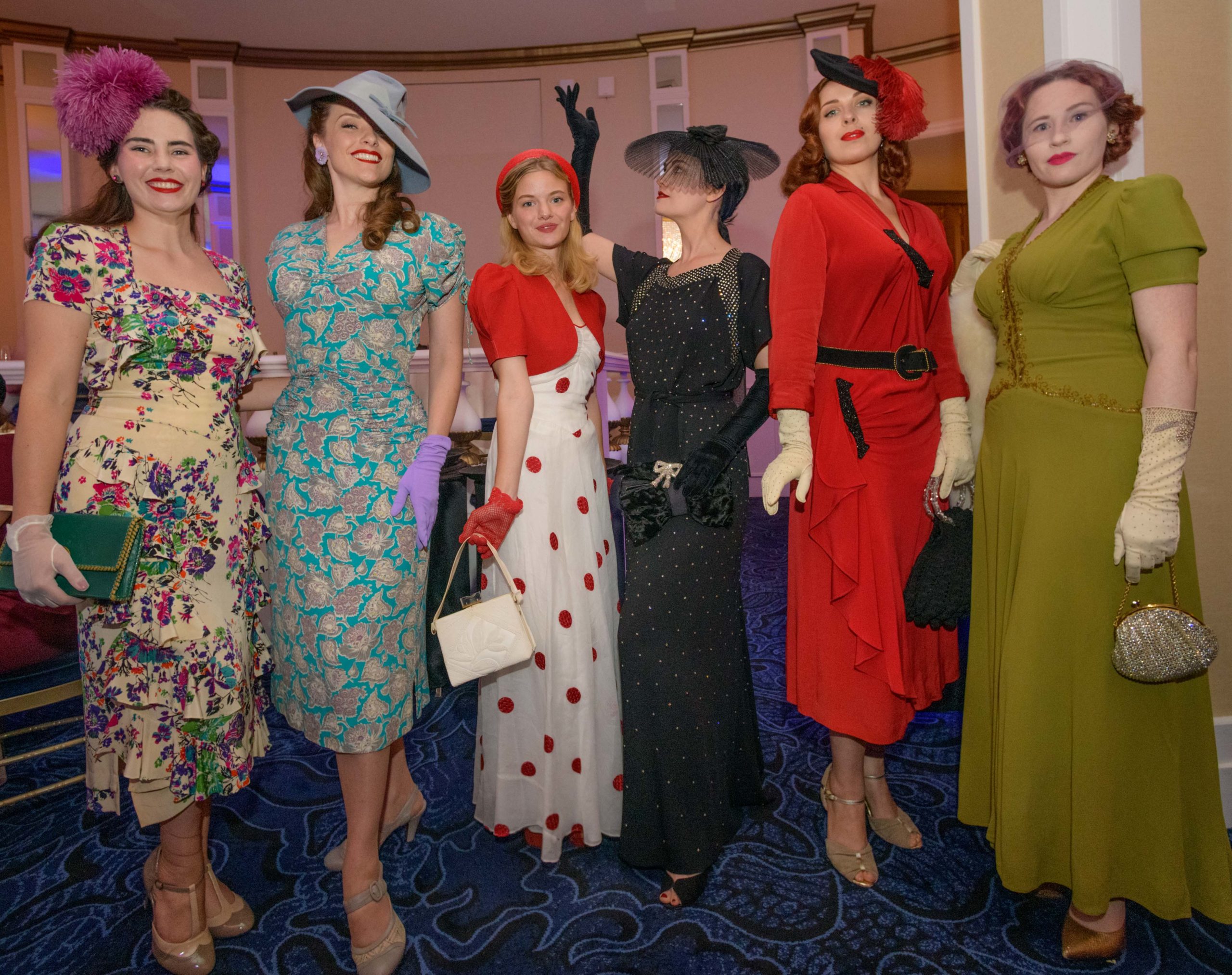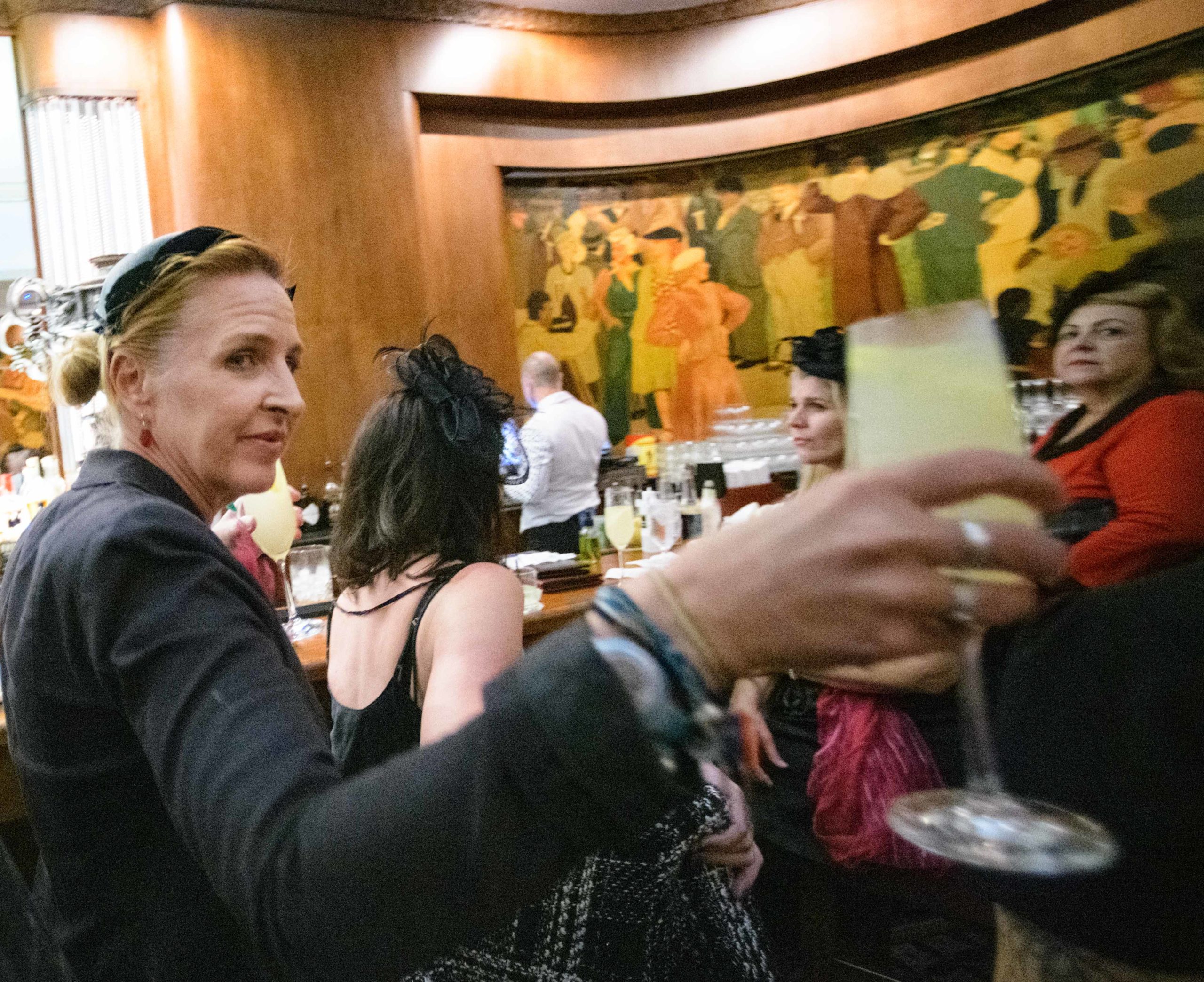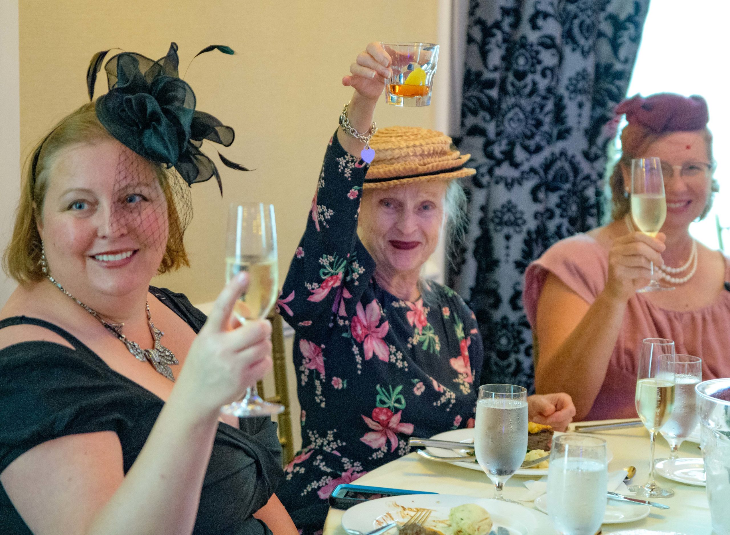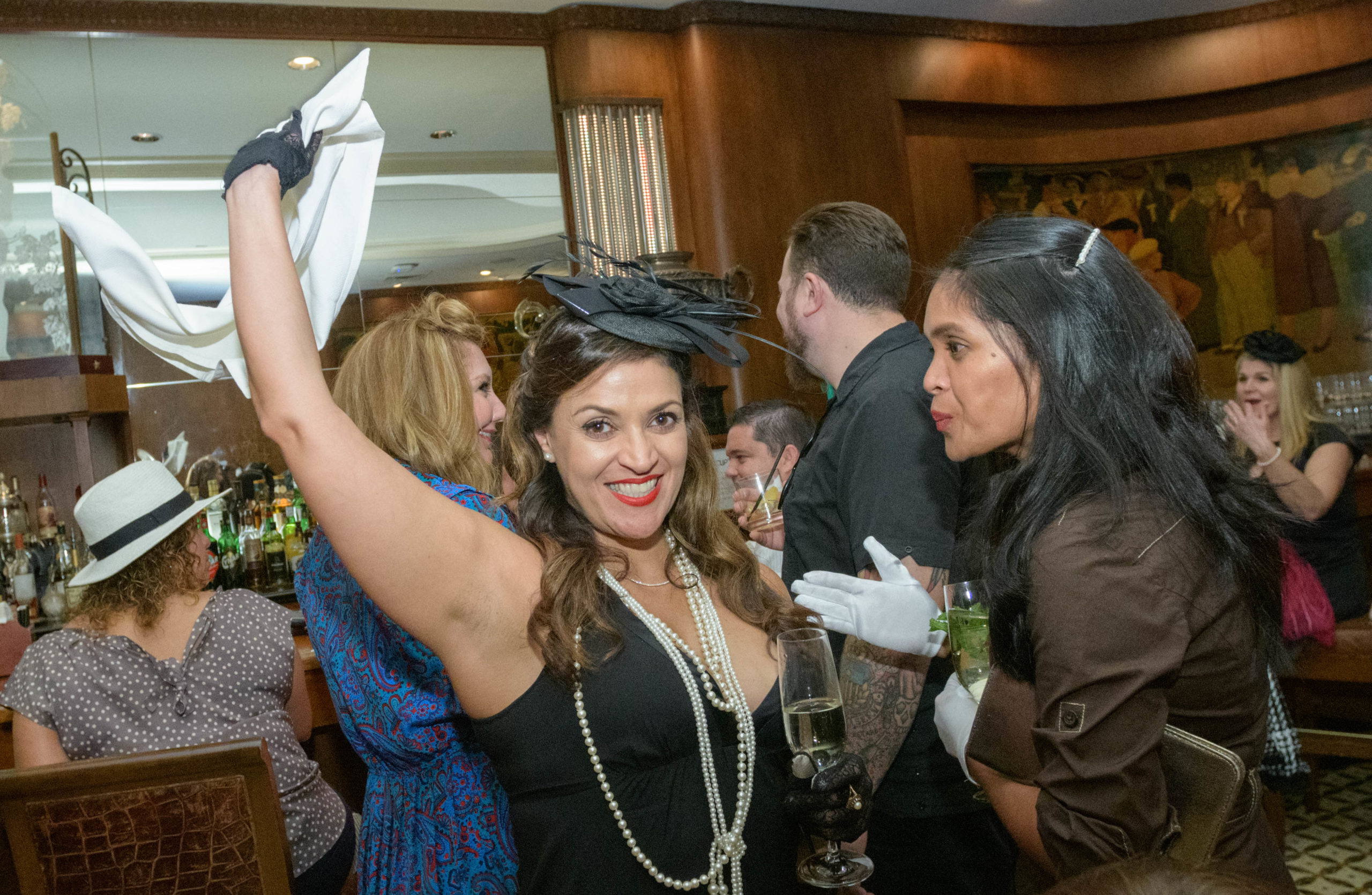 Women commemorate the 70th anniversary of the Stormin’ of the Sazerac bar at the Roosevelt Hotel in New Orleans, September 20, 2019.