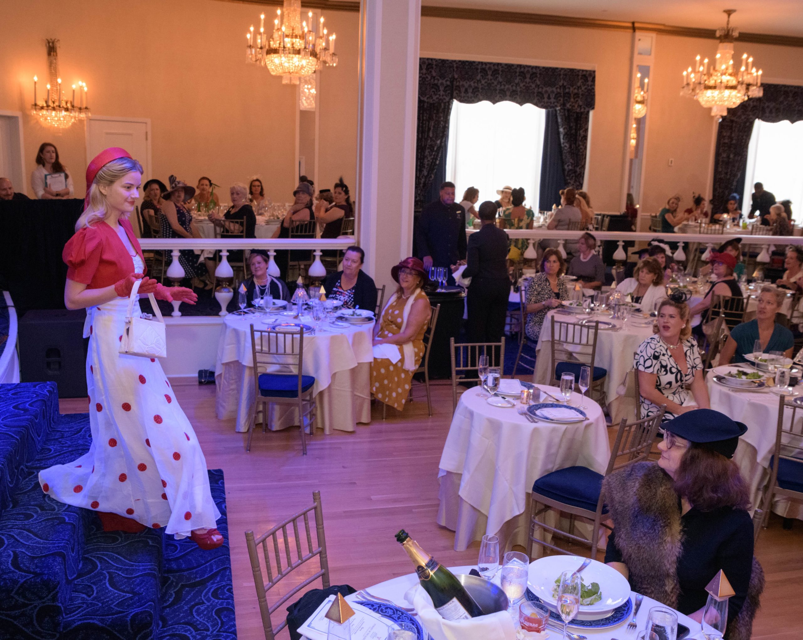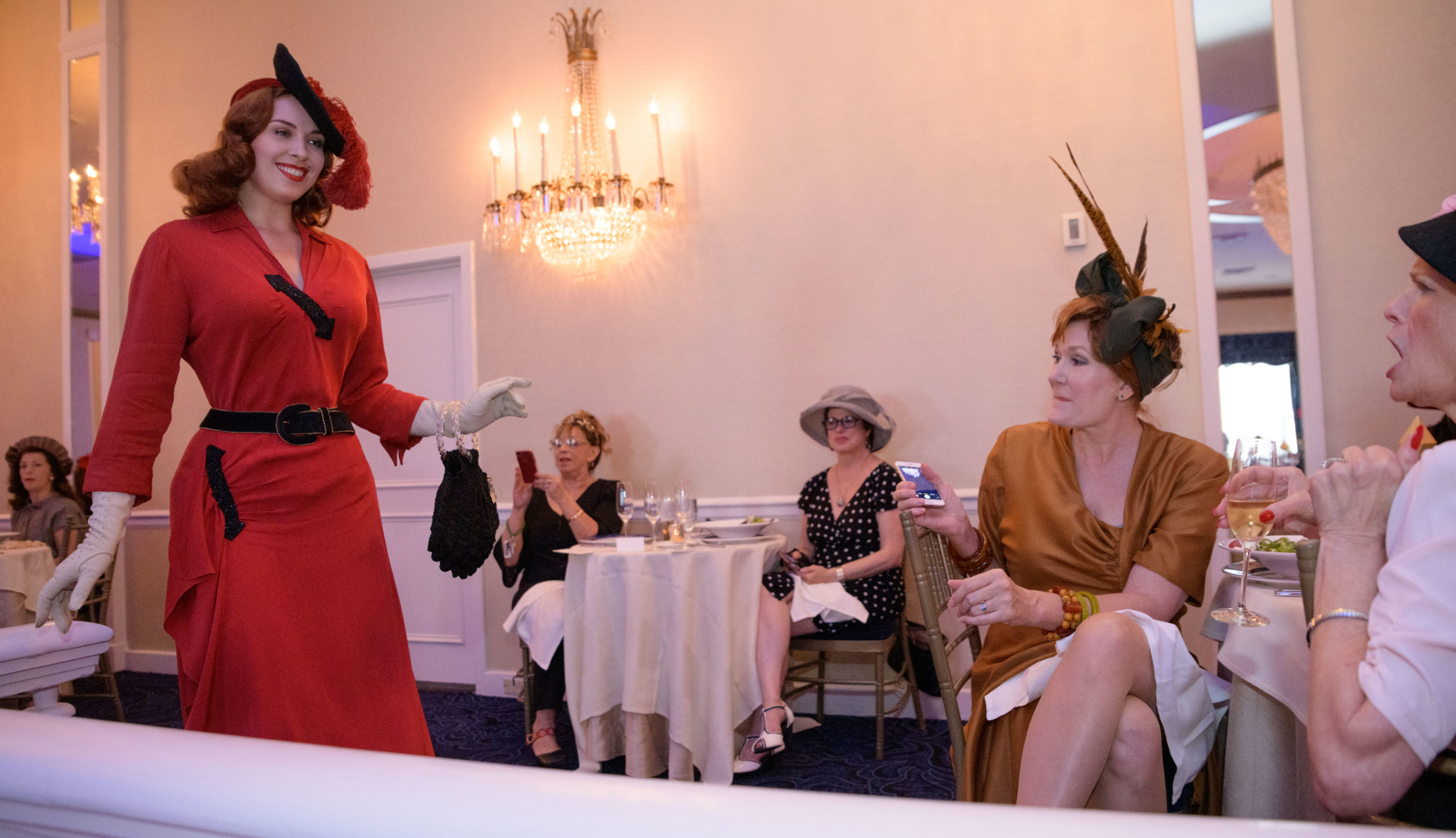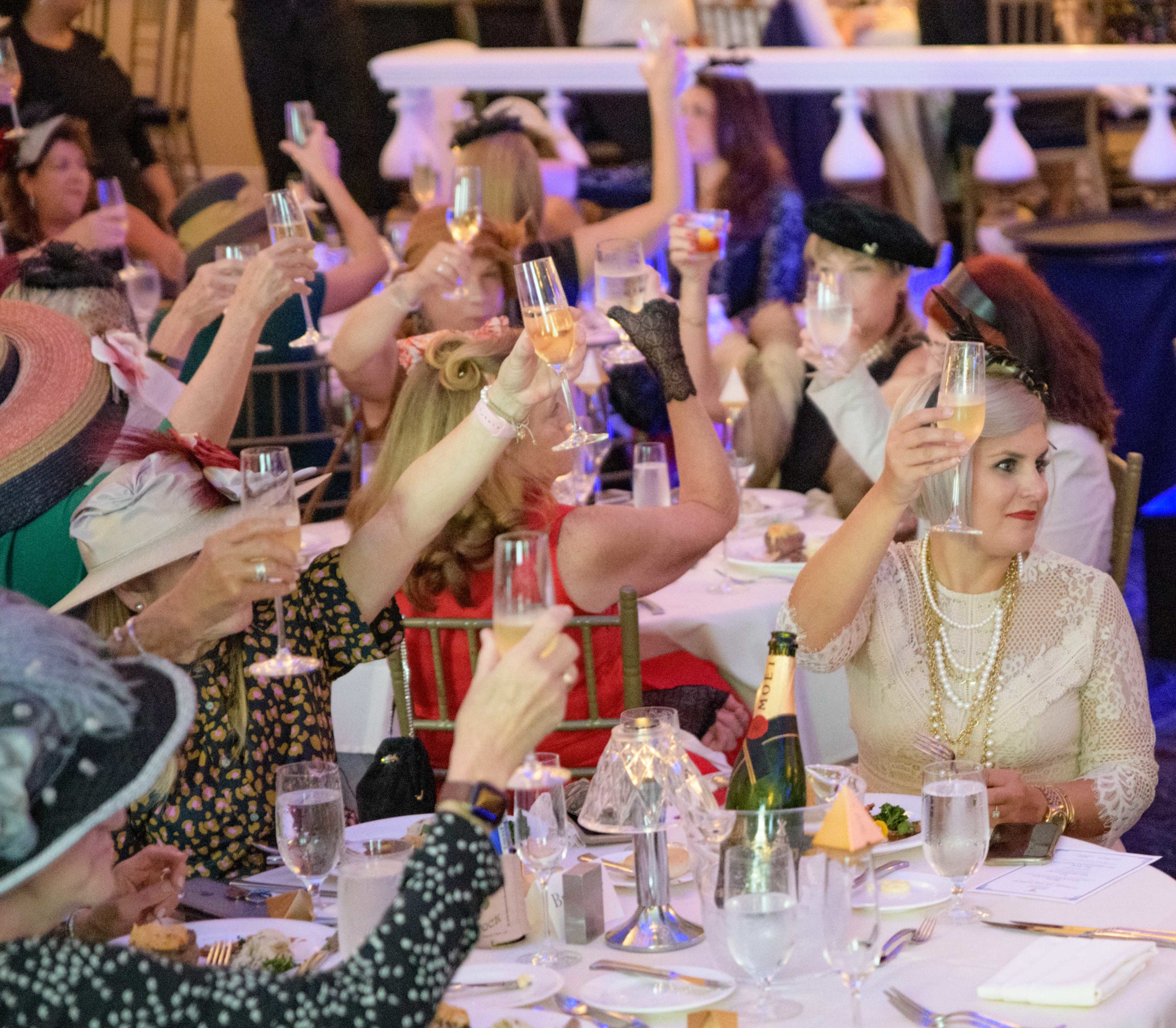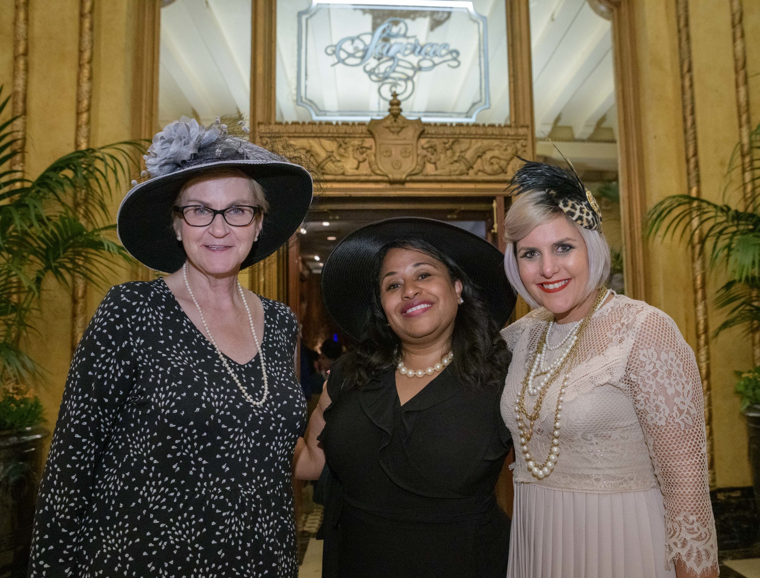 Women commemorate the 70th anniversary of the Stormin’ of the Sazerac bar at the Roosevelt Hotel in New Orleans, September 20, 2019. The Sazerac bar excluded women except on Mardi Gras until September 26, 1949 when women ‘stormed the bar.’ The event was celebrated first with a luncheon and fashion show at the Blue Room before the group of women second lined to the Sazerac bar with music by the Twisty River Band. WDSU anchor Charles Divins hosted and WDSU Chief Meteorologist Margaret Orr, who was the reigning Spirit of the Sazerac, announced this year’s Spirit as Meaghan Ryan Bonavita, the president of Dress for Success New Orleans that provides women in need with clothing for jobs. Photo by Matthew Hinton