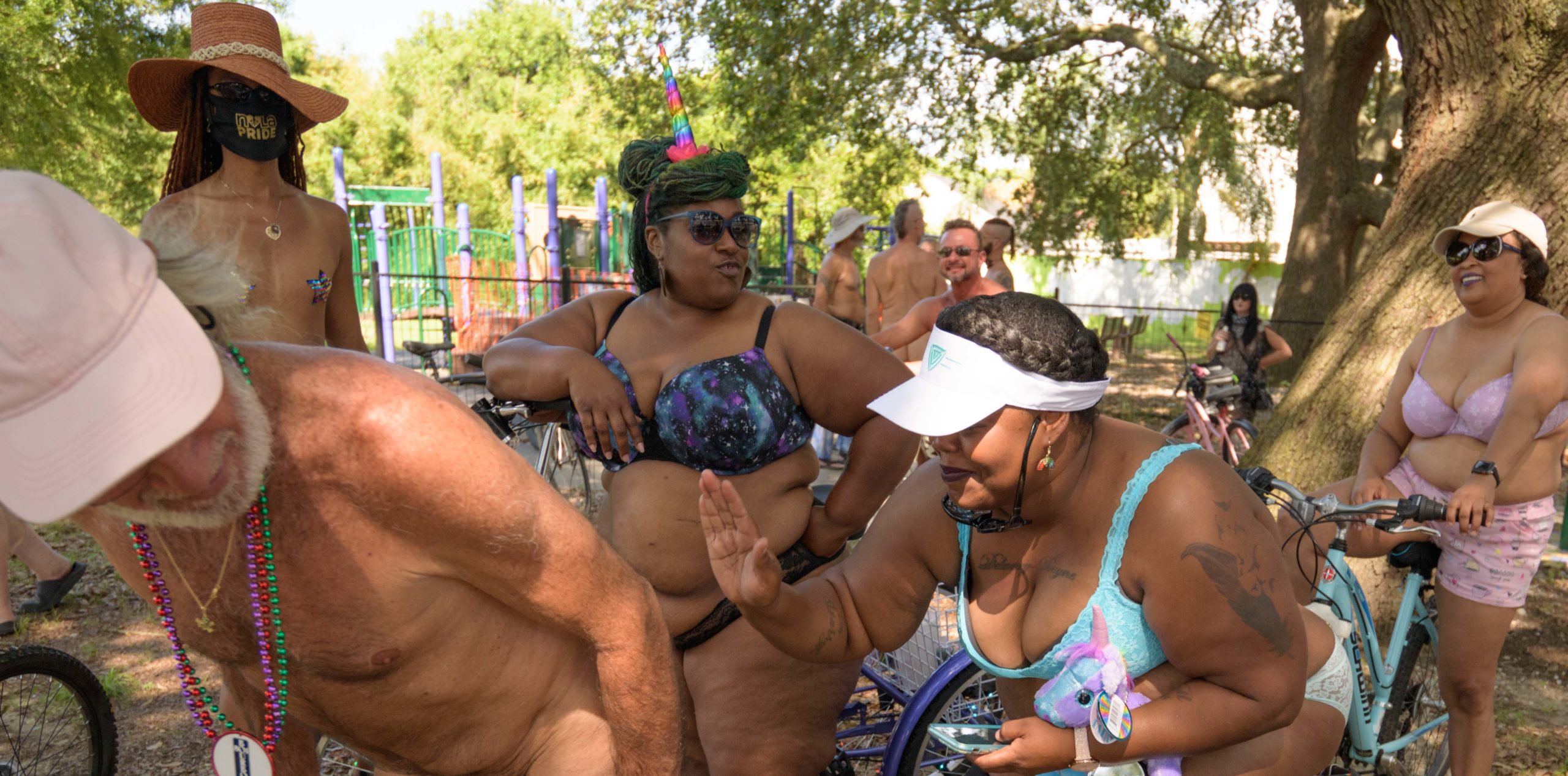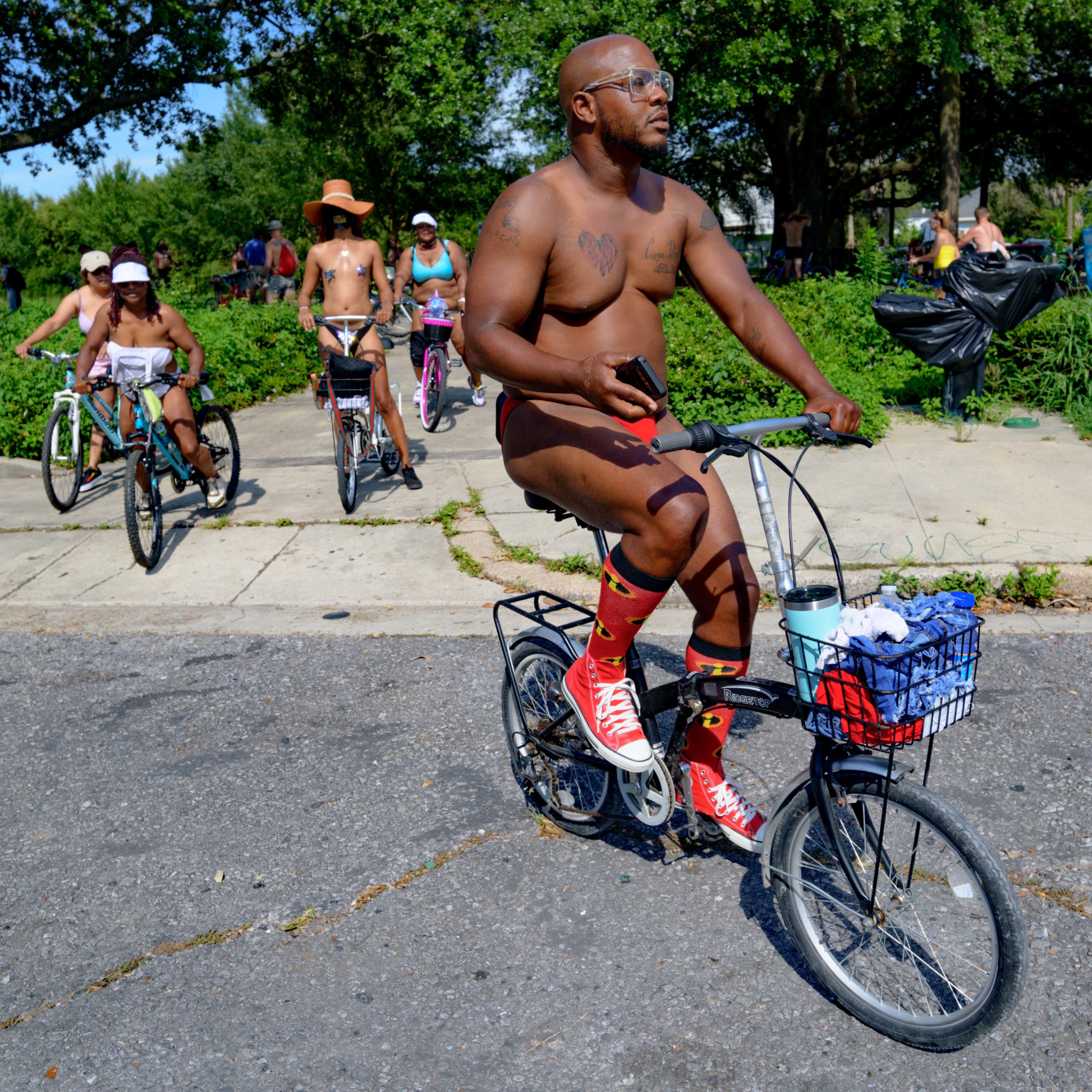 World Naked Bike Ride NOLA states on its website that the purpose of the ride is to promote a cleaner, safer, body-positive world to the masses in a free, non-sexual, fun bike ride. “Our mission is to take to the streets riding nude as the best way of defending our dignity as humans on bikes. We expose just how vulnerable we are as cyclists on our own city streets. We also ride to protest the world’s oil dependency, mainly cars, that negatively impacts the environment on this planet.”
