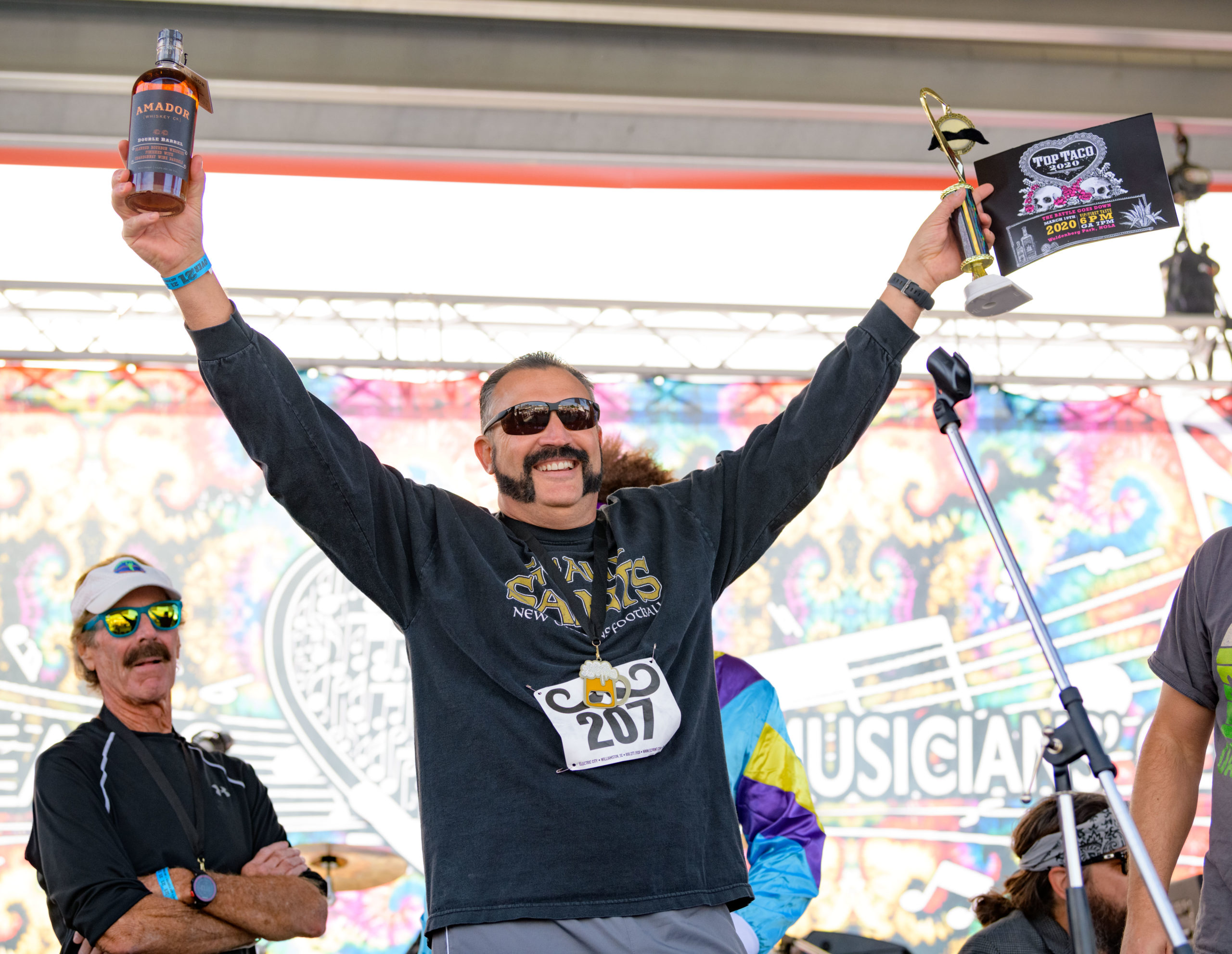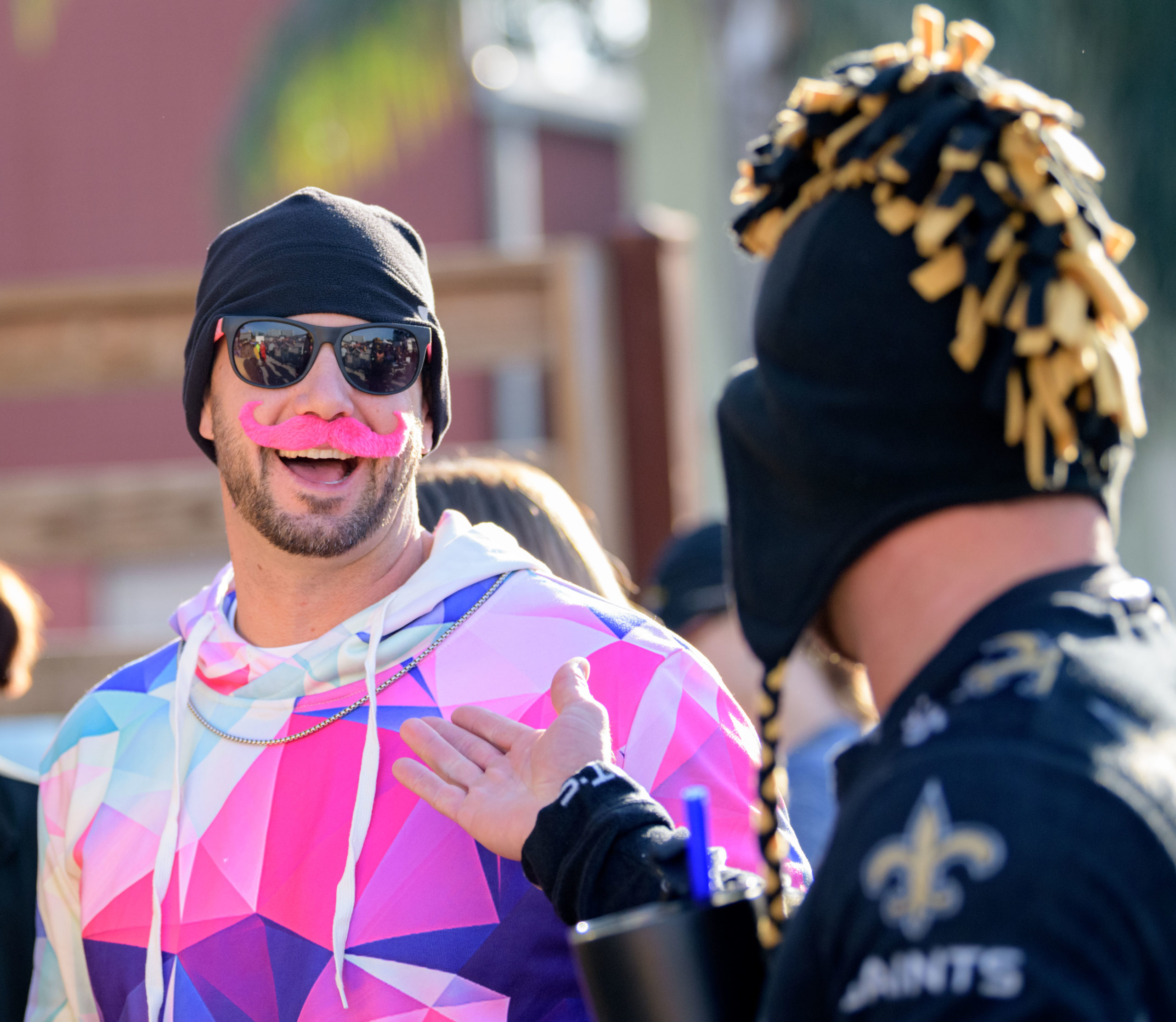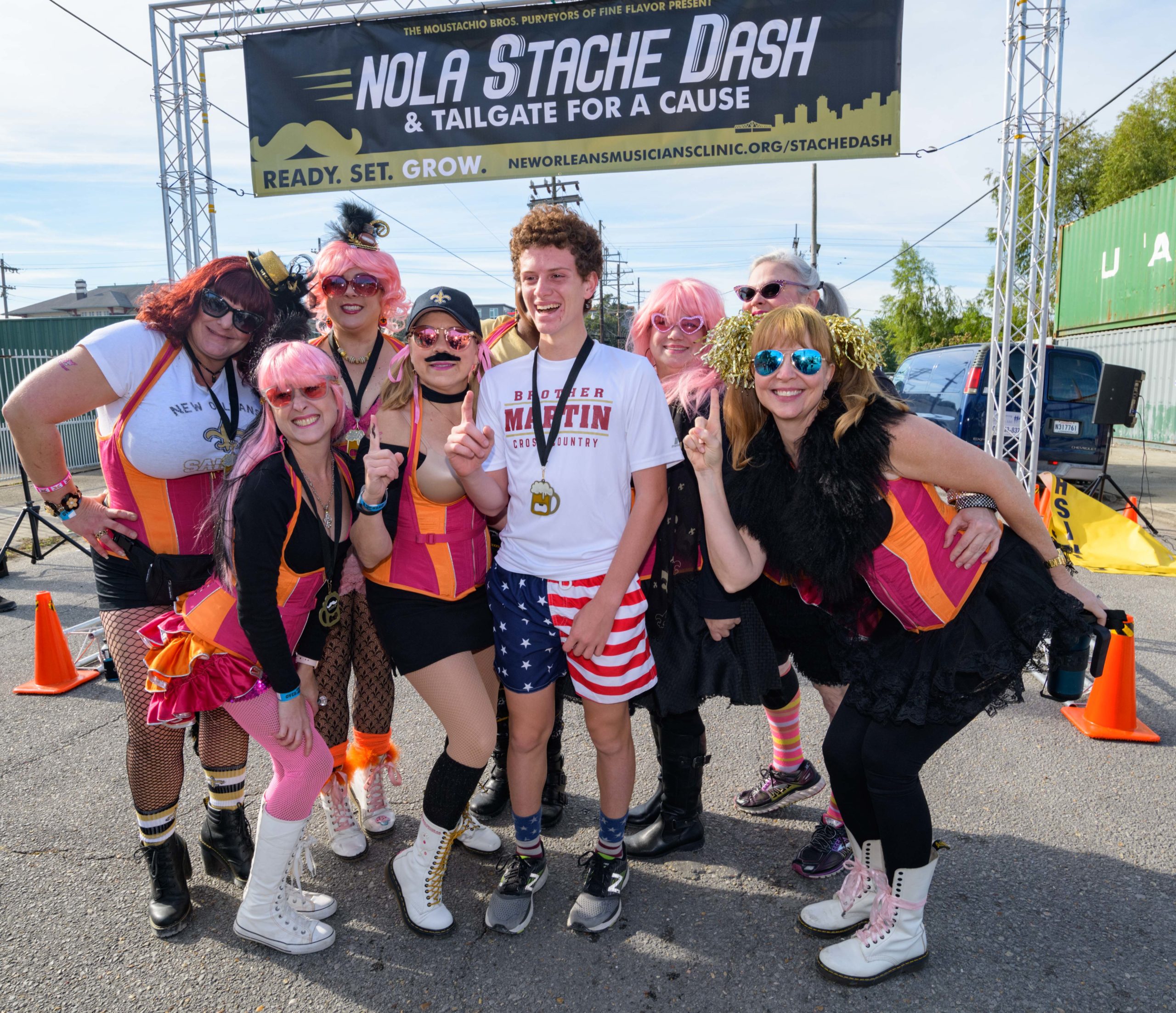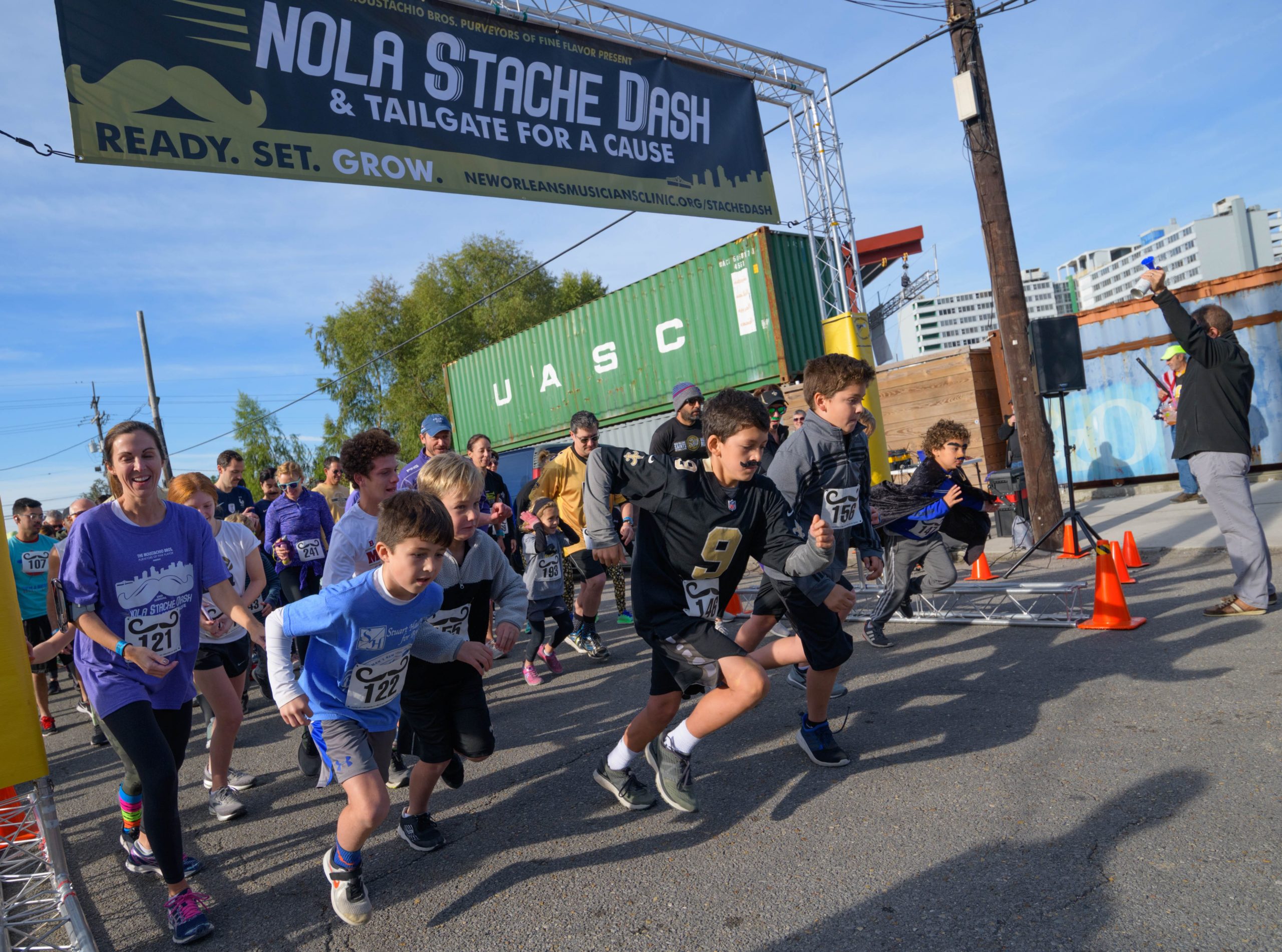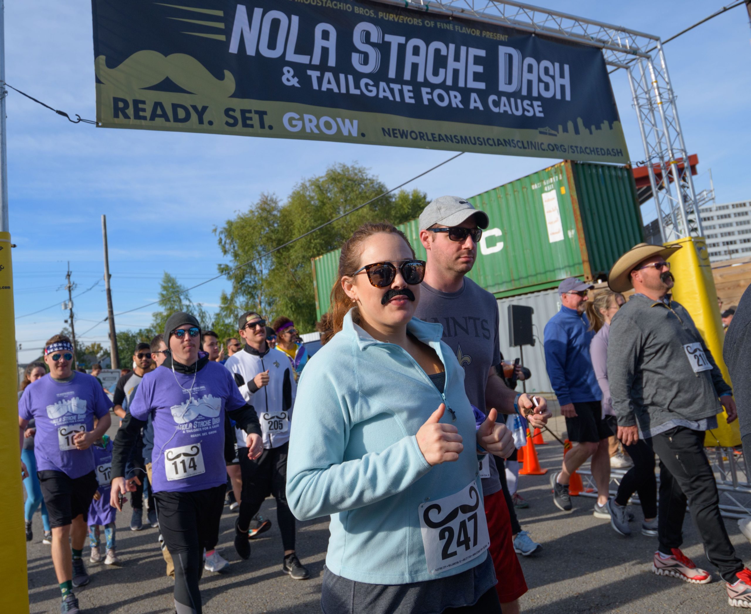 The second annual NOLA Stache Dash & Tailgate got underway at Central City BBQ in New Orleans Sunday November 17, 2019 where men and women and even children miraculously grew mustaches. The event included a 2-mile fun run and a best mustache competition followed by tailgating for the New Orleans Saints football game televised from Tampa Bay. The winner of the best moustache was Kevin Gardebled, with 5-year-old Alex Jackson coming in second. The Pussyfooters cheered on the finishers. Proceeds benefitted prostate cancer screenings for musicians through the New Orleans Musicians’ Clinic. Photos by Matthew Hinton