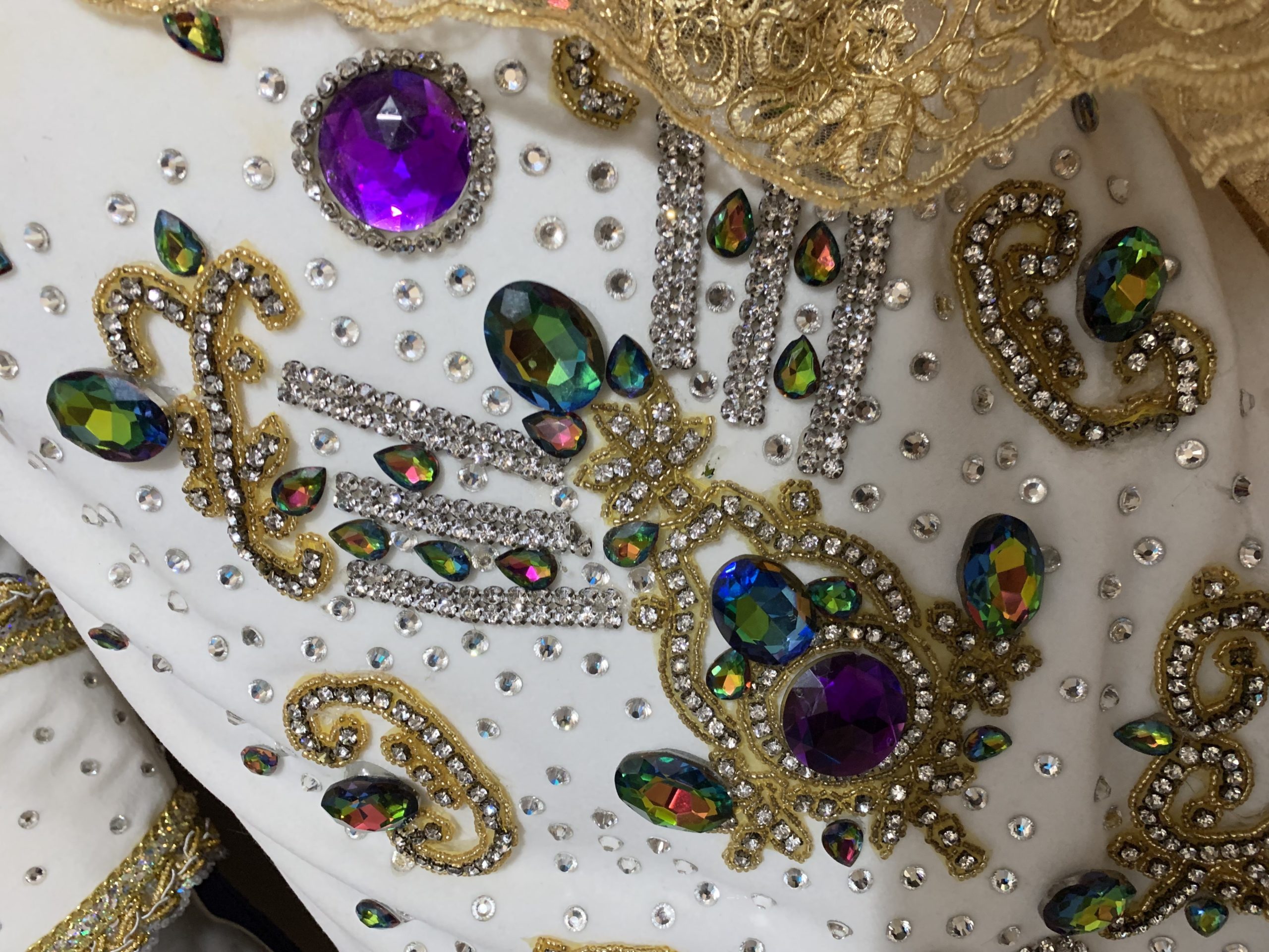 This year, Opulent Designs did almost 30 different pieces for area krewes, along with putting out some of the most gorgeous collars ever to hit the streets during second line season, and it all comes out of a Gentilly home.