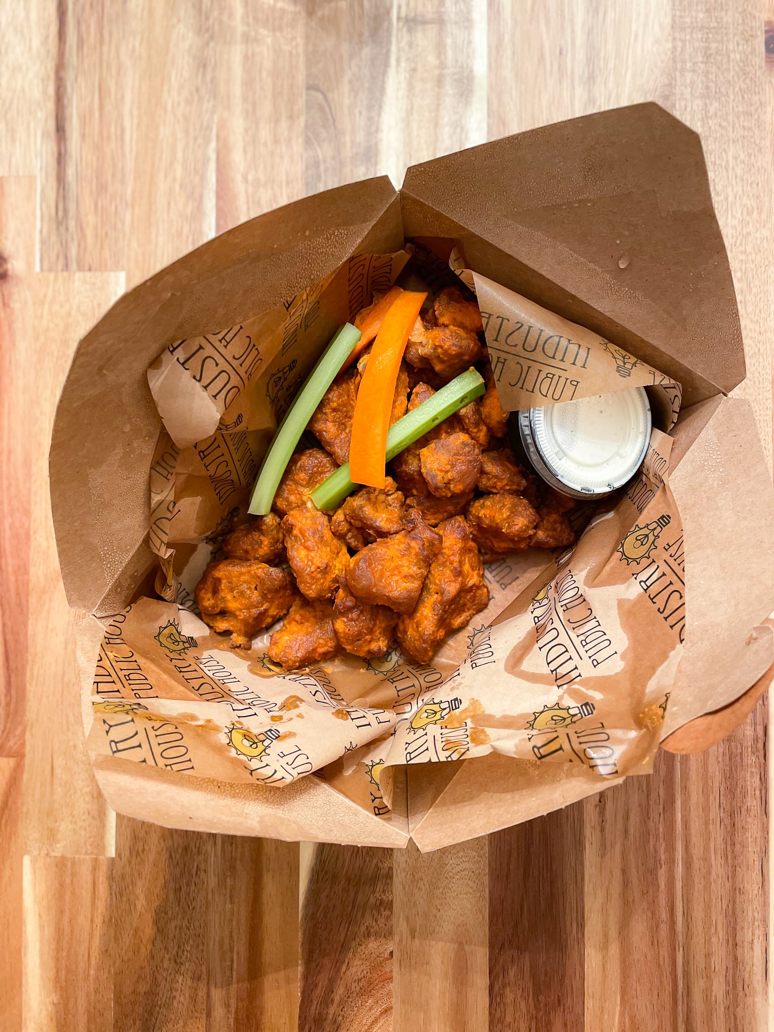 Industry Public House has two locations, one in Lawrenceville and another in North Fayette. I ordered from the latter, and I got their seitan wings with their mild buffalo sauce.