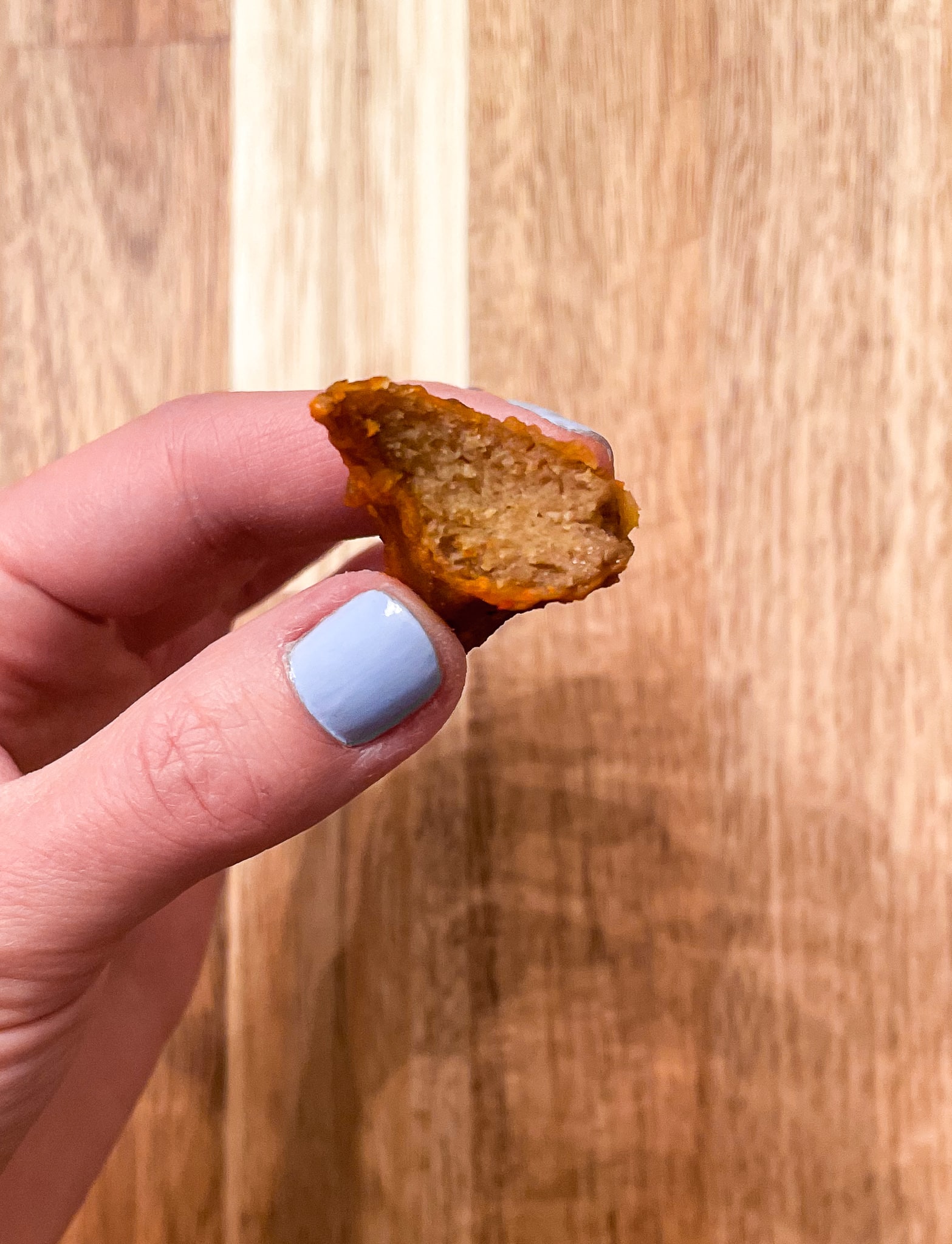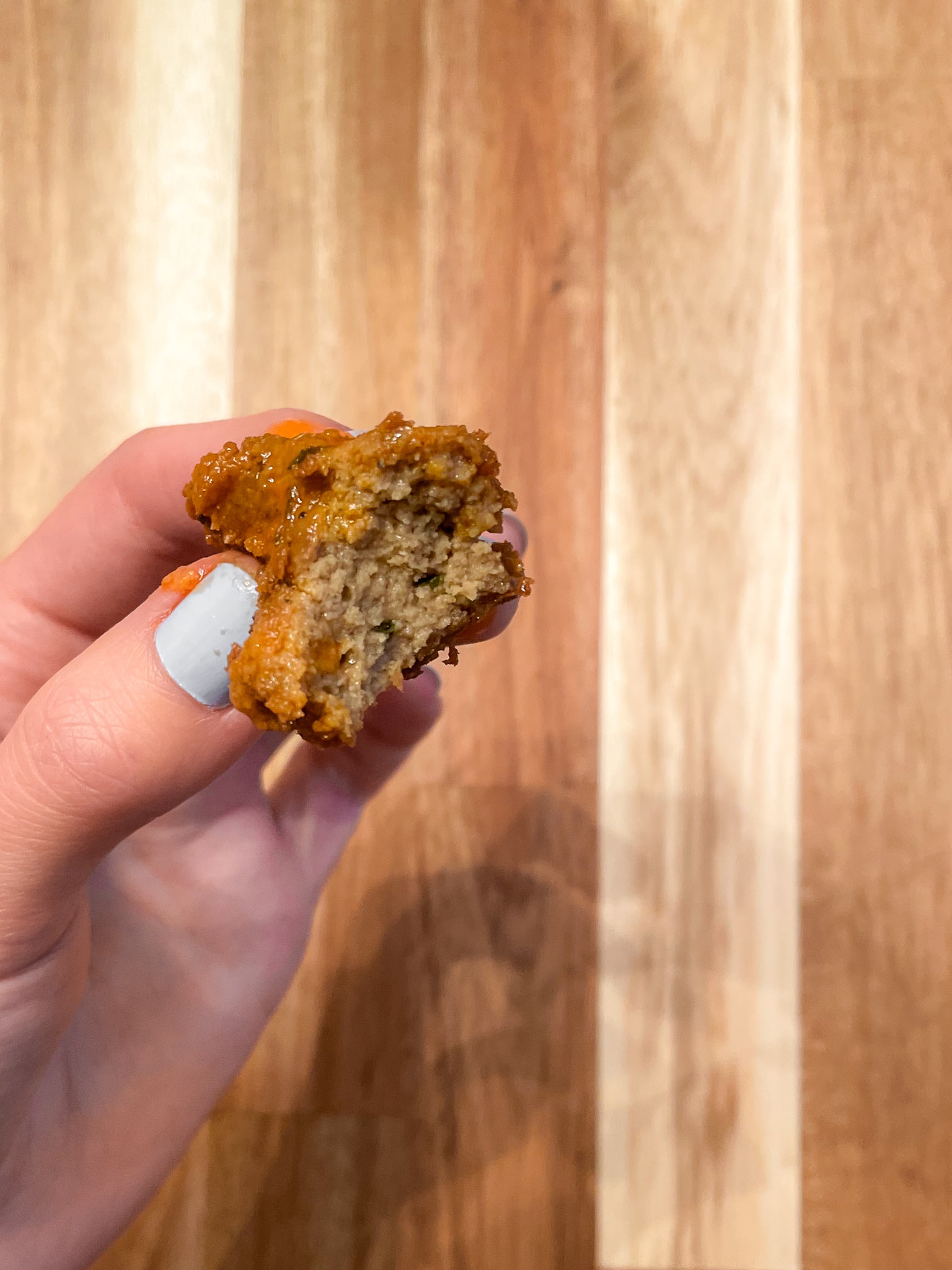 Right off the bat, they don’t have a traditional “wing” texture. Instead, the texture was very much like the seitan I make at home where I bake it in a log and slice it. The texture of these seitan wings wasn’t bad in any way, but it was much firmer than a traditional “wing.” I’d say these were the most “gourmet” though! - Overall Flavor –– 7